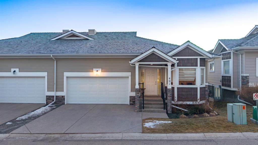 Welcome to 491 Rocky Vista Gardens NW, a well-kept bungalow villa townhouse located in the desirable community of Rocky Ridge. Built in 2016 and one of the newer units in the complex, this home offers comfortable, low-maintenance living with thoughtful upgrades and outstanding mountain views. The main floor features an open layout with vaulted ceilings over the kitchen and family room, creating a bright and spacious feel. The kitchen includes designer cabinetry, stone countertops, and stainless steel appliances, and opens nicely to the dining and living areas—ideal for everyday living and casual entertaining. Hardwood flooring runs through most of the main level, along with built-in cabinetry that adds both storage and character. At the front of the home is a flexible room that works well as a home office, TV room, study, or formal dining space. The primary bedroom is a comfortable retreat with mountain views, a 4 piece ensuite, and his-and-hers closets.
