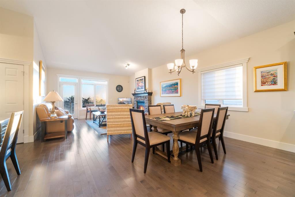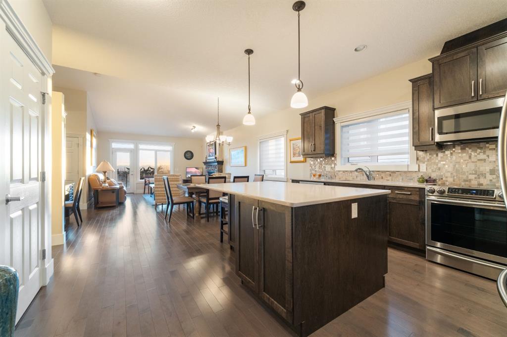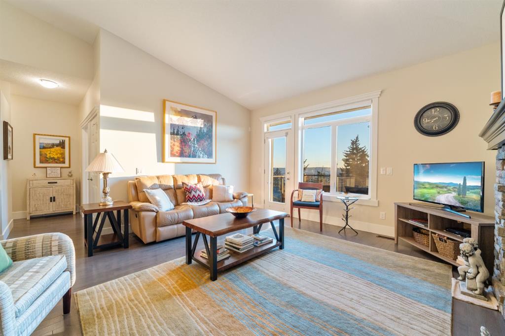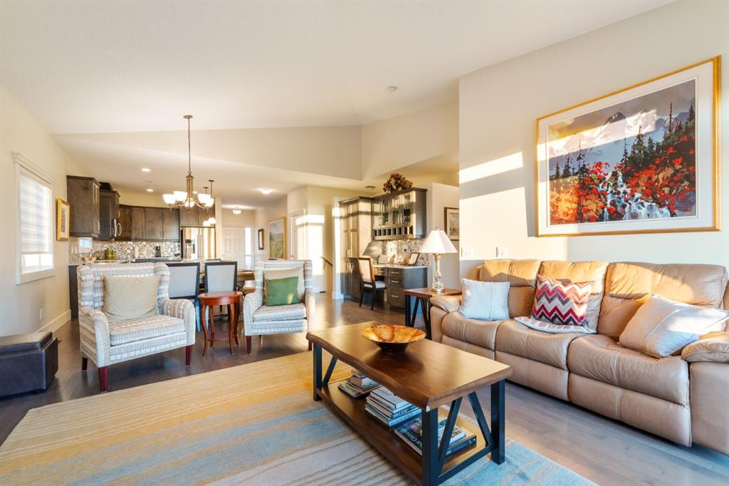 Welcome to 491 Rocky Vista Gardens NW, a well-kept bungalow villa townhouse located in the desirable community of Rocky Ridge. Built in 2016 and one of the newer units in the complex, this home offers comfortable, low-maintenance living with thoughtful upgrades and outstanding mountain views. The main floor features an open layout with vaulted ceilings over the kitchen and family room, creating a bright and spacious feel. The kitchen includes designer cabinetry, stone countertops, and stainless steel appliances, and opens nicely to the dining and living areas—ideal for everyday living and casual entertaining. Hardwood flooring runs through most of the main level, along with built-in cabinetry that adds both storage and character. At the front of the home is a flexible room that works well as a home office, TV room, study, or formal dining space. The primary bedroom is a comfortable retreat with mountain views, a 4 piece ensuite, and his-and-hers closets.