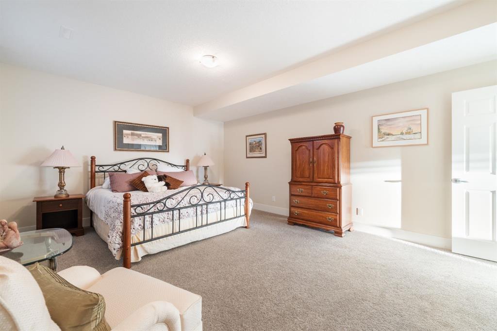 The fully finished walkout basement offers 9-foot ceilings, in-floor heating, a large family room, two additional bedrooms, and a full bathroom—great for guests, hobbies, or extra living space. Additional features include central air conditioning, a double attached garage, solid hardwood floors, and modern finishes throughout. The complex is well managed, has low turnover, and is known for its quiet setting and mature demographic. The HOA provides access to the Rocky Ridge community association and clubhouse amenities, including tennis courts, playgrounds, a water feature, and shared facilities. Conveniently located with easy access to Stoney Trail and Crowchild Trail, and close to shopping, transit, parks, and pathways. A solid opportunity to own a quality bungalow villa in a well-run complex with excellent views.