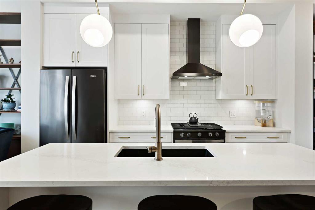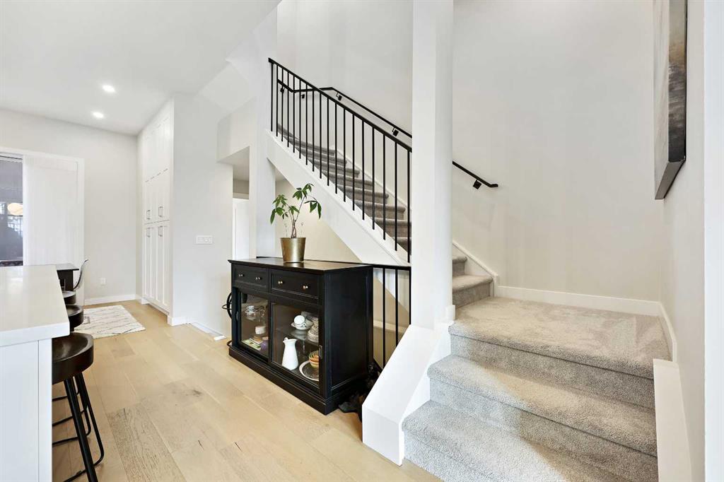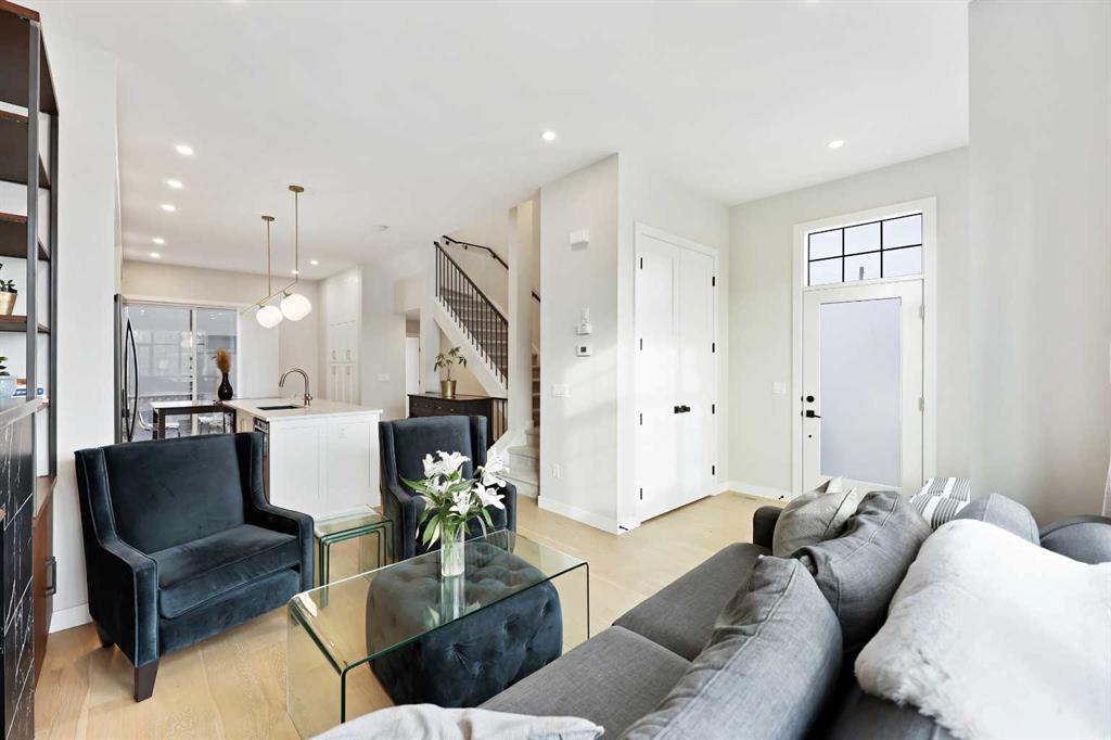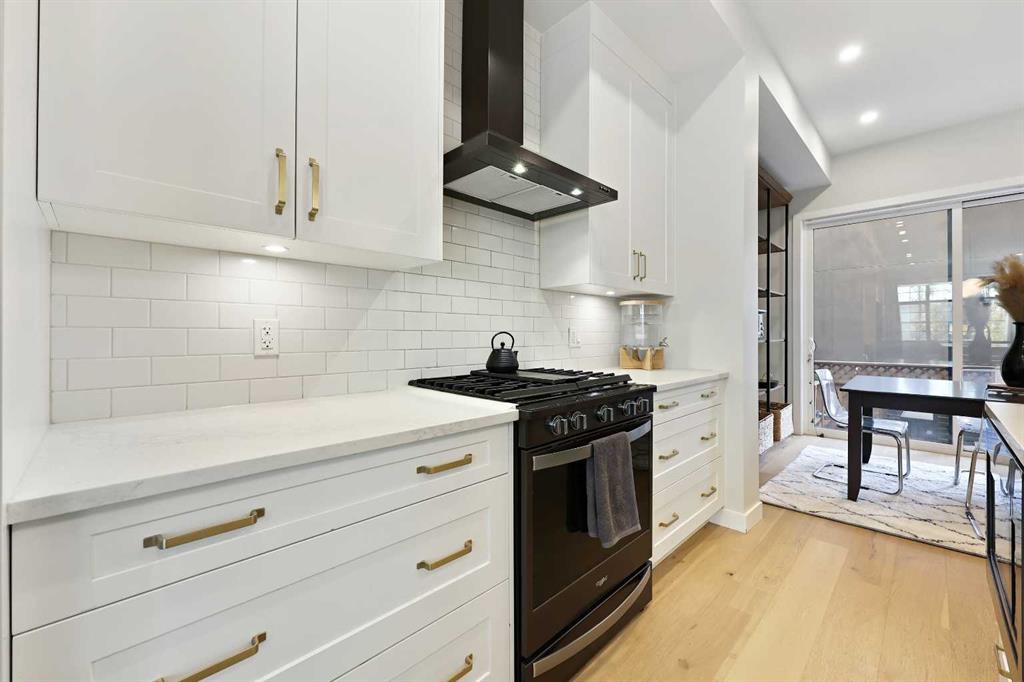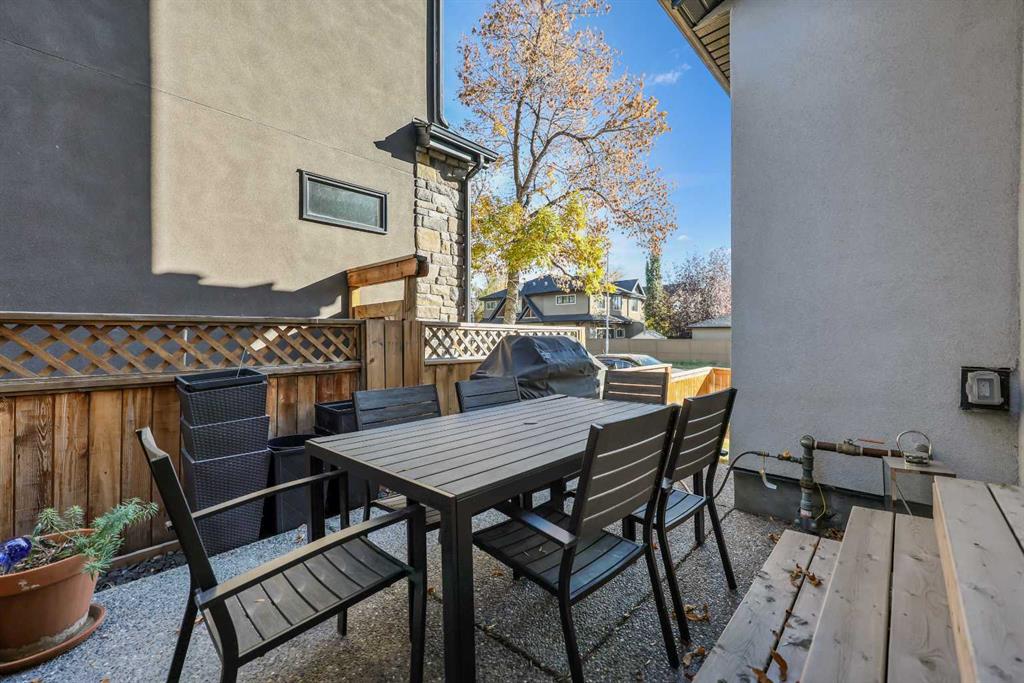 In Altadore, it’s rare to find the perfect blend of an inner city lifestyle and true outdoor living, a private backyard and a garage, but this home checks all of the boxes! Set in a location that truly maximizes lifestyle, you are just minutes from the boutiques, dining, coffee shops, and gyms of Marda Loop. Outdoor enthusiasts will love having Sandy Beach and endless pathways nearby! This community has top rated schools, convenient transit options and access to major roads, making commutes a breeze. This corner unit townhome delivers elevated style, thoughtful upgrades, and urban convenience all wrapped in charming brick architecture. Inside, 10 ft. ceilings and oversized windows create a bright, sophisticated atmosphere. Hardwood floors flow through the open main level, where a welcoming living room centers around a sleek gas fireplace. The dining space is designed for entertaining, while the chef’s kitchen stands out with quartz counters, premium appliances including a gas range, a sleek backsplash, and a rare upgrade, an additional full pantry! This level is complete with a 2 piece powder room, just off the kitchen. Upstairs, the primary retreat includes a generous walk-in closet with upgraded shelving and a serene ensuite featuring dual sinks and heated floors, an everyday luxury. A second spacious bedroom and convenient laundry complete this level, with remote controlled ceiling fans in the bedrooms adding extra comfort year round. The top floor flexes to suit your lifestyle! A family room, home gym, office, or additional bedroom, enhanced with motorized electronic blinds and a bar rough-in. From this floor, you have direct access to your private rooftop patio showcasing sweeping city and mountain views. A must see for the best sunsets! The fully developed lower level extends your living space with a recreation area, office niche, another full bedroom, and a 4-piece bathroom. This home also includes; custom closet organizers, Hunter Douglas premium blinds, rough ins for air conditioning and Vacuflo that all add to the everyday function and finish. Step outside to one of Altadore’s most desirable features, a private, fully fenced backyard, perfect for pets, play, or summer nights, complete with a gas line for your barbecue. A single detached garage offers secure parking and storage. This is the best of Altadore! Urban energy, walkability, modern living, without sacrificing space, privacy, or comfort. Welcome home.