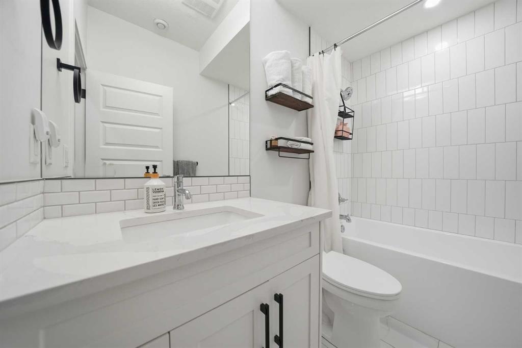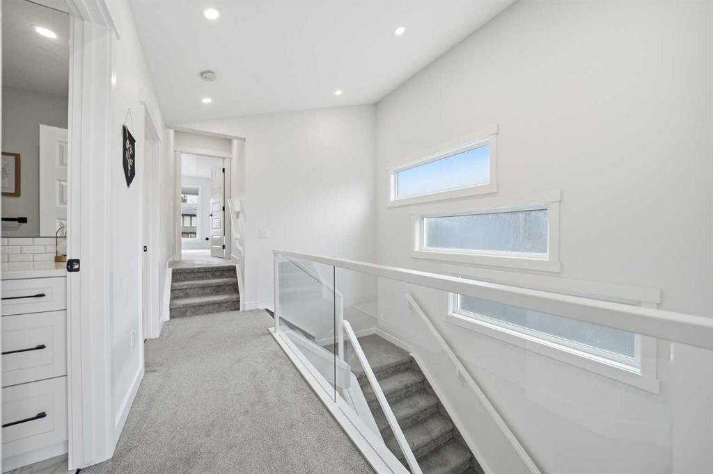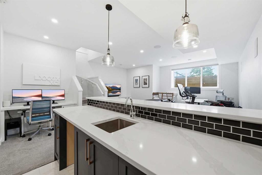 Refined luxury meets turn-key convenience in one of Calgary’s oldest inner-city communities. Built in 2021 and enhanced with approximately $50,000 in thoughtful upgrades, this home removes the typical new-build to-do list – delivering premium up/down window coverings, a wooden deck with privacy walls, landscaping with garden boxes, central A/C, built-in ceiling speakers on all 3 floors, and upgraded kitchen and laundry appliances – saving you time and significant expense. The heart of the home features a stunning 16′ quartz-topped kitchen island, an upgraded appliance package, abundant cabinetry, and a stylish bar with wine fridge – ideal for everyday living and effortless entertaining. The living room centers around a sleek gas fireplace with custom built-ins, 12′ ceilings, and large sliding doors that flood the space with natural light. Everyday function is equally considered with a mudroom separated by a barn door to keep life organized and clutter-free. Upstairs, two generous secondary bedrooms share a 4-piece bath, while a spacious laundry room with sink adds welcome convenience. The primary suite is a true retreat – elevated by a few steps to define the space – featuring a walk-in closet with custom storage and a spa-inspired ensuite with a freestanding soaker tub, heated floors, dual vanity, separate water closet, and a triple-head shower system in a stunning oversized glass shower with bench. The fully finished basement extends your living space with 9′ ceilings, oversized south-facing windows, a versatile entertainment area with a wet bar, a guest bedroom with walk-in closet, and a full 4-piece bath – bringing the home to nearly 3,000 sq. ft. of refined living for you and your family to enjoy. Situated just blocks from the Bow River, Shouldice Park, Bowmont Park, Montalban Park (off-leash), Montgomery’s main street, a newly renovated Safeway, and Market Mall, you’re only 15 minutes from downtown with quick access to the mountains. From top to bottom, pride of ownership is evident, delivering an inner-city home with the upgrades you want and nothing left to do but move in and enjoy.