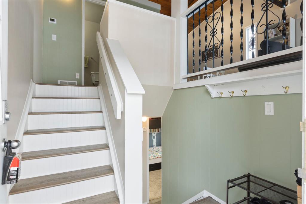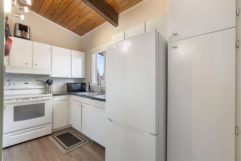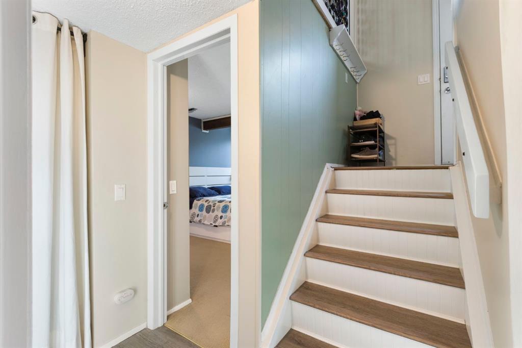 The bright white kitchen is both functional and clean in design, while the renovated four-piece bathroom provides a stylish and contemporary feel. Downstairs, two generously sized bedrooms offer privacy and separation from the main living area, making the layout ideal for roommates, small families, or investors.