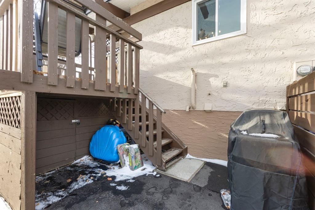 Additional storage is thoughtfully integrated throughout the home, including space in the laundry room, under the stairs, and a large storage area beneath the back deck. As a corner unit, the property benefits from added privacy, a dedicated parking stall, and ample additional visitor parking directly out front.