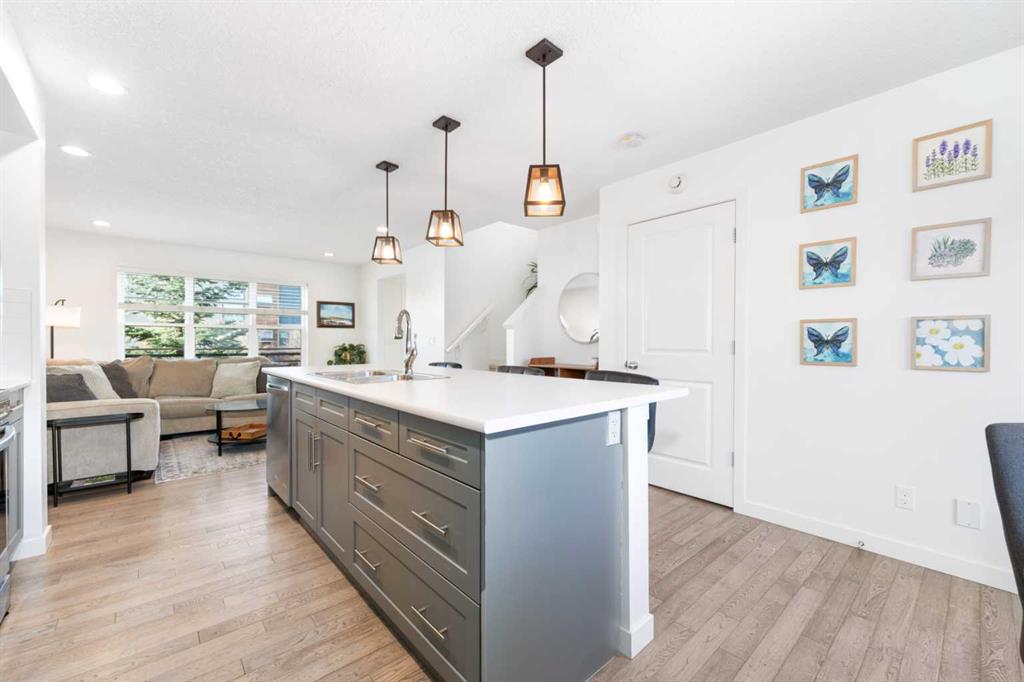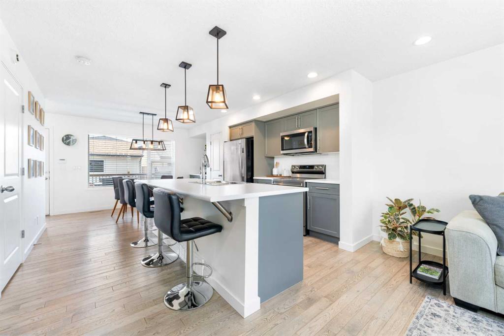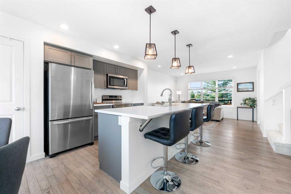 Welcome to this inviting 2-storey semi-detached home in the vibrant community of Walden, offering a perfect balance of comfort, functionality, and style. With 3 bedrooms, 2.5 baths, a full basement (awaiting your development), and a double detached garage, this home is ideal for those seeking modern living in a friendly, well-connected neighborhood. Step inside to a bright and open main floor designed for effortless flow between the living, kitchen, and dining areas. The central kitchen is the heart of the home, featuring a large island, stainless steel appliances, a corner pantry, and an extra set of cabinets that works perfectly as a buffet or butler’s pantry area —ideal for entertaining or extra storage. The spacious dining area offers direct access to the mudroom, a convenient 2-pc bath, and the large deck that extends your living space outdoors. The main level features hardwood and tile flooring, combining style with durability.