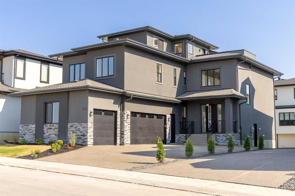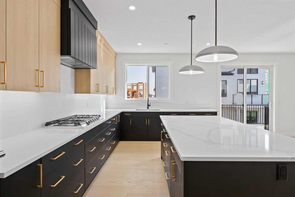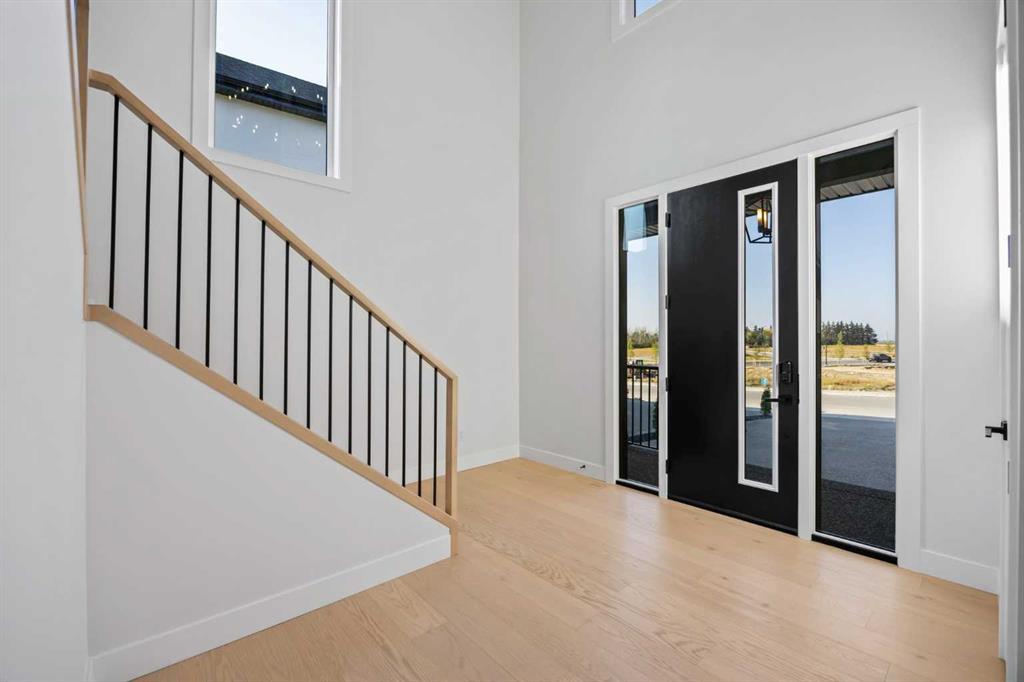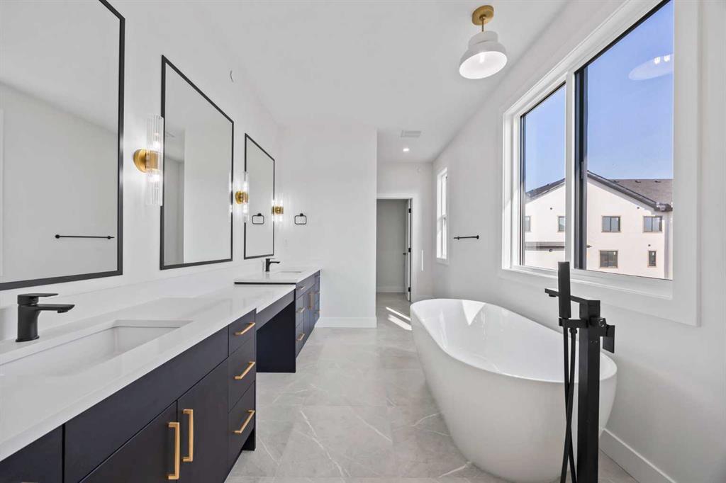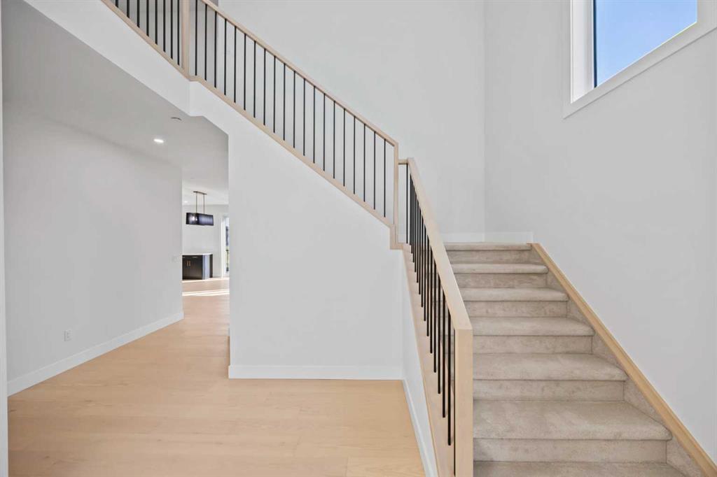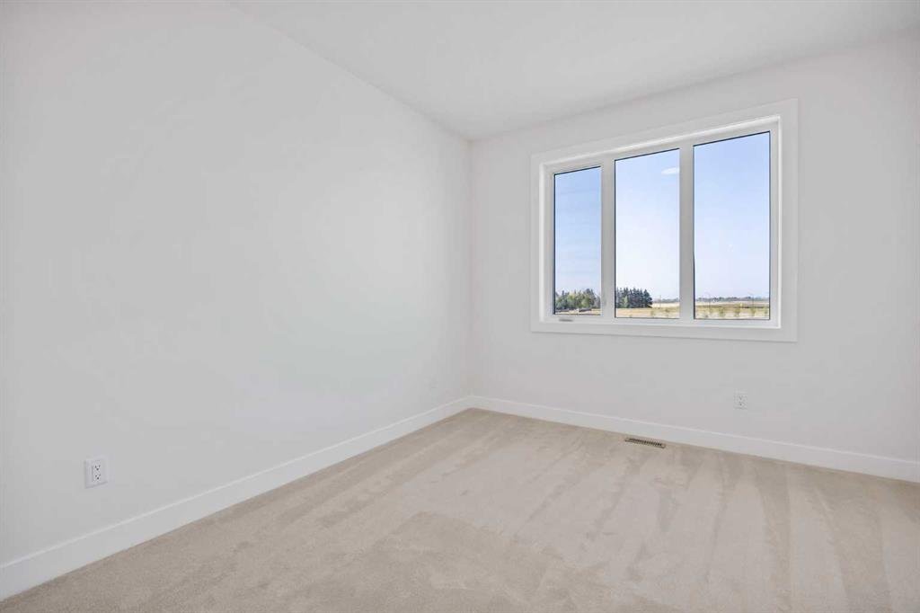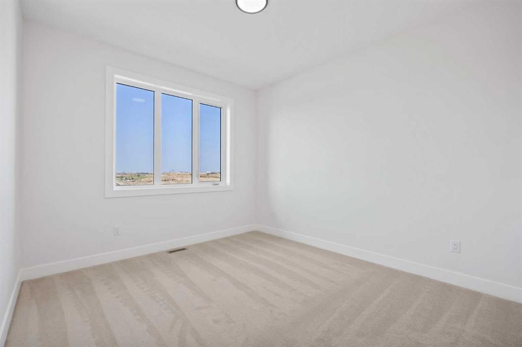 Welcome to the brand new development of Knightsbridge in Cambridge Park. Minutes away from access to Stoney Trail and East Hills shopping centre. The Whitehaven is a stunning estate home designed to blend luxury and practicality. Set on a generous 6027 sq ft lot, this home provides an expansive backyard and a side-drive triple car garage. These are not your typical cookie cutter homes. With 3,203 sq ft of living space, this custom-built masterpiece features 5 spacious bedrooms and 4 beautifully designed bathrooms, offering ample room for family and guests. This home is loaded with upgrades including: Main floor full bath, Jack and Jill ensuites for added convenience, High ceilings & a Spice kitchen to enhance your culinary experiences. Inside, the main floor exudes elegance with rich hardwood flooring and 9 ft ceilings with 8 ft doors, and striking black-framed windows that invite natural light. The gourmet kitchen is a chef’s dream, complete with an oversized island, a secondary spice kitchen, sleek stainless steel appliances. An open concept formal dining and living area set the stage for gatherings. The main floor also includes a flex room as well as a 4 pc bathroom. The primary suite on the upper floors is a true sanctuary with a freestanding tub and a custom-built closet. The home’s thoughtful design continues with 3 more generous sized bedrooms on the second floor, a bonus room for entertaining, a Jack & Jill ensuite bathroom for convenience, as well as a second floor laundry room. . Step outside to enjoy a completed rear deck with steps leading to a private outdoor oasis. This home also offers a triple attached garage allowing plenty of space for extra parking. This community is within minutes to Calgary, Chestermere, and East Hills, 18 minutes to Downtown Calgary, and provides quick access to Stoney Trail, Highway 1, and McKnight Blvd making it easy to get anywhere in and around the city. Located near shopping centres, Costco, public and private schools, Khalsa school’s, parks, and many other amenities, while still offering quiet country-living with wide open green spaces, walking paths, and playgrounds.