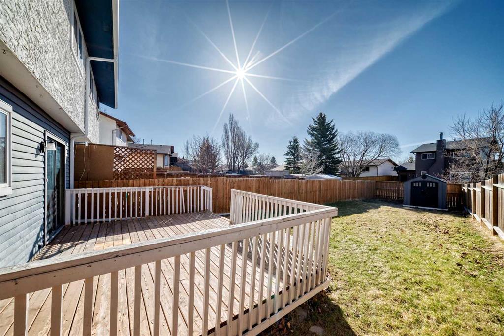 Enjoy the sunny south-facing backyard with a deck and storage shed—ideal for outdoor relaxation and entertaining. The parking pad provides convenient off-street parking.