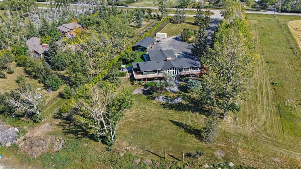 WITH OVER $450,000 IN PROFESSIONALLY COMPLETED UPDATES IN THE LAST THREE YEARS, We are proud to present this outstanding home and quality product throughout that is now really a turn key property. Located in Georgian Estates, just over 2 acres and offering so much privacy and incredible views, NE of Calgary off of Country Hills Blvd and under 4 km to Stoney Trail. This is a west backing walkout bungalow with a newly created 3 Bedroom basement suite (illegal), or use for extended family. It has a triple attached garage and also has a newly renovated separate shop/garage. This can be developed into a separate suite by connecting roughed in plumbing and adding a sewer line to the septic system, or continue using as a gym and formal office, great for meeting clients, and a heated single garage with work bench. The bungalow main level has 3 bedrooms, 2 1/2 bathrooms, central living room with high beam vaulted ceiling that provides an incredible west facing view. The primary bedroom also has a separate sliding door to the deck. This leads into the dining room and then the updated kitchen with a modern flair and newer appliances, plus a sink with a great view! There is a casual family room off of the kitchen that could also be a casual eating area. Also a large laundry room, and several exits. The separate lower level also has 3 bedrooms, bathroom, large kitchen and dining area, and also a large central living room with walkout access to the backyard. A newer stacker laundry unit is in the mechanical room, easy access. There is a large gazebo out back, and a huge yard area, nicely maintained. A long list of upgraded product includes: 2023: new 2,000 gallon septic tank, carpet. And in 2024: Triple Pane Windows; Asphalt Shingles, Full Width Deck installed from the footings up; Shop reno’d with a new furnace, an office and open area plus a single bay garage; Concrete Walkway and Front Entry; New Blinds; New Insulated Garage Doors; Exterior Lights; Tile; Kitchen Downstairs; Appliances with 2 fridges, oven, 2 washer/dryers, 2 dishwashers, landscaping, carpet, interior and exterior painting, and driveway maintenance. In 2025: 2 new hot water tanks; reinforced eaves troughs and new downspouts. Lot’s of storage in the basement and also a separate storage area in the attached garage. Two furnaces, one for each level. Parking? Definitely not a shortage here. A long paved driveway with a wide area for parking a lot of shiny vehicles. There is also a side RV parking area with a 220V plug in. The pictures are great but this really is a must see home. Come take a look!