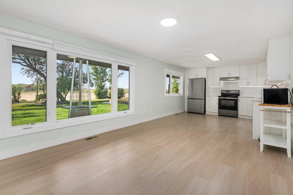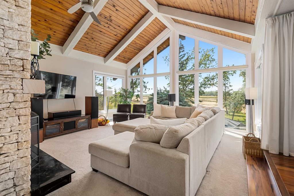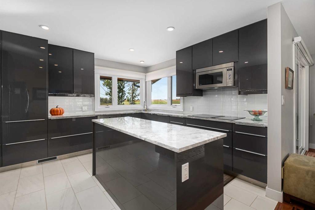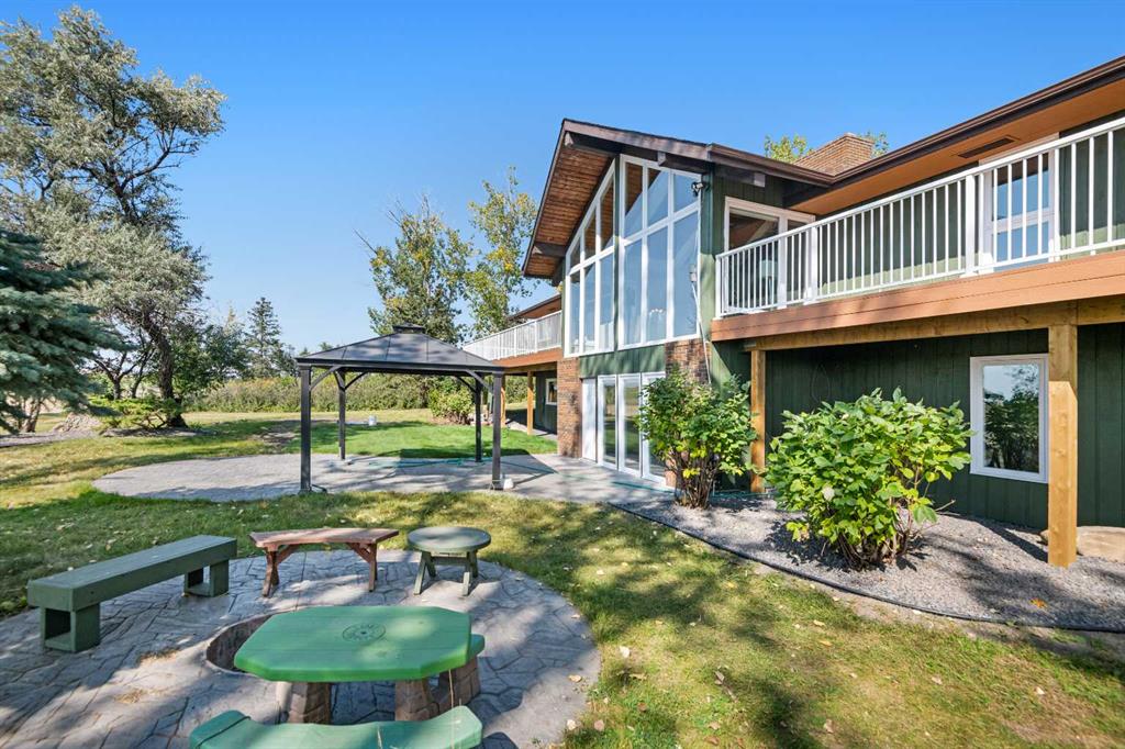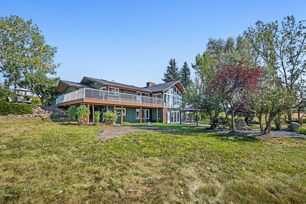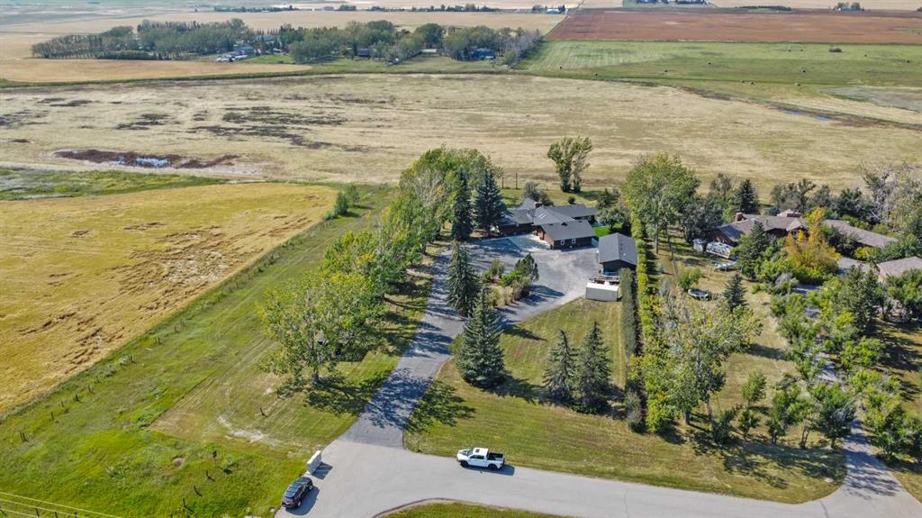 This is an exceptional home that we are proud to present that has outstanding quality product throughout which you can just relax and enjoy for many years to come! Located in Exclusive Georgian Estates on just over 2 acres and offers you so much privacy and incredible views, NE of Calgary off of Country Hills Blvd and under 4 km to Stoney Trail. This is a west backing walkout bungalow with a newly created 3 Bedroom basement suite with separate entry (illegal), or use for present or extended family. It has a triple attached garage, and also has a newly renovated separate shop/garage that has a new office and gym space, and could also be developed into a separate suite by connecting roughed in plumbing and adding a sewer line to the septic system, with a heated single garage and work bench. The bungalow main level has 3 bedrooms, 2 1/2 bathrooms, central living room with high beam vaulted ceiling that provides an incredible west facing view. The primary bedroom also has a separate sliding door to the deck. This leads into the dining room and then the updated kitchen with a modern flair and newer appliances, plus a sink with a great view! There is a casual family room off of the kitchen that could also be a casual eating area. Also a large laundry room, and several exits. The lower walkout level also has 3 bedrooms, bathroom, large kitchen and dining area, and also a large central living room with walkout access to the backyard. A newer stacker laundry unit is in the mechanical room, easy access. There is a large gazebo out back, and a huge yard area, nicely maintained. A long list of upgraded product includes: 2023: new 2,000 gallon septic tank, carpet. And in 2024: Triple Pane Windows; Asphalt Shingles, Full Width Deck installed from the footings up; Shop reno’d with a new furnace, an office and open area plus a single bay garage; Concrete Walkway and Front Entry; New Blinds; New Insulated Garage Doors; Exterior Lights; Tile; New Kitchen Downstairs; Appliances with 2 fridges, oven, 2 washer/dryers, 2 dishwashers, landscaping, carpet, interior and exterior painting, and driveway maintenance. In 2025: 2 new hot water tanks; reinforced eaves troughs and new downspouts. Lot’s of storage in the basement and also a separate storage area in the attached garage. Two furnaces, one for each level. Parking? Definitely not a shortage here. A long paved driveway with a wide area for parking a lot of shiny vehicles. There is also a side RV parking area with a 220V plug in. The pictures are great but this really is a must see home. Come take a look!