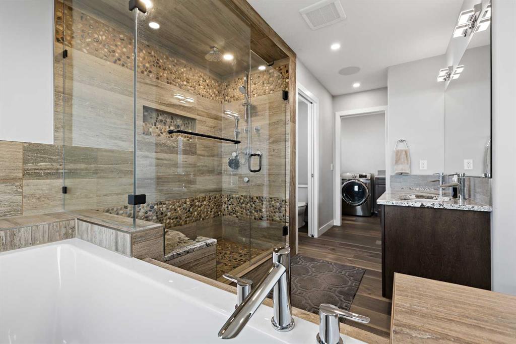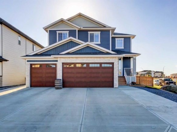 Welcome to 5 Hanson Lane – The Home That Truly Has It All! If you’re searching for a home that offers style, quality, and comfort, this custom-built property is the perfect fit. Designed and constructed by the homeowner with top-of-the-line finishes and upgraded electrical, this stunning home is move-in ready and waiting for your personal touch. Situated on a massive corner lot with no neighbors in front, you can enjoy peaceful mornings on your front porch as the sun rises. The oversized heated triple-car garage is ready for your projects — complete with in-floor heating (boiler required), welder wiring, and extra rebar in the slab for added stability. The west-facing backyard is a blank canvas, ready for your dream outdoor space. The steel-framed back deck is maintenance-free and ready for composite decking in the color of your choice. With RV parking in the front and a low-maintenance yard, this home offers both convenience and functionality. Inside, you’ll love the open-concept main floor featuring a gorgeous stone fireplace in the living room. The kitchen is a baker’s delight, complete with double wall ovens and warming drawer, gas range, wine fridge, all top-of-the-line KitchenAid stainless steel appliances. Under-cabinet lighting and updated fixtures enhance the sleek, modern design. Upstairs, you’ll find a bonus room, two spacious bedrooms, a laundry room with wash sink, and the luxurious primary suite. The primary retreat features a spa-inspired ensuite with double vanity, large walk-in shower, soaker tub, and private toilet area, as well as a massive walk-in closet and private west-facing balcony — perfect for watching sunsets or summer rain showers. The unfinished basement offers 9’ ceilings, large windows, and rough-ins for a wet bar — a true blank slate ready for your vision. It also includes in-floor heating (boiler required), reinforced concrete, and extra rebar for superior durability. Additional features include: Luxury vinyl plank flooring throughout, Photocell ambient stair lighting, Built-in speaker system (zone-controlled via app) in house, deck, and garage, 2024 hot water tank, Home security system. Don’t miss your chance to own this incredible property in the heart of Langdon. Book your private showing today with your favorite Realtor or join us this weekend for the open house!