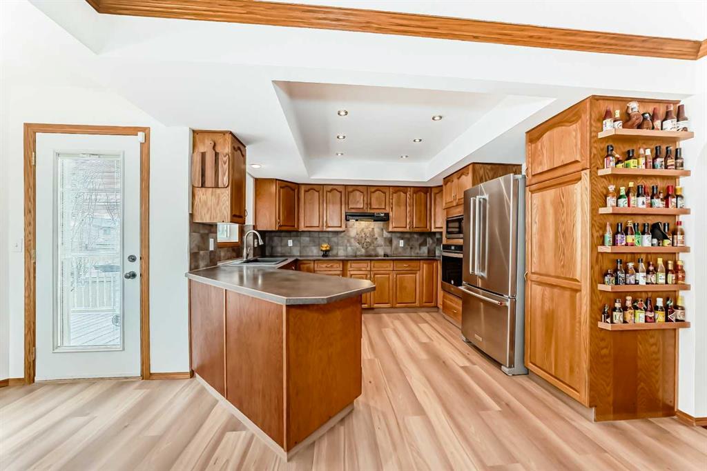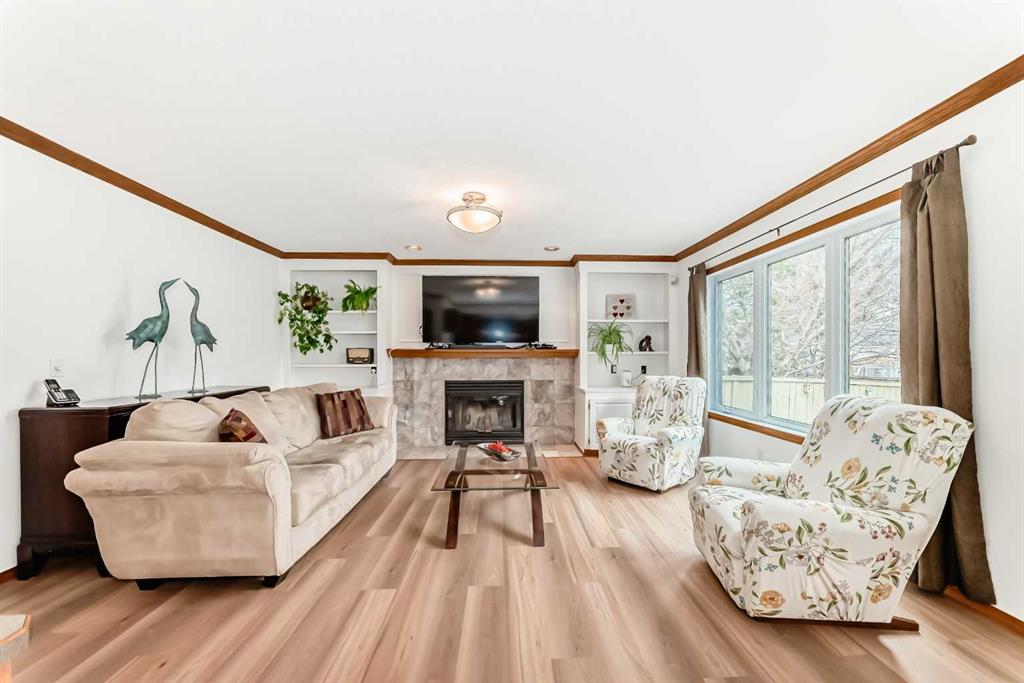 The main floor also features a warm and comfortable family room, perfect for relaxing evenings, complete with a beautiful gas fireplace, along with a built-in desk for work or study, a convenient 2-piece powder room, and a spacious laundry area.