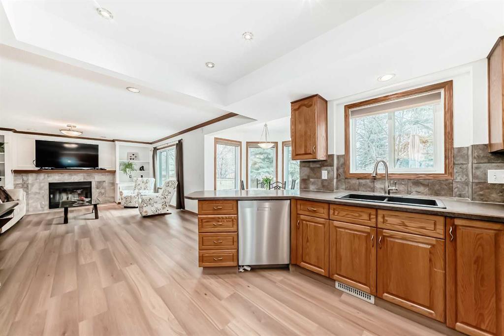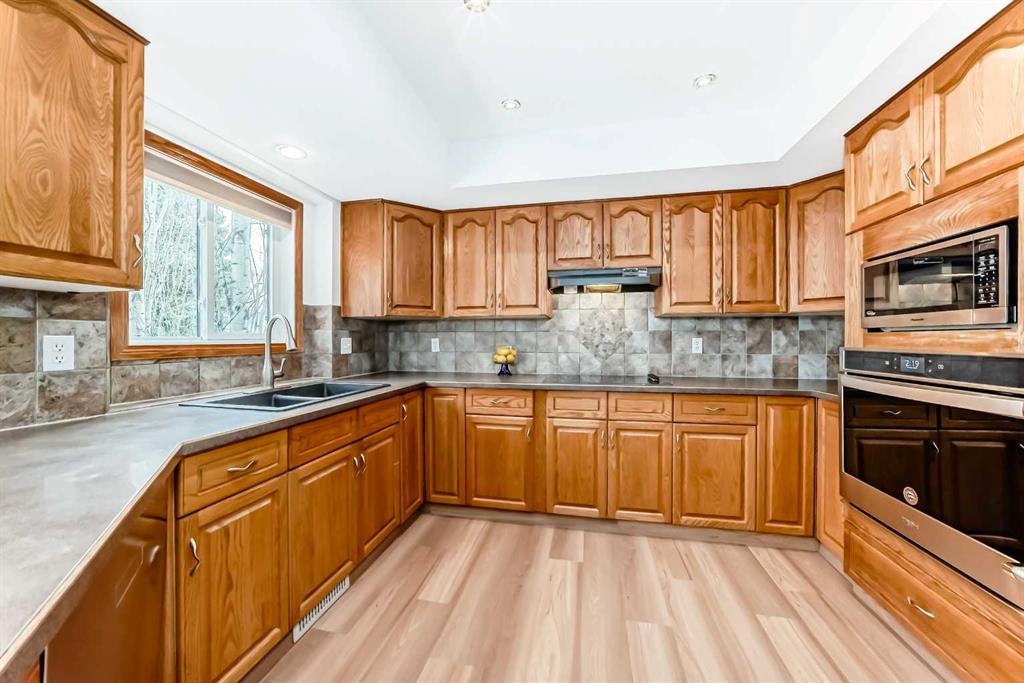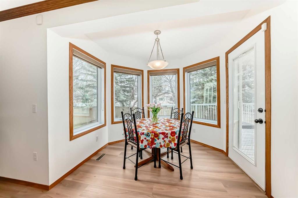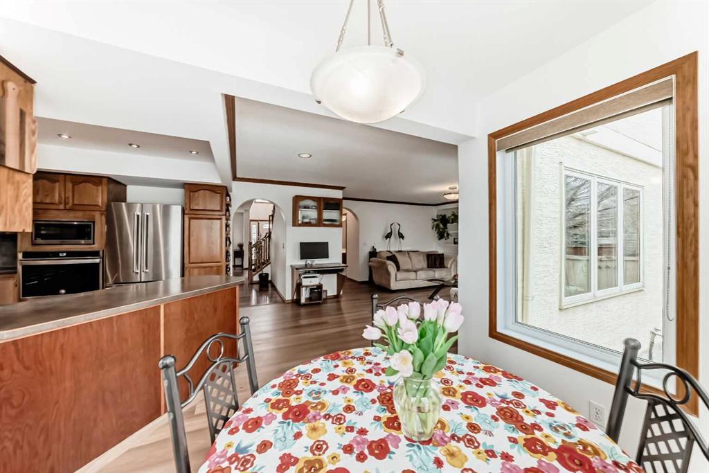 Step inside to soaring vaulted ceilings and a bright, inviting living and dining area finished with rich hardwood flooring, ideal for both everyday living and entertaining. The spacious kitchen is thoughtfully designed with newer appliances (cooktop 2026), brand-new vinyl plank flooring, and a sun-filled breakfast nook surrounded by windows.