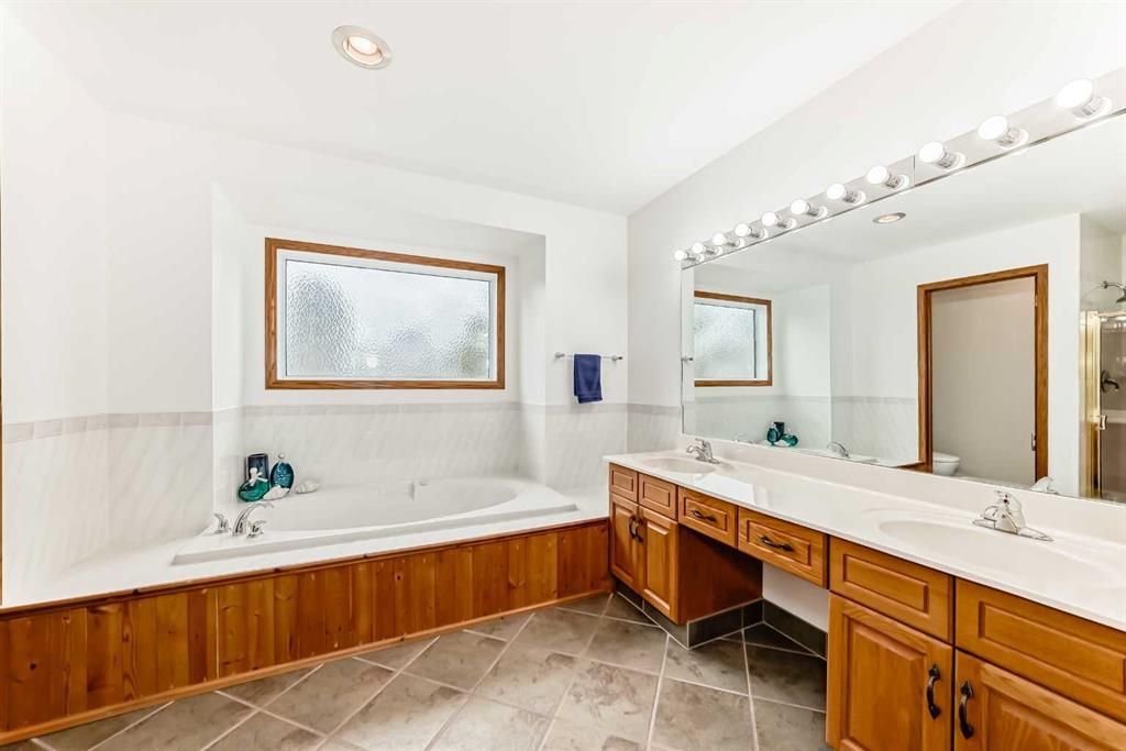 Upstairs, you’ll find three generously sized bedrooms, including a inviting primary retreat complete with a walk-in closet and convenient ensuite featuring double sinks, a jetted tub, and separate shower. The upper 4-piece bathroom includes heated floors, adding everyday comfort for the whole family.