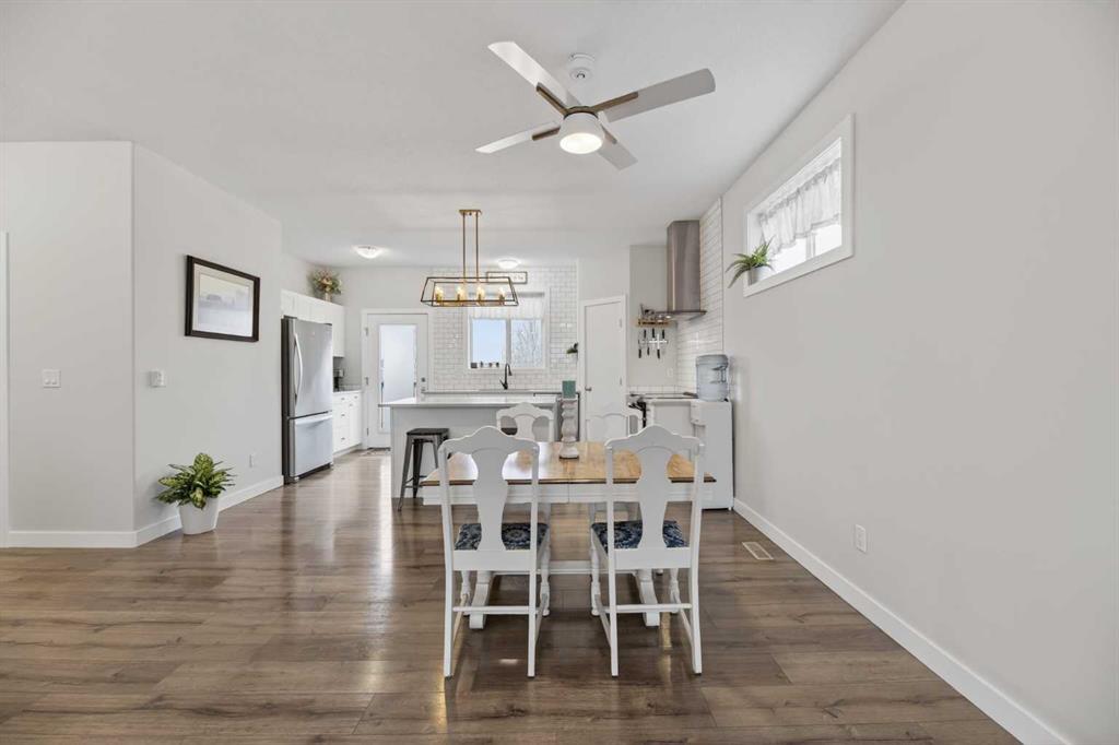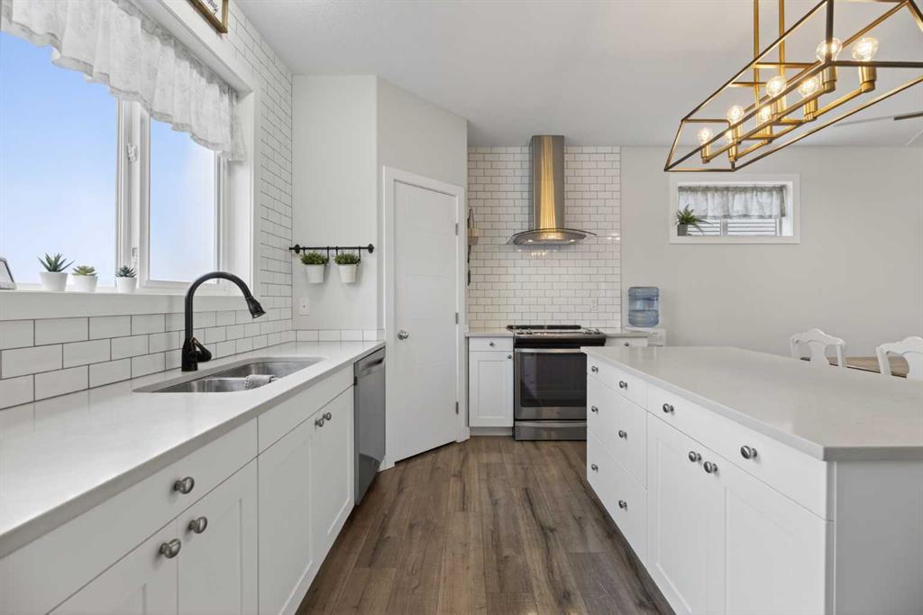 THIS COULD BE YOUR NEXT HOME!!! If you are looking for an almost new home that is so spic n span and ready to move into AND you would like to make Didsbury your next soft place to fall you will want to check this out!! This bungalow is located close to the coulee and it is probably one of the quietest areas of town. As soon as you step through the front door you will immediately notice the bright, open floor plan and how clean and well thought out this home is! The kitchen has lovely quartz countertops, beautiful tiled backsplash, corner pantry, island and stainless appliances. You can either look out the window and see the walking paths and open fields or you can go out through the garden door and sit on the deck to appreciate the quiet yard. There is an eating/dining area and living room-this main level area is great for entertaining since it is so open and welcoming. Head down the hall and you will find 2 secondary bedrooms, main 4pc bathroom and the primary bedroom with 3 pc ensuite and large walk in closet. Head downstairs and you will really appreciate how much space for the whole family you will have here. There is a large family/rec room (playhouse can be included), bedroom (daybed can also stay), 4 pc bathroom with laundry, utility room and large storage area. Outside you will not have to worry about parking since there is a double garage and concrete driveway. The yard is also immaculate and when you are sipping your coffee while sitting on that deck you will appreciate the privacy and tranquility here. There truly is nothing to do here but move right in so you will want to view this lovely home very soon!!