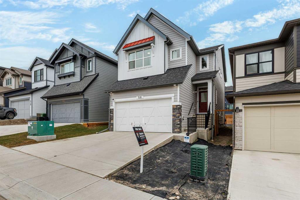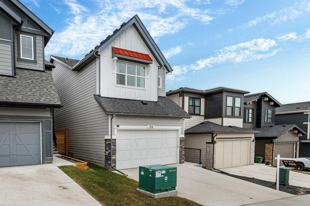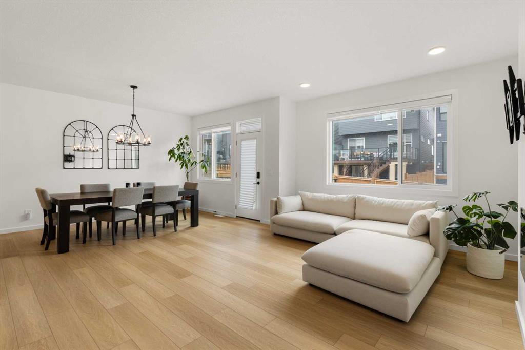 Welcome to 50 Royston Terrace NW in Rockland Park, a 2024-built home offering a clean modern design, thoughtful functionality, and a bright, open main floor layout. The kitchen is a true focal point of the home, featuring a large central island with an expansive quartz countertop, offering excellent prep space, storage, and casual seating potential. The space is further enhanced by two-tone cabinetry, stainless steel appliances, built-in microwave and wall oven, gas cooktop, chimney-style hood fan, walk-in pantry, matte black hardware, pendant lighting, and recessed ceiling lights. The white upper cabinetry keeps the kitchen bright and timeless, while the darker island and lower cabinetry add contrast and a clean contemporary feel.