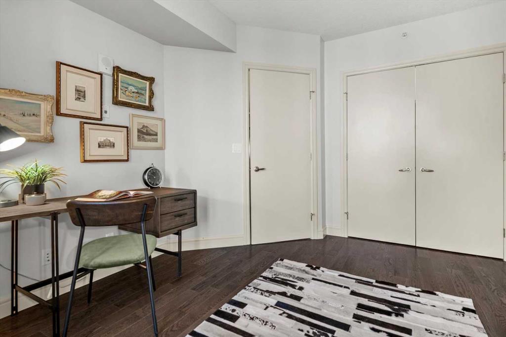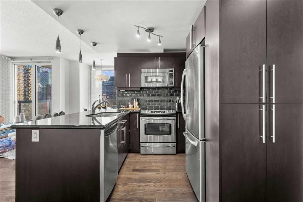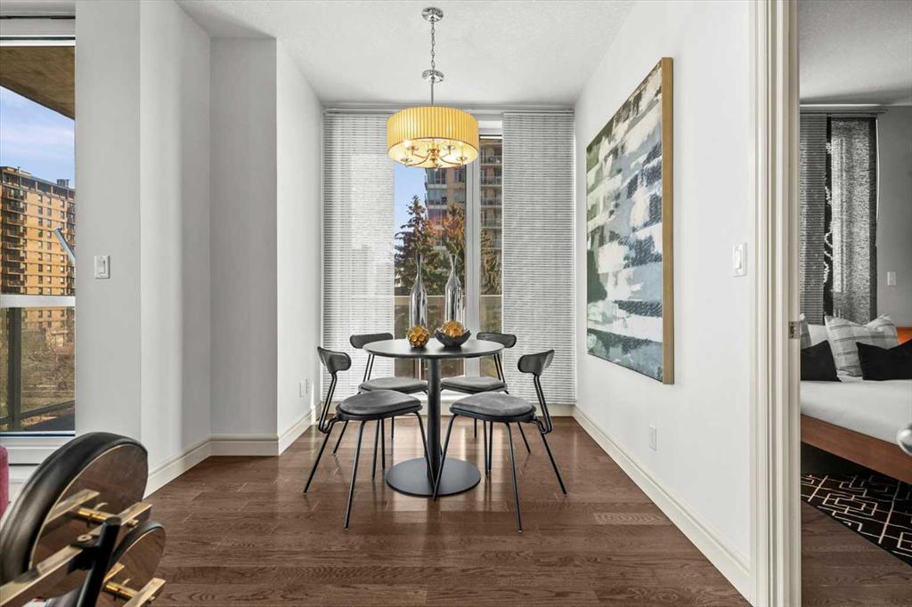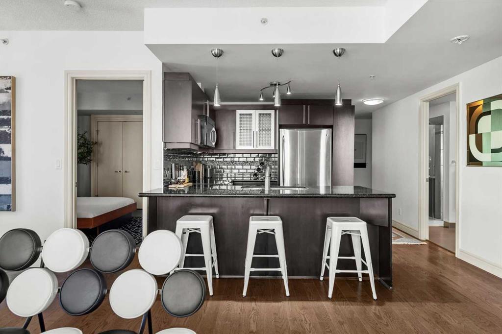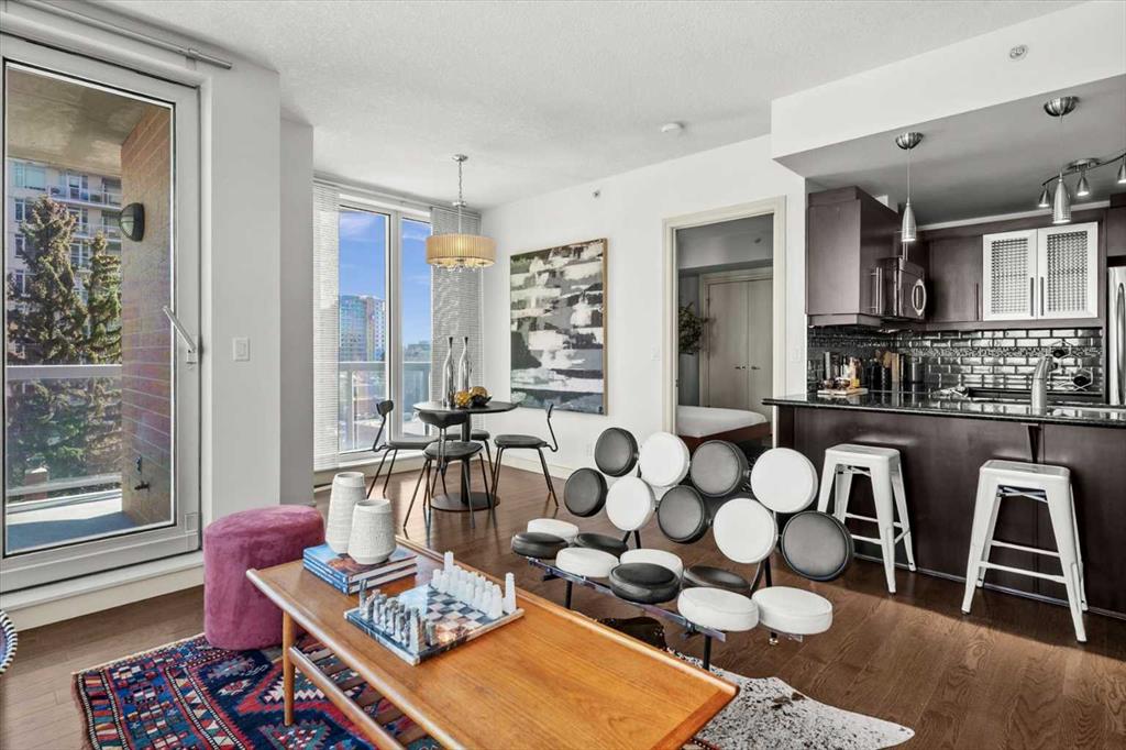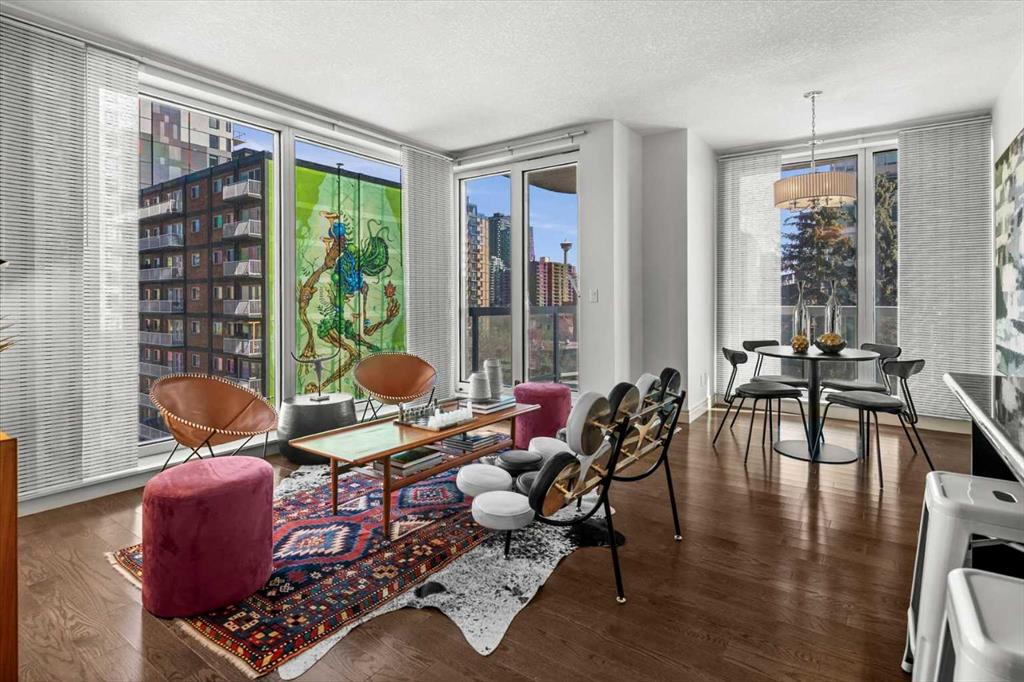 Bright, quiet, and impeccably positioned on the 5th floor, this nearly 900 sq ft corner suite offers a refined urban lifestyle in one of Calgary’s most sought-after inner-city locations. Featuring two bedrooms and two full bathrooms, the home strikes a rare balance between downtown energy and everyday tranquility, sitting just steps from the excitement of 17th Avenue while staying thoughtfully set back from the bustle of city life. Living here means embracing a truly walkable lifestyle. Start your mornings with coffee from a nearby café, pick up groceries or fresh produce just around the corner, or head to your favourite yoga studio or boutique gym, all without ever needing your car. Commuting is effortless, whether you work downtown, attend meetings across the core, or rely on nearby transit routes for easy access throughout the city. In the evenings, stroll to award-winning restaurants, lively patios, cocktail lounges, and local boutiques, then return home to a peaceful retreat elevated above the street. Inside, the open-concept layout is flooded with natural light thanks to floor-to-ceiling windows and a desirable corner orientation. Hardwood floors, central air conditioning and heating, in-suite laundry, and a thoughtful split-bedroom design create a space that feels both stylish and highly functional. The primary bedroom offers excellent privacy with a generous closet and a well-appointed ensuite, while the second bedroom and full bathroom are ideally positioned for guests, roommates, or a dedicated home office. Step onto the private balcony off the living room and enjoy your own outdoor space, complete with a gas BBQ hookup…perfect for relaxed evenings, summer grilling, or entertaining friends before heading out on 17th Ave. The home also includes titled underground parking and a separate storage locker, adding everyday convenience and peace of mind. The Montana is a standout building in Calgary’s urban landscape, known for its timeless architectural design and quality concrete construction that provides superior soundproofing and long-term value. Residents enjoy a low-maintenance, luxury lifestyle with a 7-day concierge, a newly updated fitness centre, and condominium fees that include heat, water, insurance, and more. Beautifully maintained and move-in ready, this residence is ideal for professionals, downsizing, or urban enthusiasts seeking sophisticated downtown living without compromise. This is a home that truly complements the vibrant, connected lifestyle that downtown Calgary is known for.
