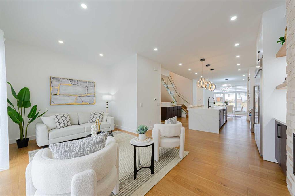 Welcome to this stunning semi-detached 2 storey in the highly sought-after community of Montgomery just minutes from the UofC, Foothills Hospital, Market Mall, Bow River, and a variety of local shops & restaurants! With over 2000sqft, this home is built with quality, luxury and stylish, and combines of convenience and modern living. Steps inside to discover a thoughtfully designed layout with high-end finishes throughout. The main floor features an airy open-concept design, highlighted by a chef’s kitchen with a large island, a bright and inviting family room that leads to the balcony with mountain views! Up along the unique glass railing on stairway, you will find 3 grand sized bedrooms, a laundry room and 2 full bathrooms. The primary suite is a true retreat, packed with mountain views, a walk-in closet and a luxurious ensuite featuring a double vanity, walk-in shower, and a soaking tub. Both main and upper floor has 10ft ceilings! The walk-out basement is a self contained legal suite(approved with permits and subject to final inspection), offering a large recreation/living area, a full kitchen, two bedrooms, and a full bathroom—perfect for your extended family or rental potential! Extras of this home including AC, KitchenAid appliances package, all solid interior doors, intelligent toilet, in-floor heating in basement & heated floors in master ensuite, sunny south facing balcony & backyard…all finished with thoughtfully DESIGNER TOUCHES! Don’t miss this gem!