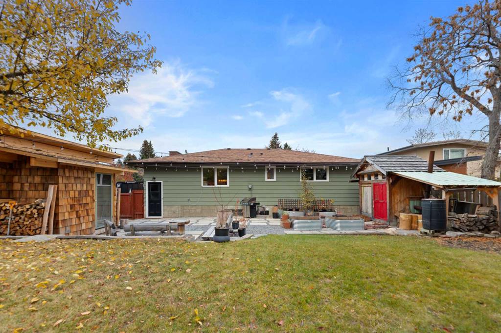 Welcome to 5003 Dalhart Road NW, a bright and tastefully updated family home with over 2,500 sq ft of developed living space in the heart of Dalhousie. Sitting on an elevated lot that offers extra privacy and curb appeal, this home is filled with natural light and enjoys a sunny, south-facing backyard. Inside you will find a warm and welcoming main floor with three spacious bedrooms and two bathrooms, including a private half-bath ensuite in the primary bedroom. The cozy inviting living room features a classic wood-burning fireplace and is open to the large dining area. The fully renovated kitchen has been thoughtfully redone from top to bottom with modern cabinetry, ample storage, and a unique and functional built in-desk area, perfect for homework or keeping life organized! You will appreciate the many updates, including new windows and exterior doors (2023), fresh interior and exterior paint, upgraded furnace (2020), and new flooring throughout—featuring hardwood upstairs and luxury soft carpeting downstairs (2022). The finished basement offers plenty of extra space, including a non-conforming bedroom or office, a large family room, and a full 3-piece bathroom. There are also two additional bonus/flex rooms, one was previously used as a woodshop and the other for storage, giving lots of flexibility for hobbies, a gym, or extra workspace. Step outside and enjoy your own backyard retreat that was lovingly created and cared for over the years. This south-facing yard is private and full of sunshine and features an impressive custom-timber built shed, that’s perfect as a studio, workshop, or creative space. Relax year-round in the private backyard sauna or gather around the fire on cool evenings beneath softly glowing string lights. Located on a quiet street in a friendly, well-established community, you will be close to great schools such as St. Dominic School just literal steps outside the door. Dalhousie Station, parks, and main roads. 5003 Dalhart Road NW is a warm, comfortable home that combines modern updates with family-friendly charm and is ready for its next chapter!