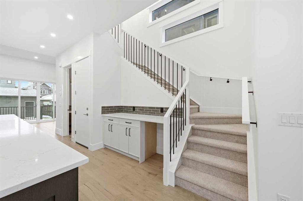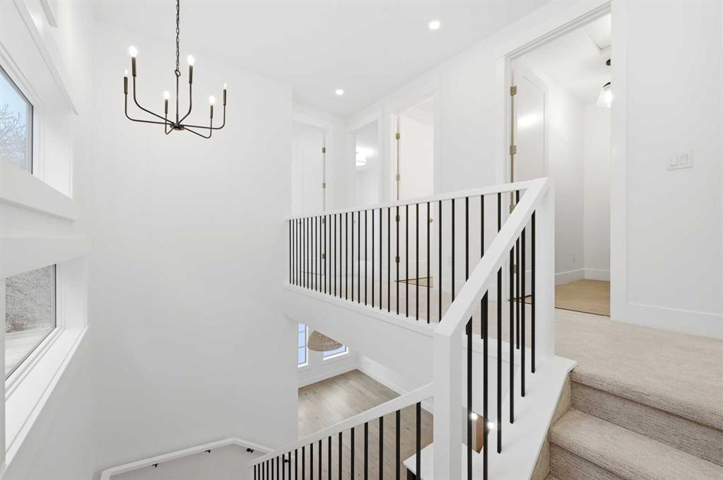 The upper level features a primary suite with its own coffee station, two walk-in closets, and a 5-piece ensuite with a soaking tub and glass shower. Two additional bedrooms, a full bath, and the laundry room are also on this floor. With a classic brick exterior, double garage, and landscaped yard, the home is just minutes from the shops and dining in Marda Loop. Book your showing today!