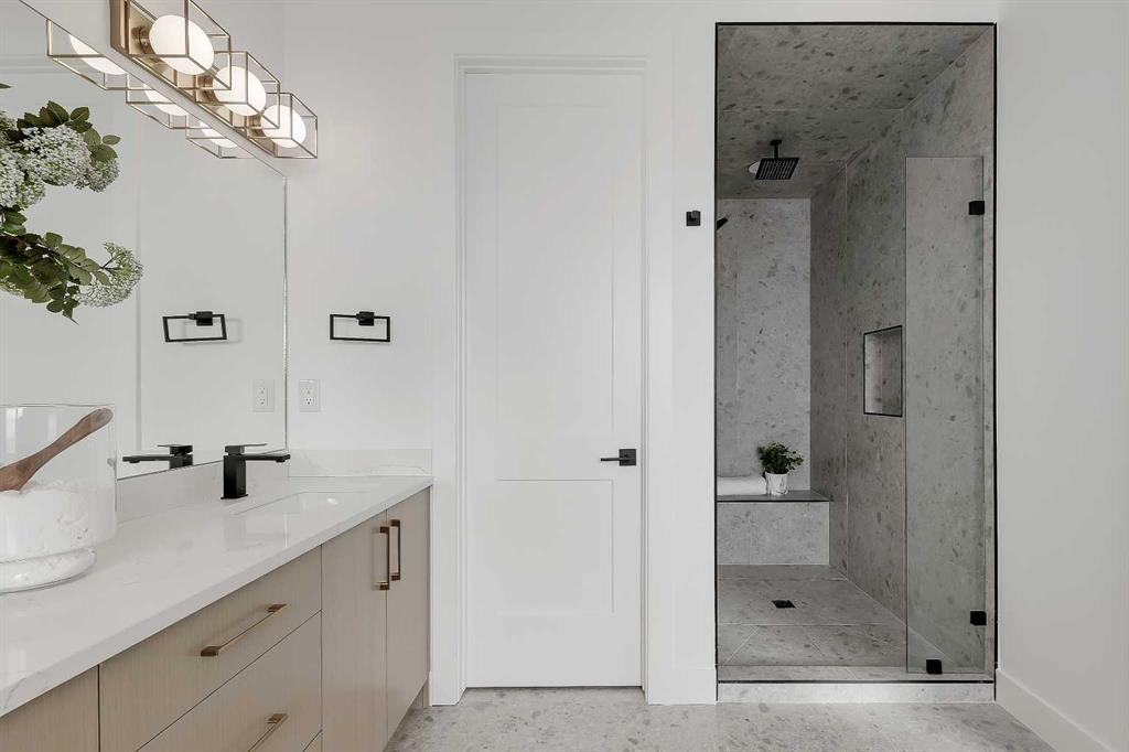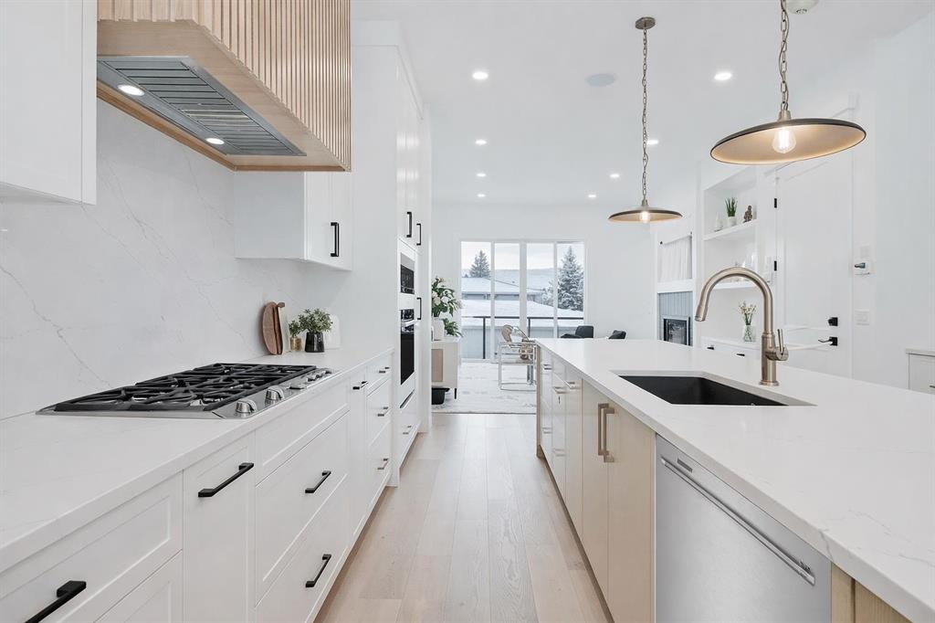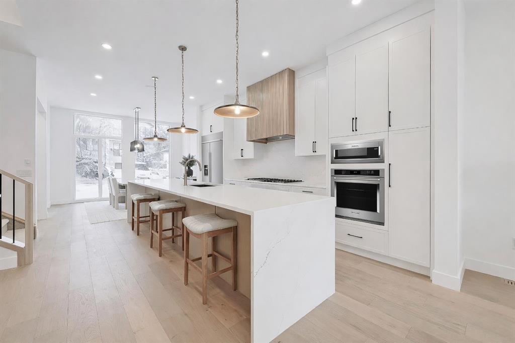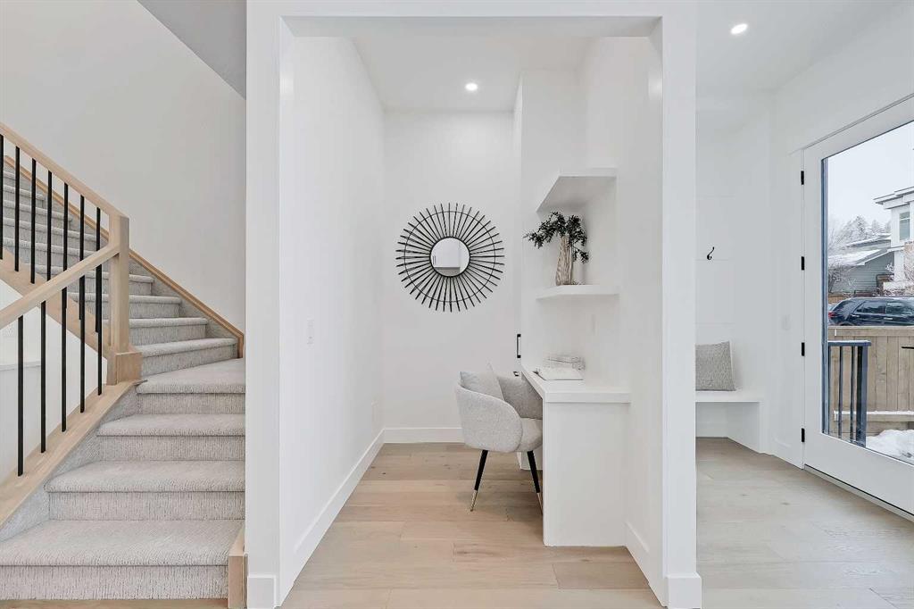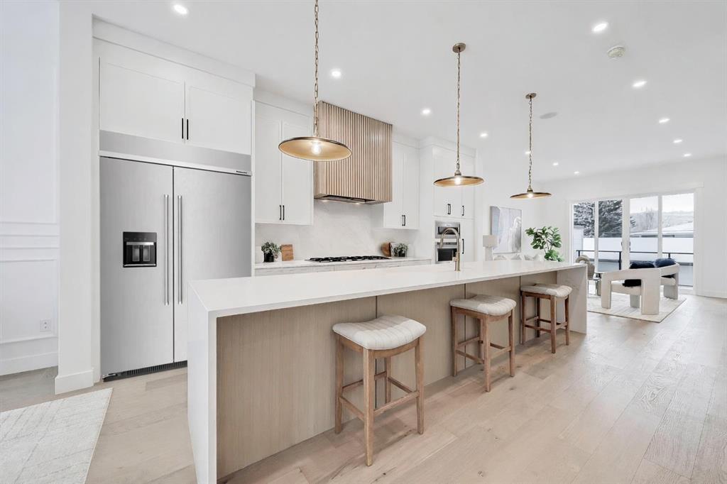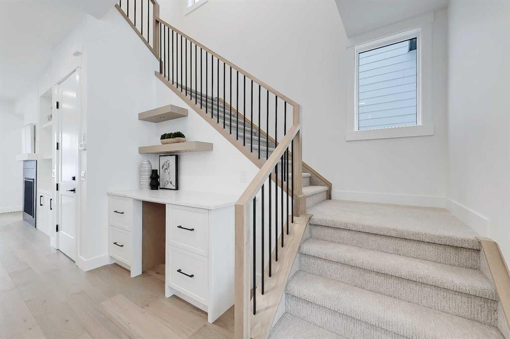 Welcome to a home where contemporary elegance meets everyday comfort in the heart of MONTGOMERY. Situated on a quiet street in this sought-after inner-city community, this stunning new build is designed with both style and function in mind, offering a thoughtfully crafted layout including a WALKOUT BASEMENT w/ COVERED PATIO SPACE, high-end finishes, and incredible natural light throughout. From the moment you step inside, the open-concept main floor makes an immediate impression. You’re greeted by a lovely glass wall in the front foyer, looking into the main floor home office with a built-in desk. The heart of the home is the designer kitchen—a perfect blend of modern aesthetics and practicality. A waterfall island anchors the space, complemented by custom cabinetry, quartz countertops, and top-tier appliances, including a gas cooktop and French door fridge. A built-in pantry offers storage space, while a built-in coffee counter adds more cabinetry and room for small appliances. The front dining area is spacious enough for large gatherings, while the living room is designed for relaxation and entertaining, featuring a sleek gas fireplace and oversized patio doors that open to the upper deck and SOUTHWEST-FACING BACKYARD. A stylish built-in bench and hooks in the mudroom provide everyday convenience, and a chic powder room completes the main level. Upstairs, the primary suite is stylishly finished with a tray ceiling and a spacious walk-in closet with custom built-ins. The generous ensuite is a masterpiece, featuring a freestanding soaker tub, a walk-in shower with a bench, dual vanities, and elegant finishes. Two additional bedrooms each have built-in closets, while a beautifully finished main bath adds even more functionality along with the full laundry room with tile floor and built-in cabinetry. The legal 2-BED LOWER SUITE is a fully independent living space featuring a modern kitchen with full-height cabinetry, quartz countertops, and a stainless steel appliance package. The thoughtful layout includes a bright living room, two spacious bedrooms with built-in closets, a stylish 4-piece bath, dedicated laundry, and a private backyard entrance. The highlight of this space, though, is the full WALKOUT PATIO – the covered space is perfect for enjoying the outdoors year-round, with the additional convenience of a fully private entrance! Located in Montgomery, this home offers an unbeatable lifestyle. Enjoy quick access to the Bow River pathways, Shouldice Park, and Winsport, perfect for outdoor enthusiasts. The community is home to fantastic local restaurants, trendy coffee shops, and boutique shopping while offering easy access to Market Mall, Foothills Hospital, the University of Calgary, and major roadways for a seamless commute. Don’t miss your chance to own this beautifully designed home in one of Calgary’s most desirable neighbourhoods! *Photos from show suite finishes may vary*