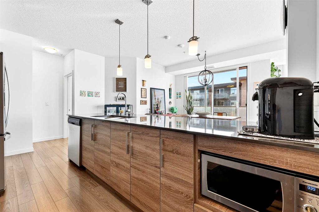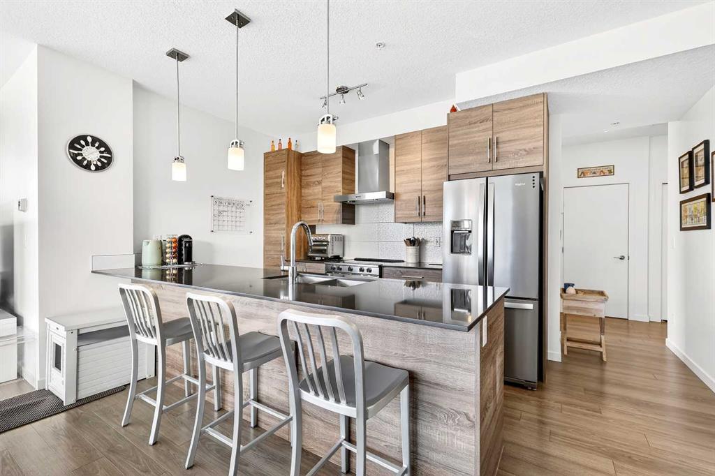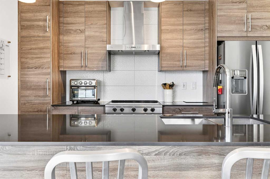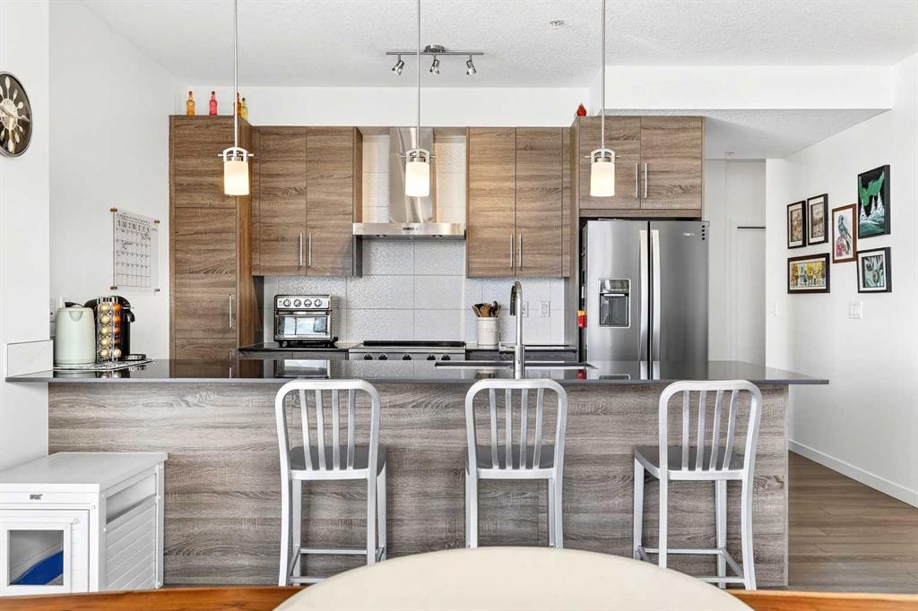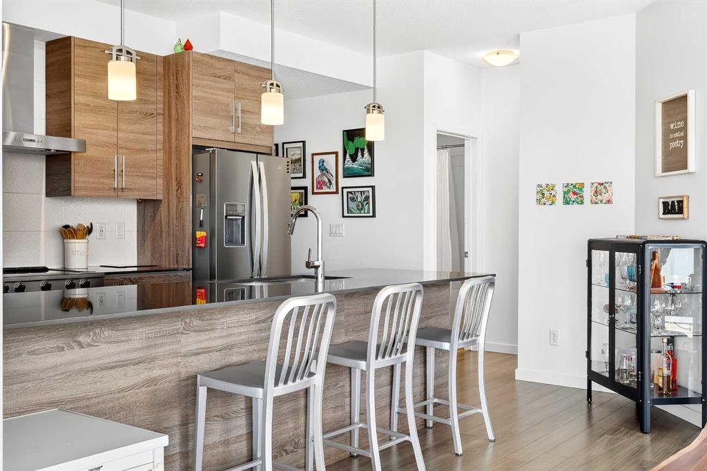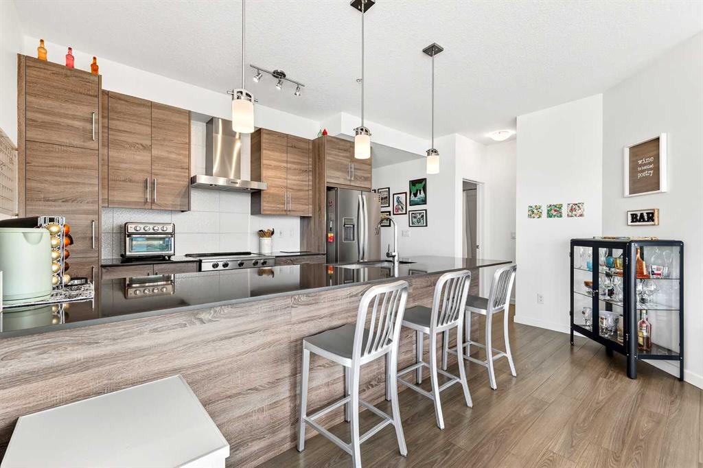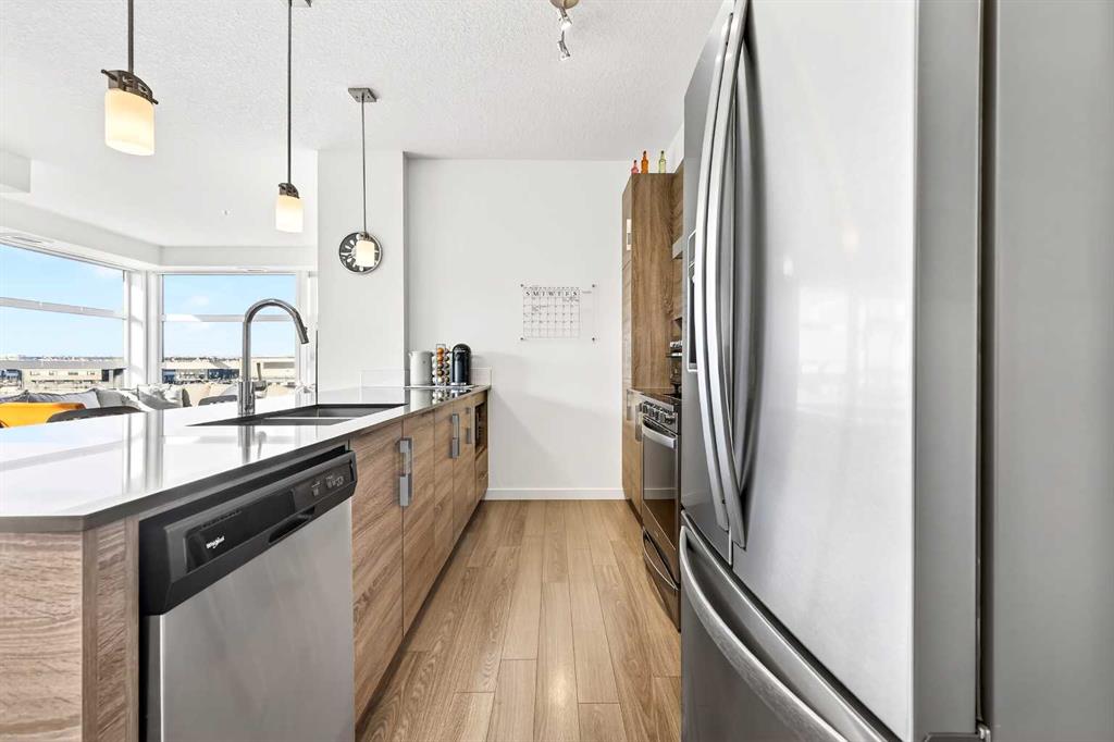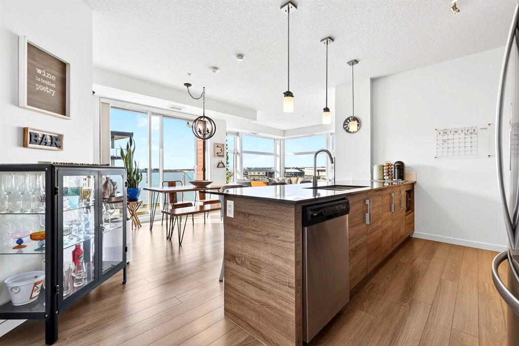 Welcome to the highly sought-after, always in-demand resort-style living in beautiful Westman Village. The all-ages condo is ideally situated on the shores of Mahogany Lake with extensive walking paths, sandy beaches, and 4 seasons of activities! This bright, beautiful, and nicely upgraded 5th-floor corner suite is built to Jayman’s high standard and finish level and is located in Calligraphy 1 with sunny SW views. It features three bedrooms, with the Primary Suite showcasing a full ensuite with a large walk-in oversized shower. The 3rd bedroom is perfect for family & guests or can be creatively used as a home office, providing abundant west-facing light throughout the day. The expansive main living area on the corner offers ample floor-to-ceiling windows, allowing you to fully appreciate the elevation, inviting the outside in & the stunning bright colour palette highlights your upgraded appliances, elegant stone counter & stylish décor. In-suite laundry, spacious foyer, and upgraded pantry included. In addition, other bonus features include a covered 22 x 6 balcony with a gas line, a TITLED underground parking stall, custom California closets and storage throughout. This Jayman BUILT community with the best location, directly adjacent to Calgary’s largest lake, the last of its kind, an award-winning community of Mahogany & only resort community on a lake. Impressive landscaping matches the picturesque views from your future backyard, with fountains, park benches, bridges, pathways & raised planters. The 40,000sf amenity center speaks for itself. Activities are available for all interests & hobbies. Including a swimming pool w/a 2 story water slide, golf simulator, fitness centre, movie theatre & so much more! 24-hour, 7-day a week security & concierge service. All homes include exceptional specifications, such as solar panels on every building, forced air, heat, and air conditioning, triple-pane windows, Vancouver-inspired architecture with oversized covered balconies, and Hardie board siding with extensive brick & stone masonry. Truly a one-of-a-kind experience, join the select few who will call CALLIGRAPHY their home. Winter eliminated-1292 underground parking stalls-not just for our residents but also their guests & visitors with extensive pedestrian +15 skywalks & underground passageways. 200 visitor parking stalls located in the heated, underground parkade. 10 short-term stay hotel suites, 4 indoor electric dual car chargers, 3 restaurants, Alvin’s Jazz Club (casual-upscale jazz bar), Chairman’s Steakhouse, our highest amenity & Diner Deluxe. Plus, Analog Coffee, Chopped Leaf, Village Medical, Mahogany Village Dental, Sphere Optometry, Moderna Cannabis, MASH Eats, Marble Slab, Dolphin Dry Cleaners, 5 Vines & Mode Fitness Studio, Pie Junkie, a day care & a medical spa. Amazing $8 Million spent on the surface & landscaping: 596 Trees, 8019 shrubs, 1940 grasses, 4292 perennials, 10 fountains onsite… Nothing Compares!