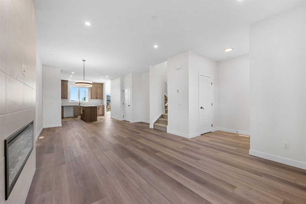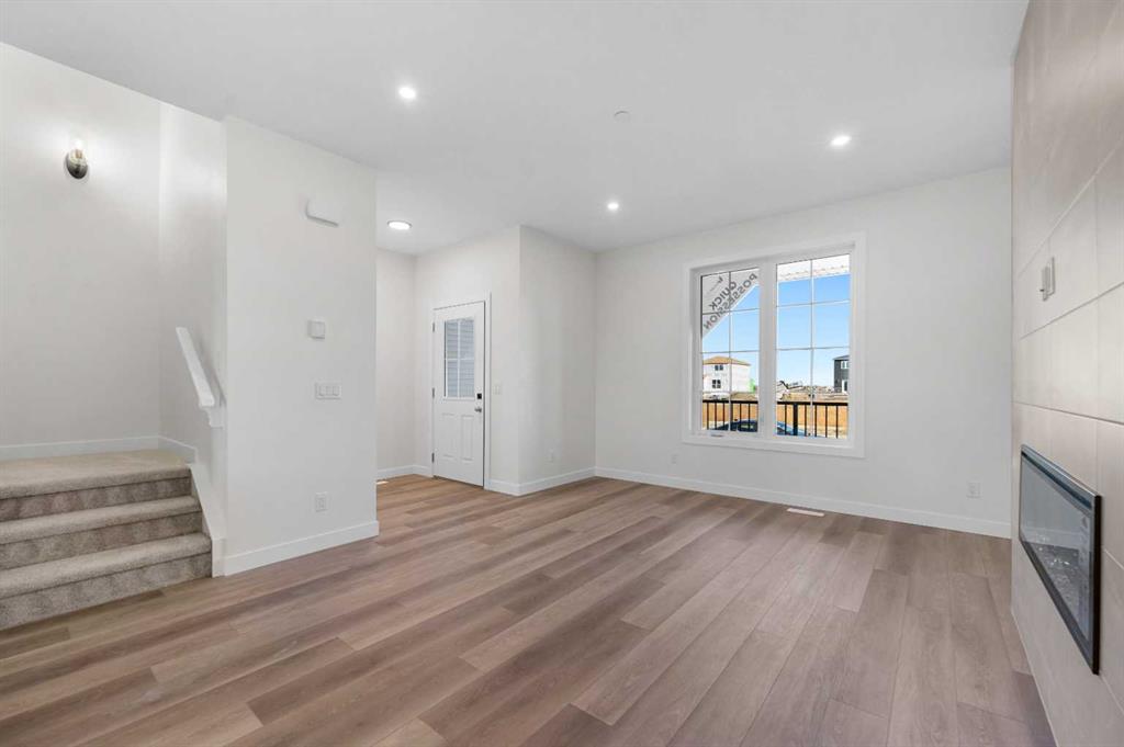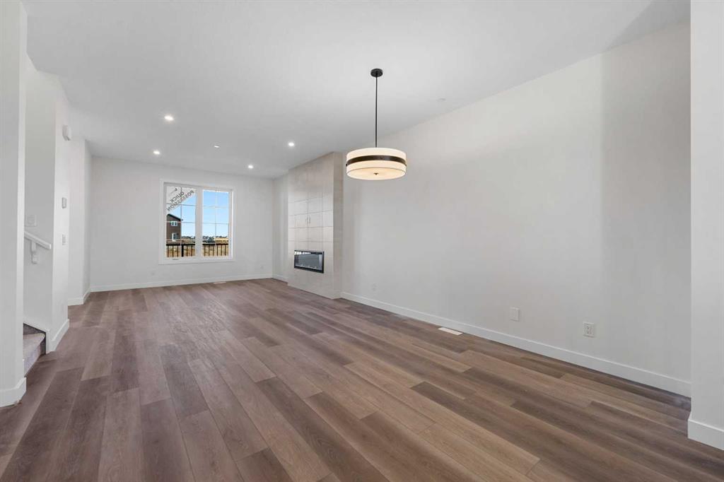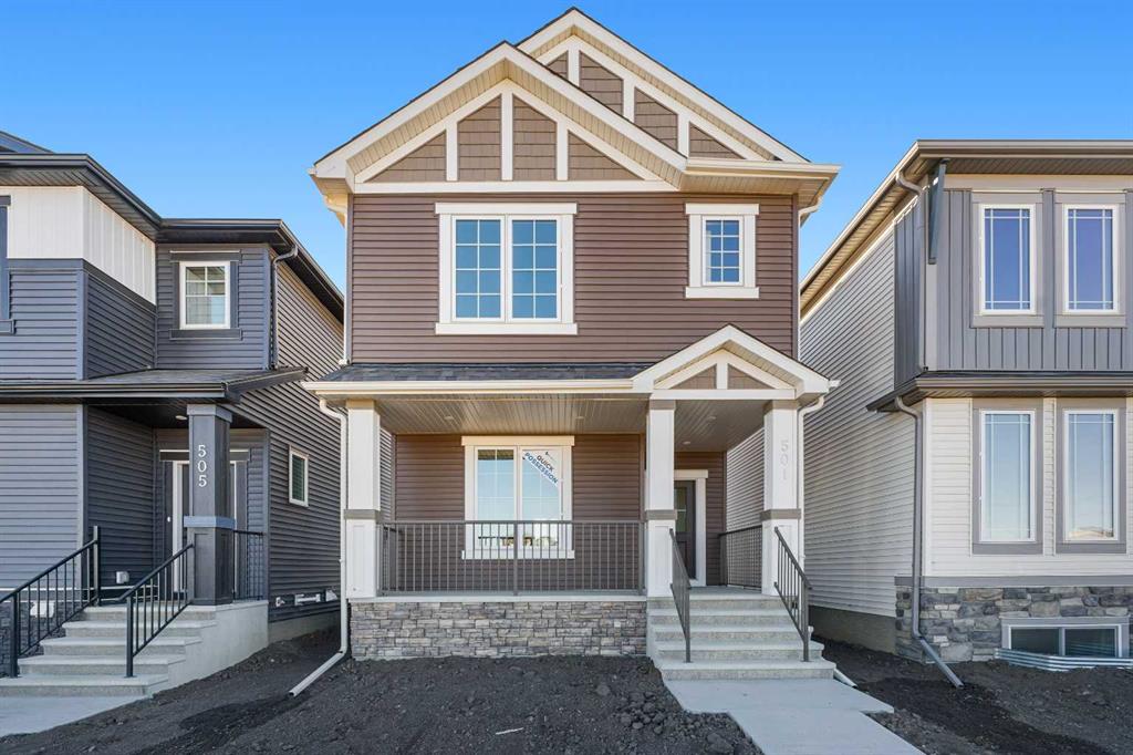 Welcome to this beautifully crafted, move-in ready 2025-built home by Broadview Homes, offering 1,677 sq ft of thoughtfully designed living space. Situated on an east-facing lot with a sunny west-facing backyard and convenient rear lane access with a gravel parking pad, this home combines style, comfort, and functionality. The main level features an open-concept floor plan with high ceilings, an elegant electric fireplace, granite countertops throughout, full-height cabinets, and a modern kitchen complete with a stainless steel gas range, hood fan, and built-in microwave. Upstairs offers 3 spacious bedrooms, 2.5 bathrooms, and a convenient upper-floor laundry room. Enjoy additional upgrades including a 200 AMP electrical panel, precast front verandah, and 9′ basement ceilings. The basement is legal suite-ready, with a separate side entrance, second furnace and HRV system, kitchen rough-in, and laundry rough-in – all subject to City of Calgary approval. This is a fantastic opportunity to own a brand-new, luxury home with incredible future income potential in a growing community.