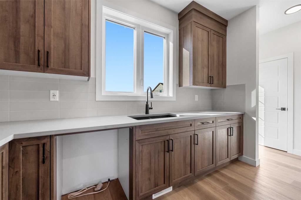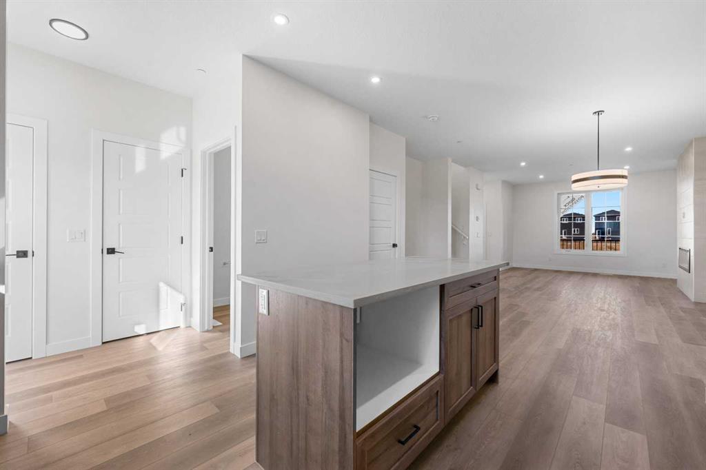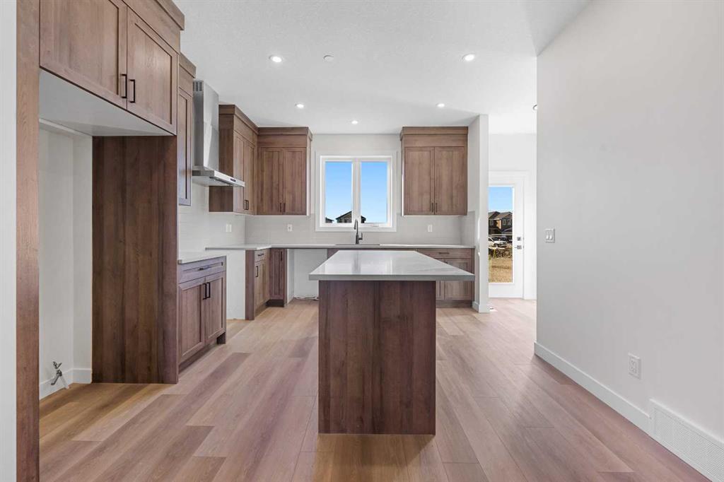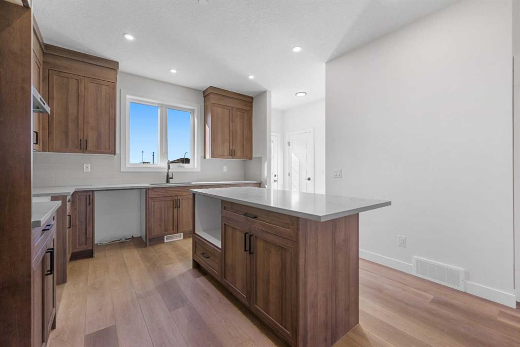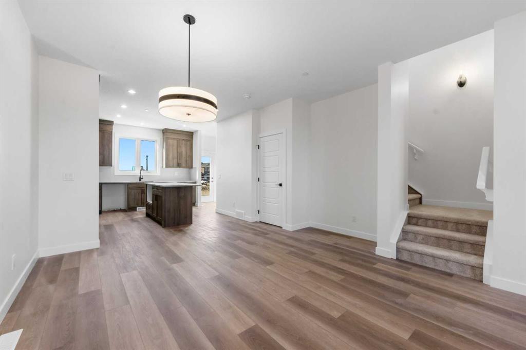 Welcome to this beautifully crafted, move-in ready 2025-built home by Broadview Homes, offering 1,677 sq ft of thoughtfully designed living space. Situated on an east-facing lot with a sunny west-facing backyard and convenient rear lane access with a gravel parking pad, this home combines style, comfort, and functionality. The main level features an open-concept floor plan with high ceilings, an elegant electric fireplace, granite countertops throughout, full-height cabinets, and a modern kitchen complete with a stainless steel gas range, hood fan, and built-in microwave. Upstairs offers 3 spacious bedrooms, 2.5 bathrooms, and a convenient upper-floor laundry room. Enjoy additional upgrades including a 200 AMP electrical panel, precast front verandah, and 9′ basement ceilings. The basement is legal suite-ready, with a separate side entrance, second furnace and HRV system, kitchen rough-in, and laundry rough-in – all subject to City of Calgary approval. This is a fantastic opportunity to own a brand-new, luxury home with incredible future income potential in a growing community.