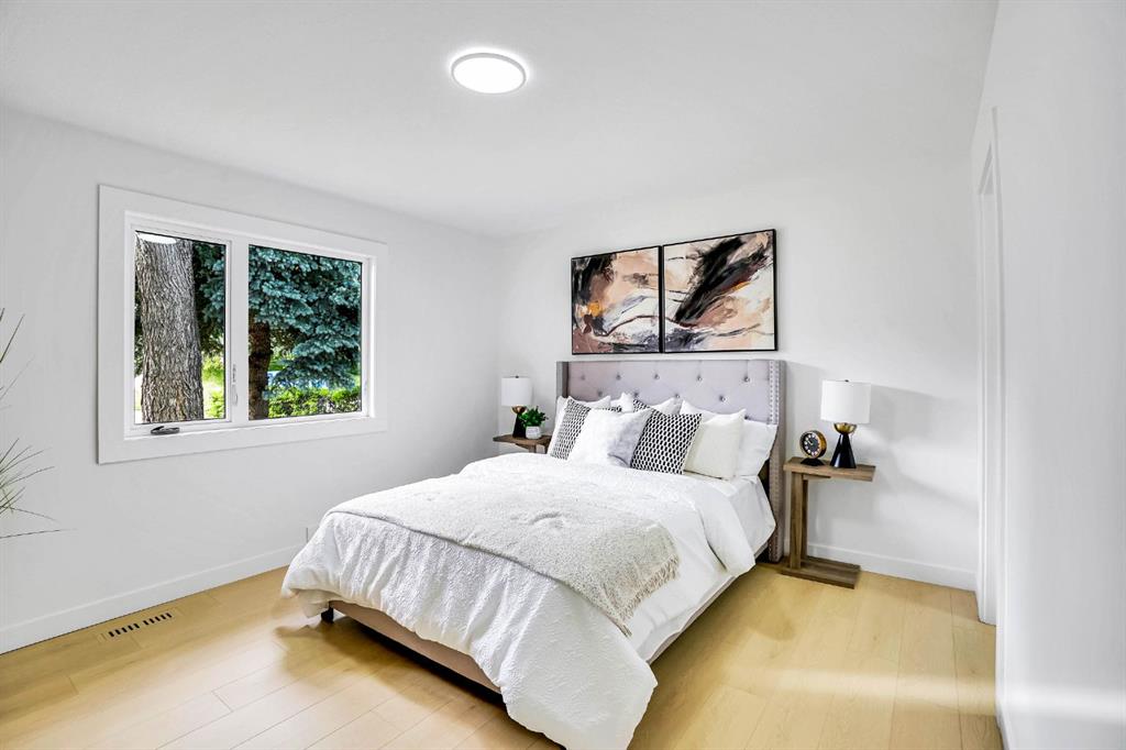 Welcome to 5016 Nemiskam Road NW, a stunning and fully renovated bungalow nestled in the highly sought-after community of North Haven. Situated just minutes from top-rated schools, charming cafés, beautiful parks, the University of Calgary, and SAIT, this home truly offers convenience and lifestyle. With nearly 1,500 sq ft of thoughtfully designed living space on the main floor, this home features 3 spacious bedrooms and 2 full bathrooms, including a luxurious primary suite with a custom walk-in closet and 3-piece ensuite. The open-concept main floor welcomes you with a beautifully crafted front foyer clad in white oak panels, leading to a bright and airy living room with a sleek electric fireplace and a bold feature wall designed to impress. The show-stopping kitchen boasts a modern two-tone design, high-end appliances including a built-in microwave, oven, and glass cooktop, gold accents, and under-cabinet and toe-kick lighting—perfect for cozy evenings. Down the hall, you’ll find two generous bedrooms, a fully tiled bath, and a convenient family laundry room. Downstairs, the legal 2-bedroom basement suite offers a large kitchen, full bathroom, and separate laundry—ideal for rental income, extended family, or entertaining on game nights. Outside, enjoy your newly built garage-top flat patio—perfect for summer BBQs, parties, or quiet relaxation. The home is wrapped in durable James Hardie board for long-lasting curb appeal and protection, complemented by brand new windows throughout to keep the warmth in during Calgary’s winters. With a spacious front yard and modern upgrades inside and out, this home is truly move-in ready and waiting for the perfect family.