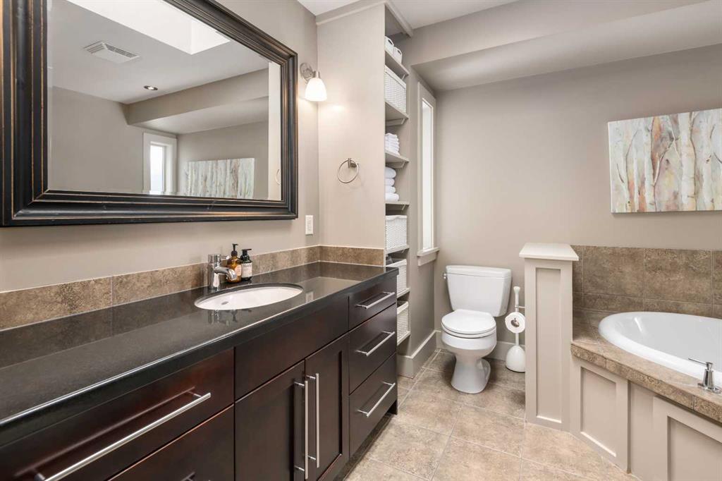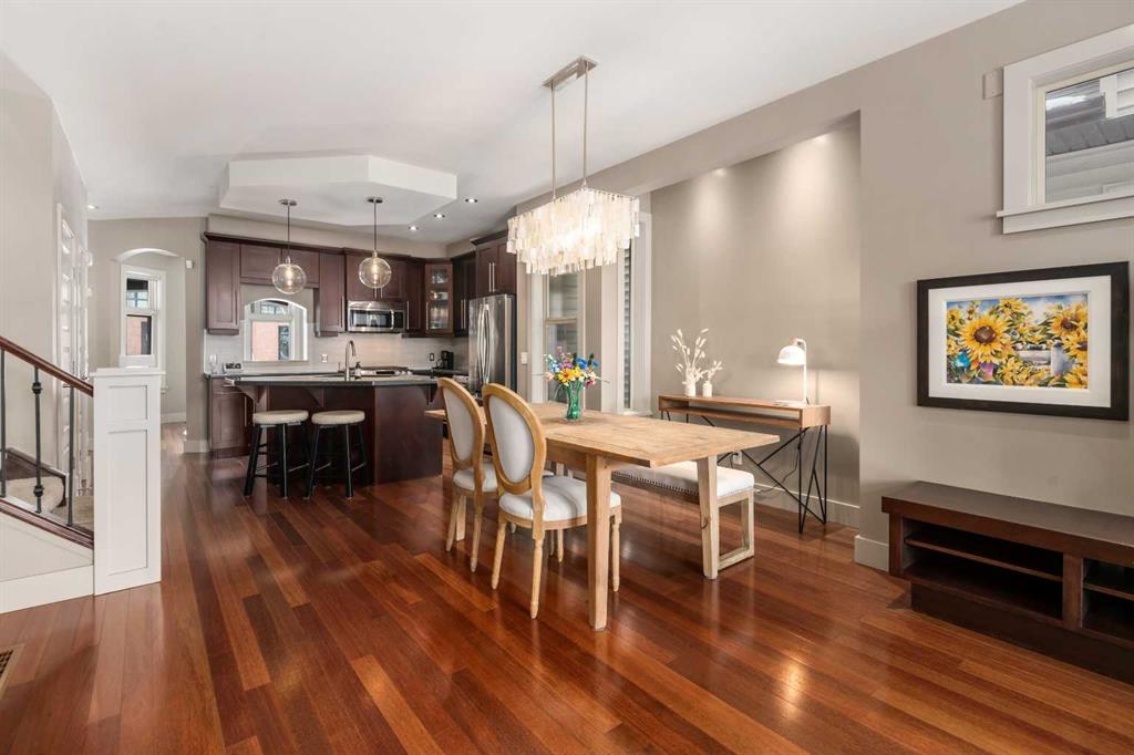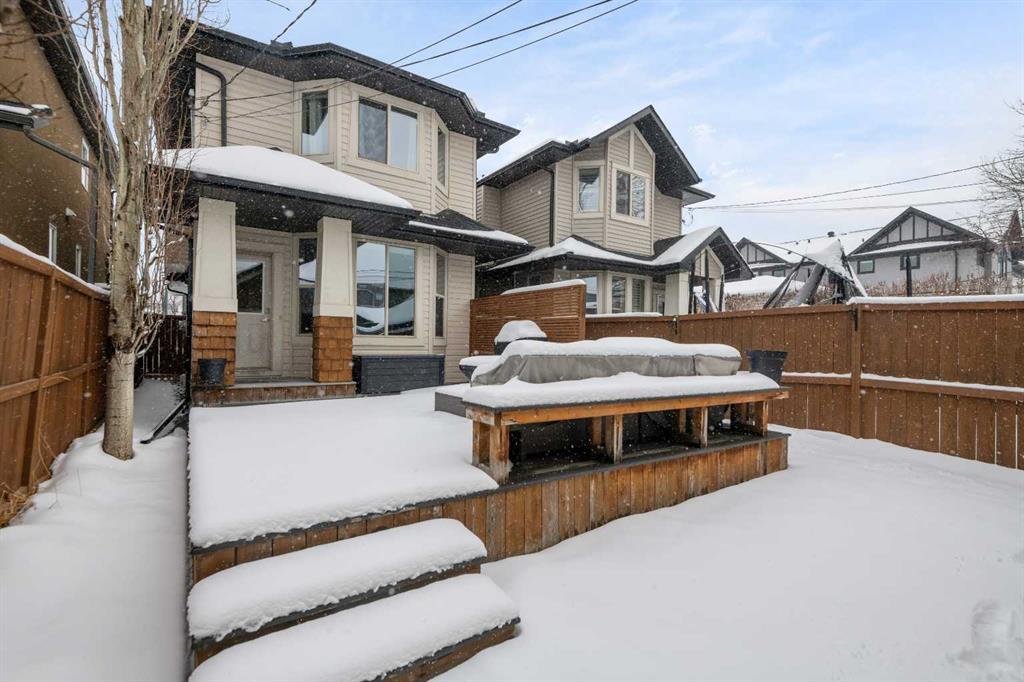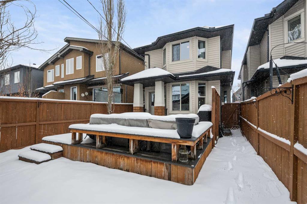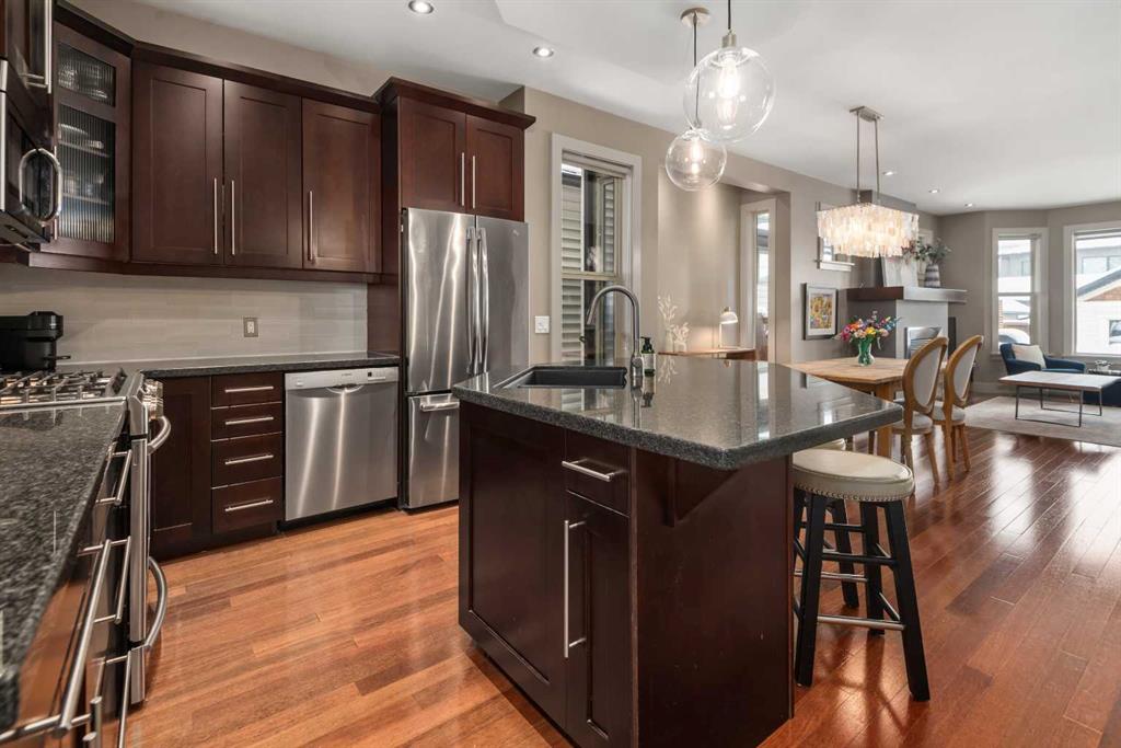 Nestled in the heart of sought-after Altadore, this beautifully finished 4-bedroom, detached two-storey home with double detached garage, offers the perfect blend of timeless style, thoughtful upgrades, and exceptional outdoor living. Inside, you’ll find 9-foot ceilings, rich merbeau hardwood floors, granite countertops, a large central island, stainless steel appliances, and a warm gas fireplace that anchors the inviting main living space. Upstairs you’ll find 3 bedrooms, including a gorgeous primary retreat featuring vaulted ceilings, a walk-in closet, and a luxurious ensuite complete with granite countertops, a skylight, a soaker tub, and a separate glass shower.