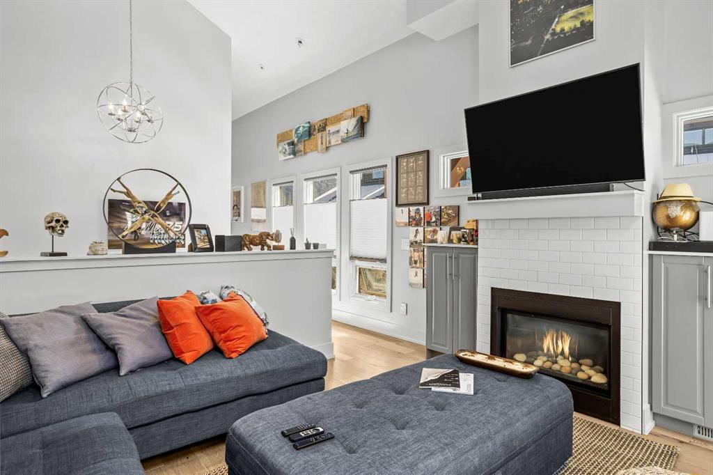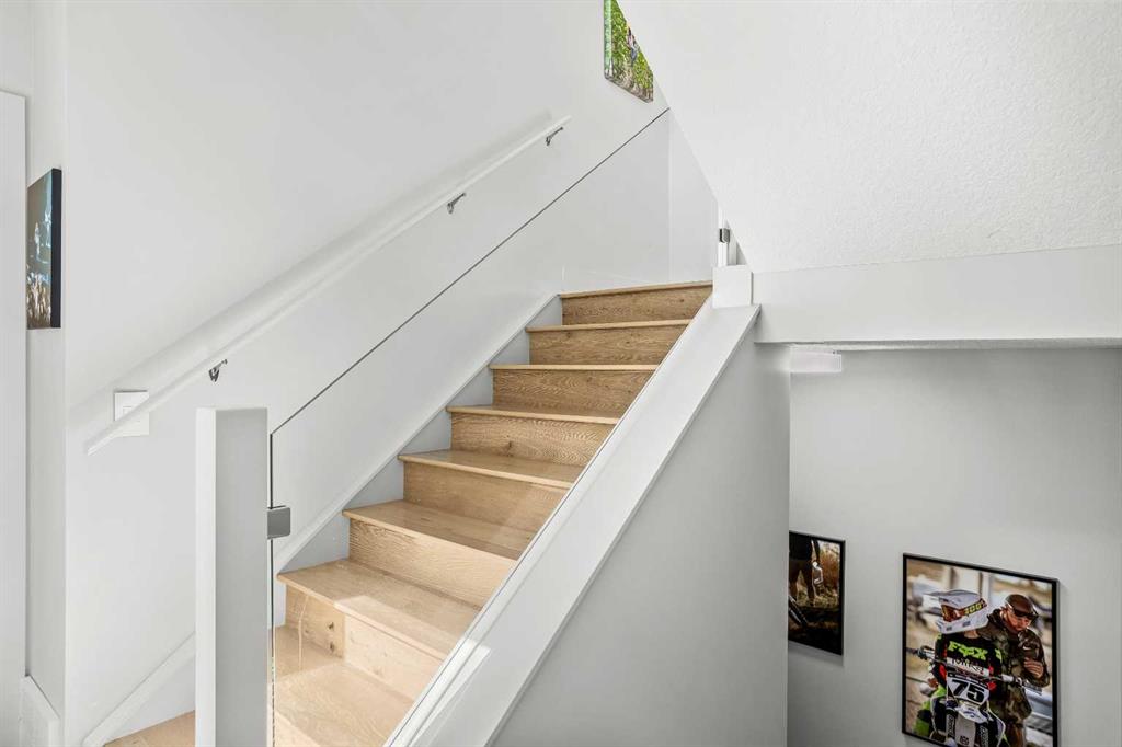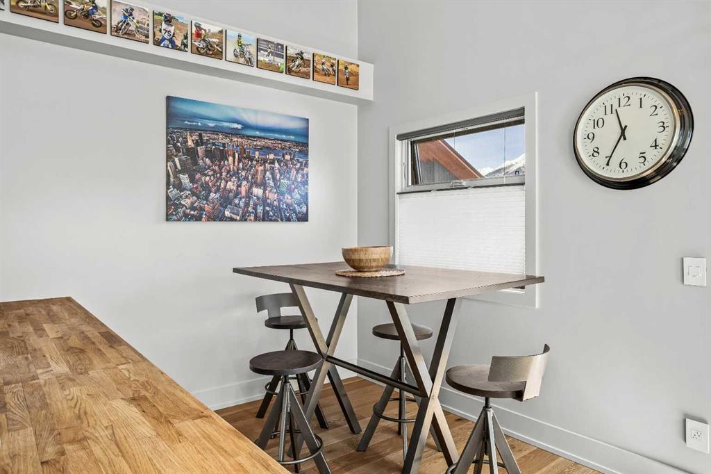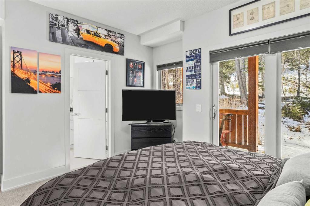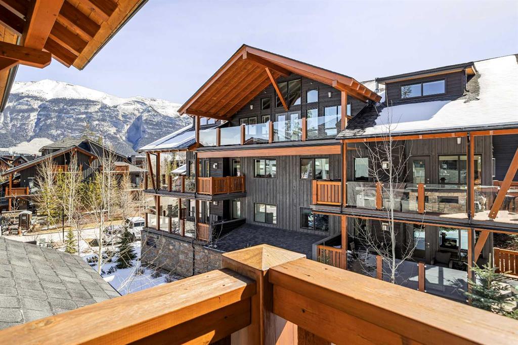 In a back row location, alongside a lovely treed hillside you’ll find this well appointed, bright & spacious modern townhome. Over 3 storeys, with no one above or below you, this 1743 SF end unit provides serenity & pride of place in the Three Sisters of Canmore. On entry, vaulted ceilings & a glass bordered stairway leads up to the main level, or down to a handy flex space, laundry & single garage, perfect for active lifestyles. The middle floor offers 2 bedrooms, where the primary suite is an ideal respite with its own bath & generous closet space. A private balcony leads to the woods alongside. Upstairs, views are panoramic, where 3 walls of glass bring the outside in. A thoughtfully laid out kitchen sits together with the dining area & will be the heart of entertaining. Opposite, the living room inspires relaxation & calm under soaring ceilings. Finding inspired design which brings comfort & utility while also offering an environment that’s “of” Canmore is a rare offering. We hope you agree!