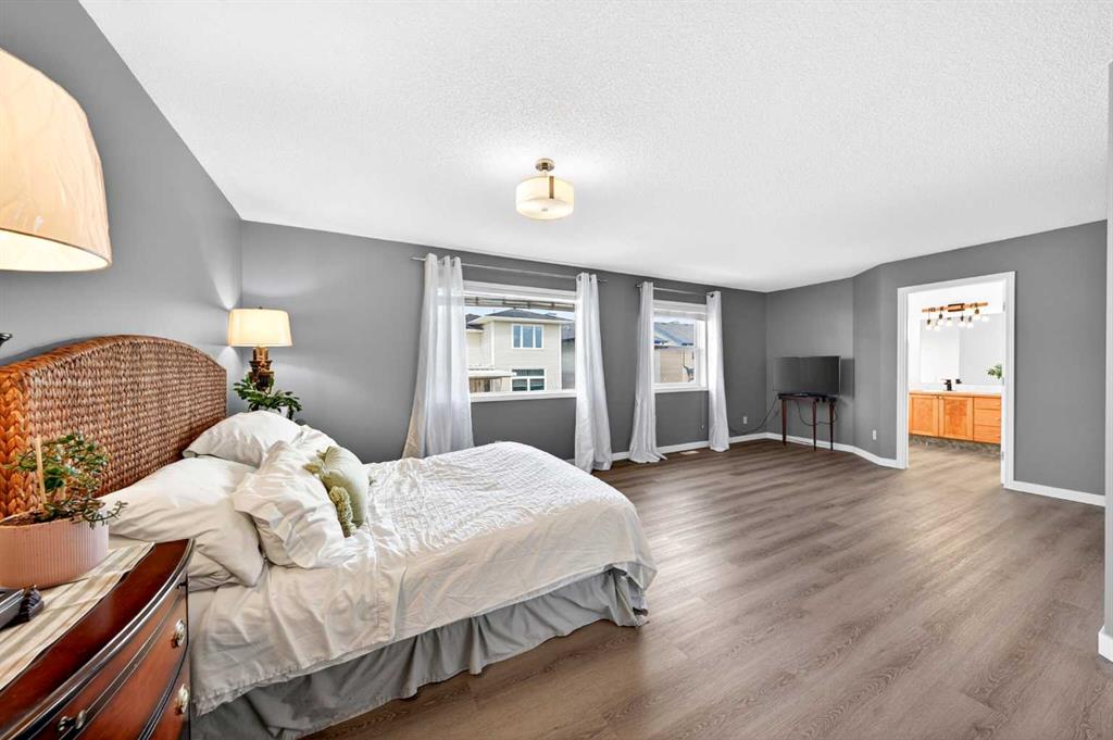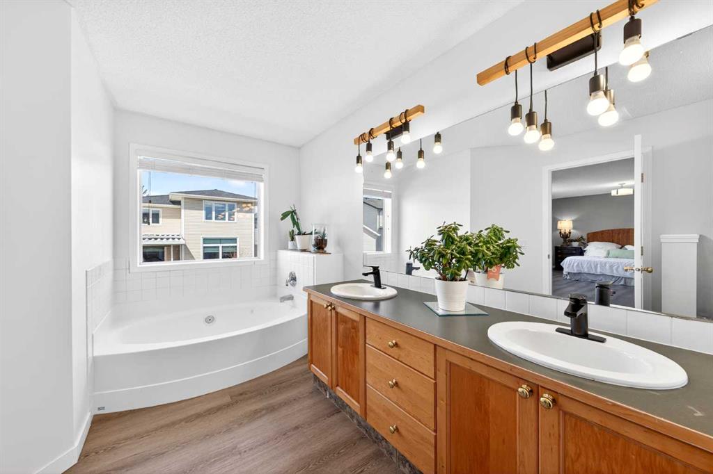 On the upper level, the spacious Primary bedroom provides a relaxing retreat with a walk-in closet and spa-inspired 5-piece ensuite featuring double vanity, soaker tub, and separate shower. Two additional well-sized bedrooms share a 4-piece bathroom.