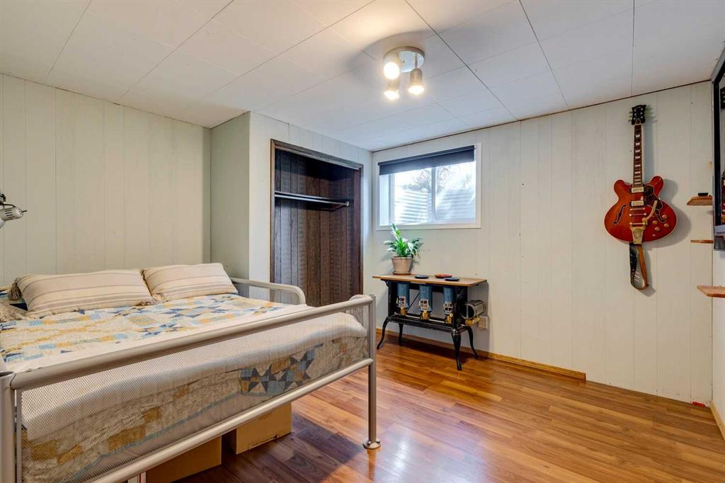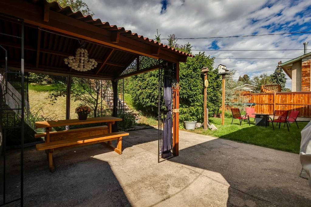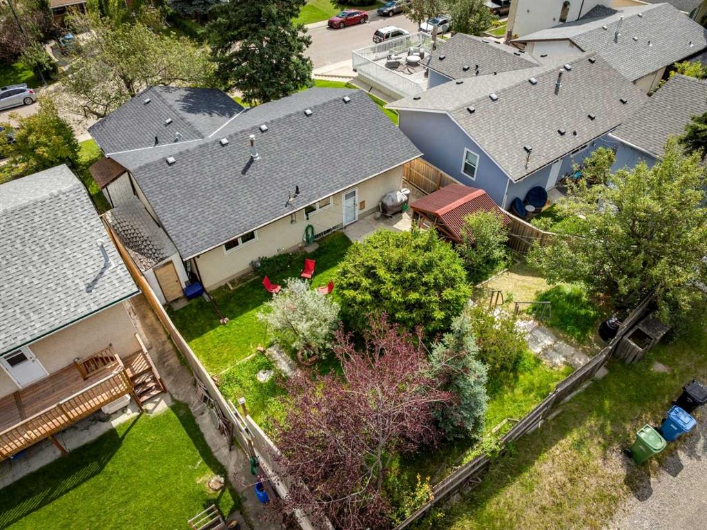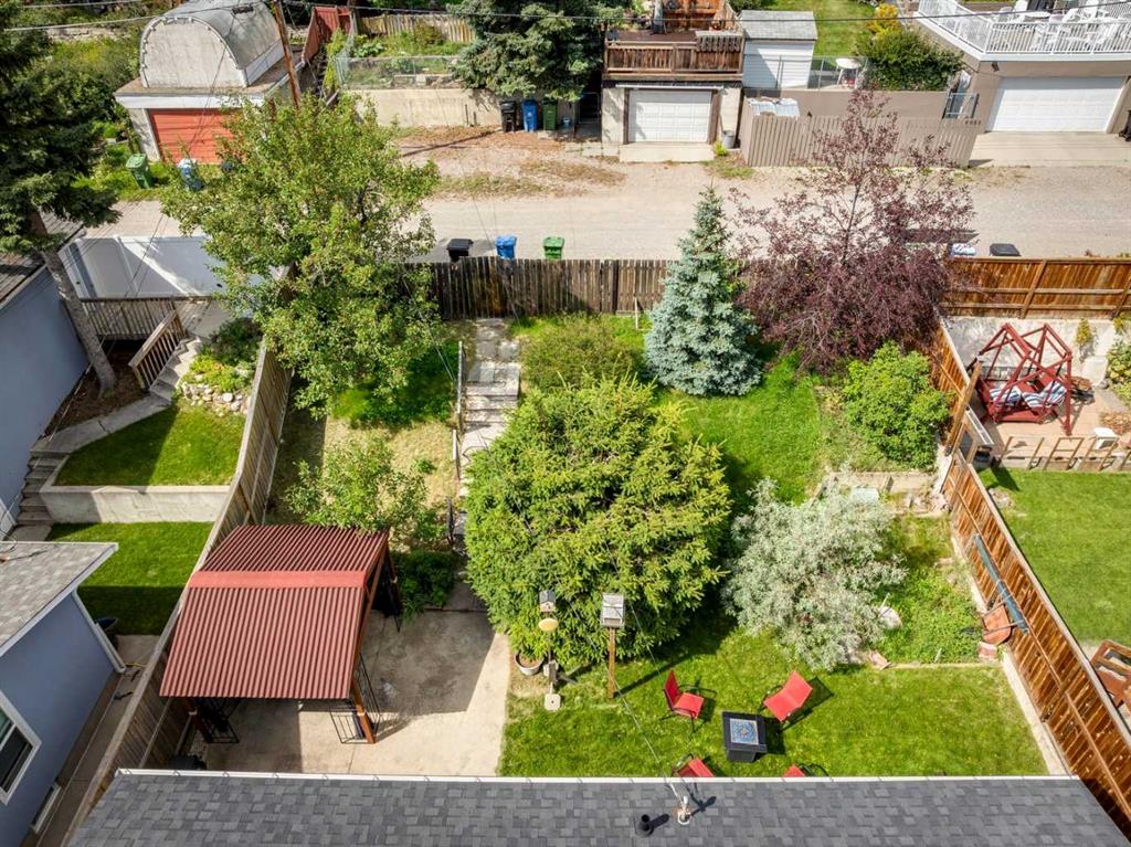 Situated on a quiet street and a short walk to the Nose Hill Park Nature Reserve underpass. With four bedrooms, Three Bathrooms and over 2,450 sq ft of total living space, this mostly original bungalow is ready for you to move in. Perched on a 50’ x 110’ lot this home offers the perfect balance of Original charm and modern potential. The main floor is over 1,217 sq ft and features three bright bedrooms, including a good sized primary with a mostly original 2-piece ensuite, and a second 4 pc mostly original bathroom. Other features include, original hardwood floors. updated windows, and roof (with hail resistant shingles). A Spacious and sunny kitchen, with room for a breakfast table. The fully developed mostly original 1237 sf lower level includes a 4th bedroom with legal egress and a functioning 3-piece bathroom. All that’s missing is your vision for updates. There is also a well maintained furnace (2010) newer hot water tank (2019) water softener (“as is” never used) and Central Vacuum. Step out back and find a private retreat filled with diverse mature trees, a 10′ x 10′ custom-built wood gazebo and two well sized storage sheds for your convenience.