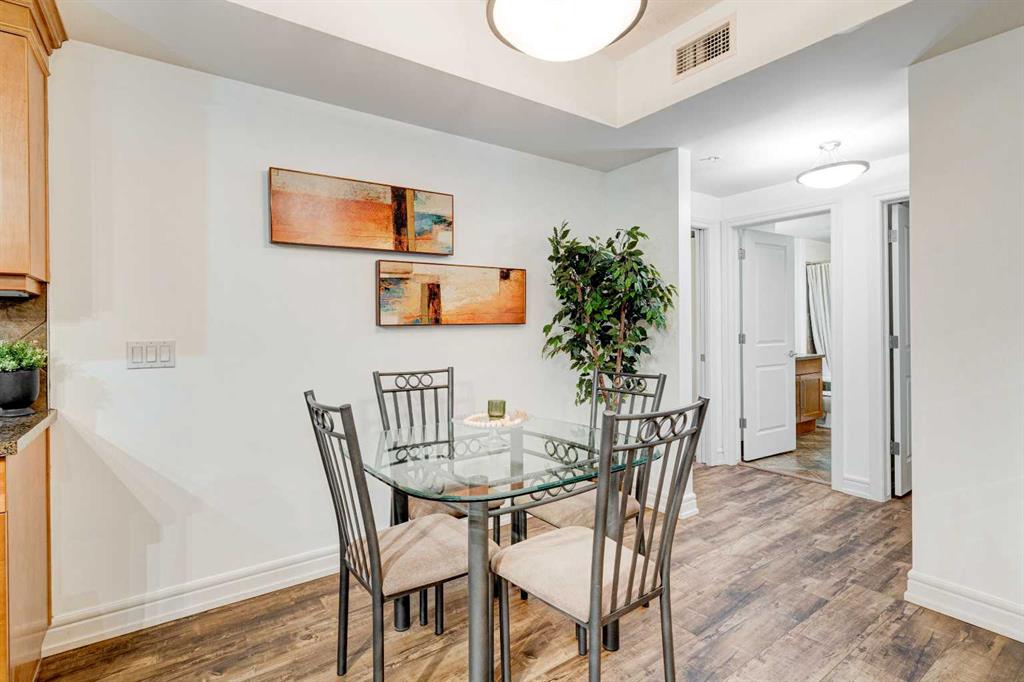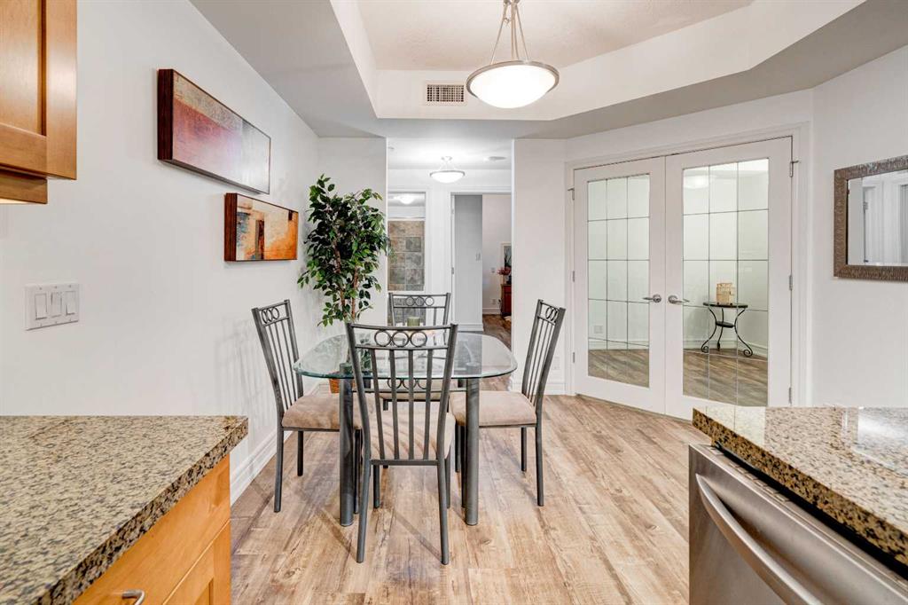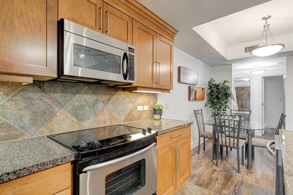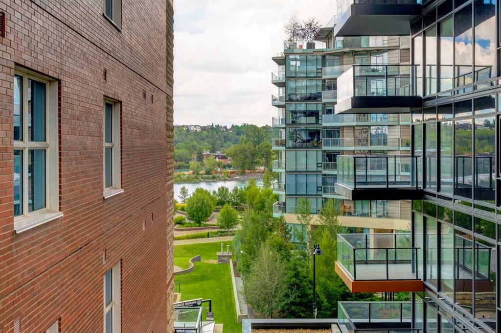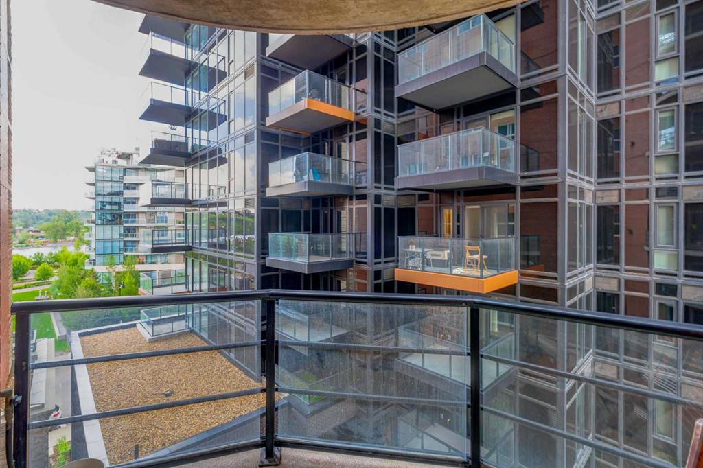 Sophisticated 1 bedroom + a den, 5th floor unit with downtown and river views. Ideally located in the heart of Eau Claire just one block from the Peace Bridge, Prince’s Island and the Bow River. This executive unit is stylishly designed with timeless finishes, central air conditioning and an open floor plan creating an airy ambience. Inspiring culinary exploration, the kitchen is the true hub of the home featuring granite countertops, stainless steel appliances, full-height cabinets and a full-sized centre island with a breakfast bar for casual eats. Gather over large meals or host guests in the adjacent dining room with unobstructed sightlines ensuring easy connectivity. Sit back and relax in front of the warm gas fireplace in the inviting living room or enjoy peaceful coffees on the balcony with east exposure for early morning sun. Downtown and river views provide the breathtaking backdrop to your summer barbeques and outdoor unwinding time. French doors lead to the den, perfect for guests or a home office. Retreat at the end of the day to the calming primary complete with access to the stylish 4-piece bathroom. Adding to your comfort and convenience are in-suite laundry, titled parking, a separate storage locker, a car wash and a full-time concierge. Truly an exceptional condo in an amenity-rich building that is an outdoor lover’s dream – walk or bike downtown, stroll along the river or visit the many shops, cafes and restaurants that this vibrant community has to offer. Close to the future green line and the new redevelopment site planned for the old market area. This outstanding location has it all! Condo fee includes ALL UTILITIES (except internet/TV).