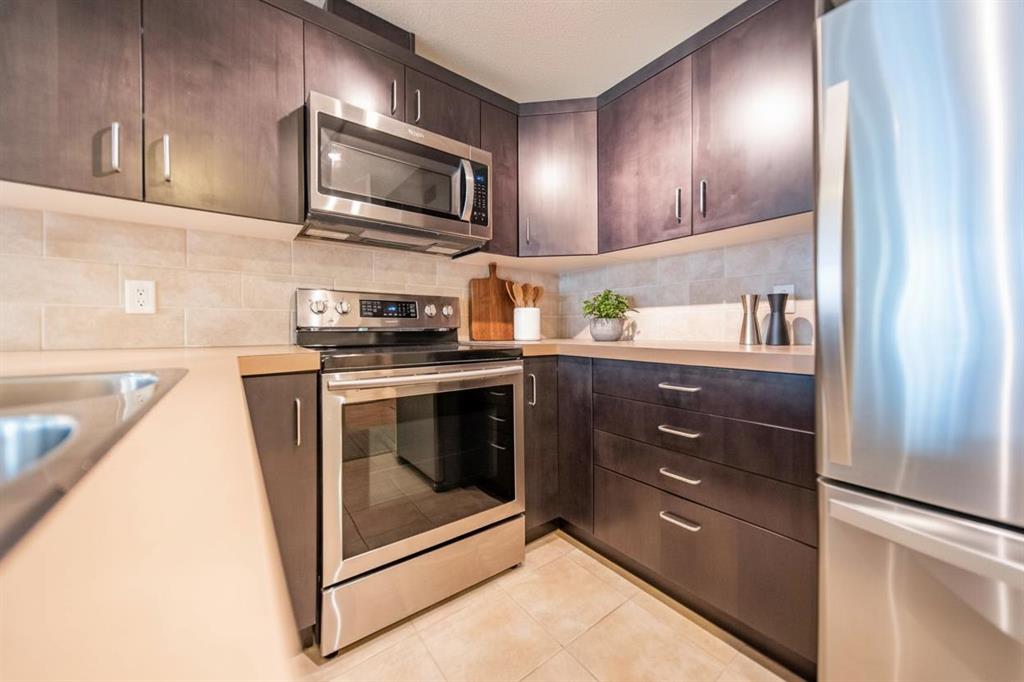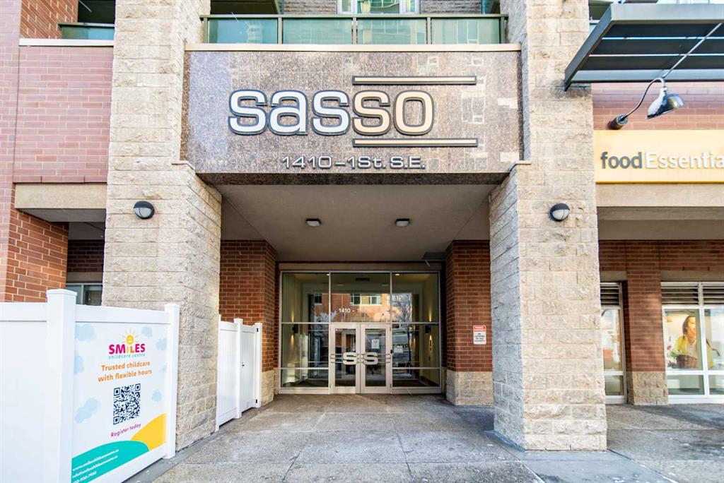 Welcome to this stylish 1-bedroom, 1-bathroom condo in the coveted Sasso building, offering sophisticated 18+ living with concierge and security. The open-concept layout showcases a contemporary kitchen with updated stainless steel appliances, seamlessly flowing into a bright living area. The walk-through closet features a convenient cheater door to the bathroom, combining function and style. Step out onto your private balcony and enjoy stunning downtown views, perfect for morning coffee or evening relaxation. Residents enjoy access to exceptional amenities including an extensive two-level gym, theatre room, and hot tub. Located within walking distance to restaurants, bars, shopping, and all the excitement of downtown, including the C-Train, BMO Centre, Cowboys Casino, and Saddledome, this condo offers the ultimate urban lifestyle.