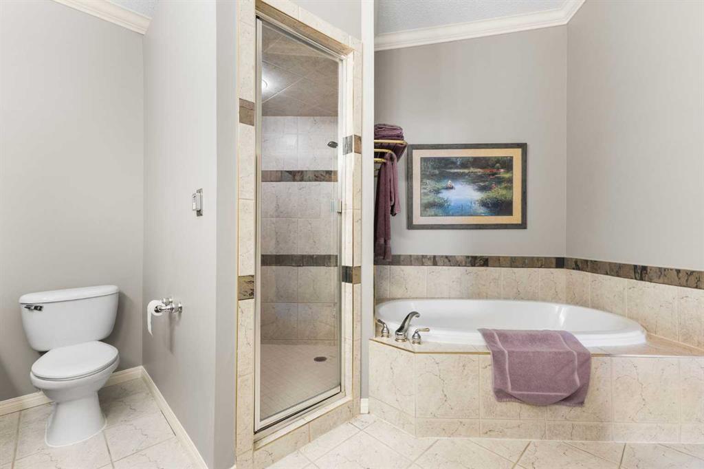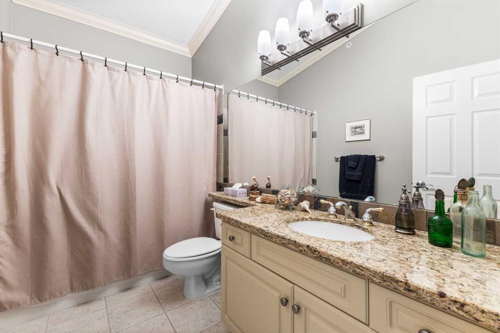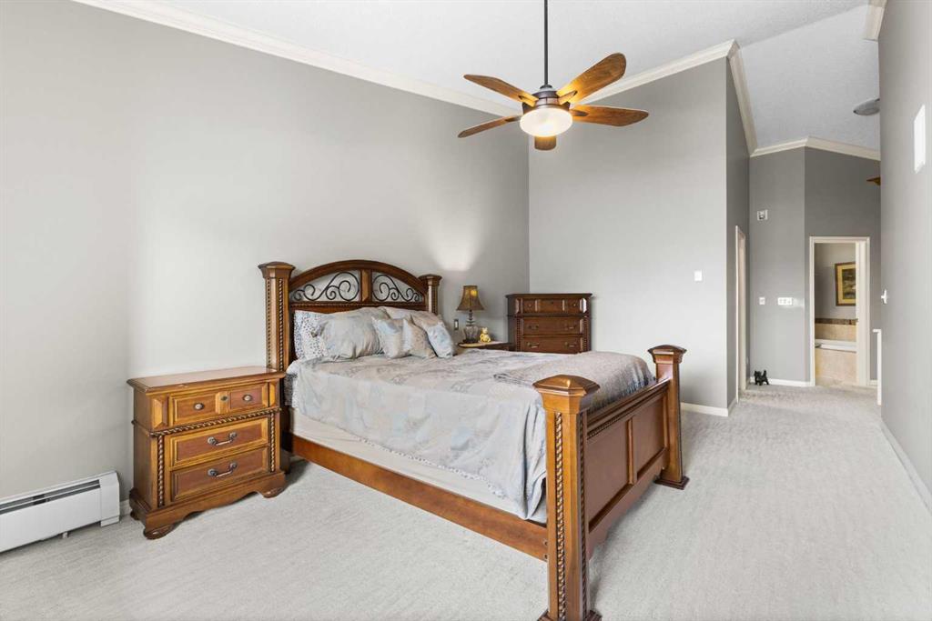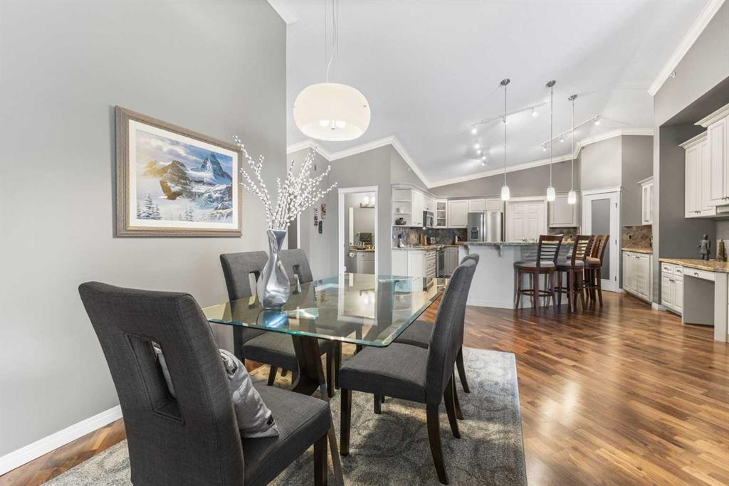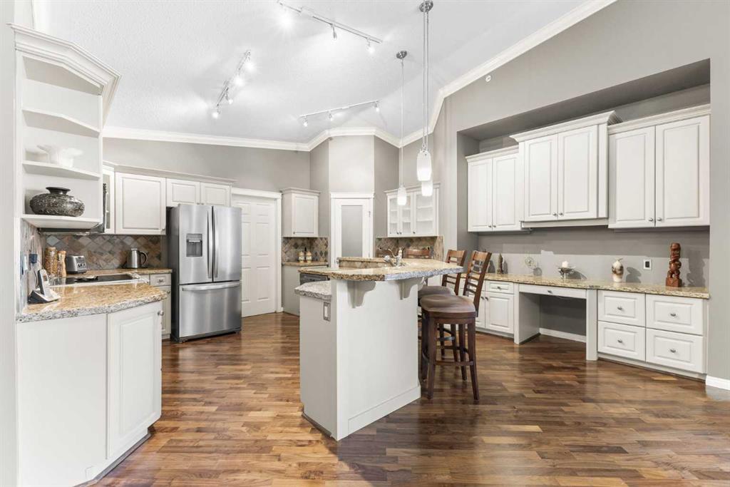 Expansive Top Floor End Unit with City and Downtown Views! This beautifully maintained 2-bedroom, 2.5-bath top floor end unit offers stunning city and downtown vistas, reflecting pride of ownership in every detail. Its open concept design showcases elegant hardwood flooring, vaulted ceilings, and crown moulding, with abundant natural light illuminating the space. The kitchen is tastefully appointed with granite countertops, an island/eating bar, and generous storage solutions including a walk-in pantry. Recent upgrades feature newer appliances, highlighted by a high-end Miele dishwasher. The adjacent dining area provides ample room for entertaining family and friends. The welcoming living room, complete with a feature fireplace, serves as an ideal gathering space for relaxation and socializing. The expansive primary bedroom is enhanced by built-in cabinetry and a custom walk-in closet crafted by California Closets. The private five-piece ensuite features dual sinks, a luxurious soaker tub, and a rejuvenating steam shower. Perfect for use as a home office, the second bedroom includes balcony access, two Murphy beds (one queen, one twin), a walk-in closet by California Closets, and its own private four-piece ensuite. Other notable features include in-suite laundry with additional storage, updated flooring installed in 2016, a Daikin air conditioning unit added in fall 2020, front entrance closet designed by California Closets, spacious deck offering panoramic city and downtown views, and three parking stalls—one titled, two leased—plus a dedicated storage space. This residence is perfectly situated just steps away from the Erlton-Stampede C-train station, the picturesque Elbow River pathways and close to several amenities, including Stampede Park, MNP Community & Sport Centre, the serene Reader Rock Gardens, schools, shopping, and is within walking distance to downtown.