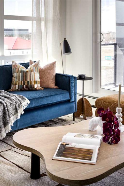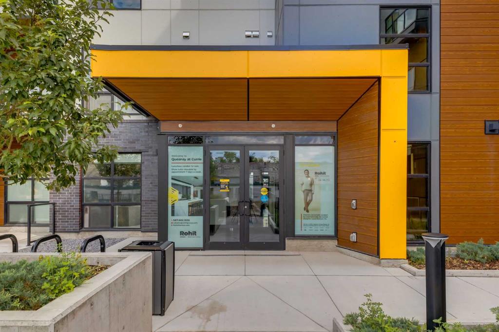 Discover the “Argento” floorplan by award-winning Rohit Homes—a bright and spacious 2-bedroom, 2-bathroom corner unit thoughtfully designed for comfort and style. Perfectly situated on the 5th floor of Quesnay at Currie Barracks, this home boasts soaring 9’ ceilings that create an airy, open feel while large windows fill the space with natural light. Featuring the bold and stylish Haute Contemporary color palette, the interior showcases a modern edge with sleek finishes and striking contrasts. The Argento offers high-end details throughout, including quartz countertops with a waterfall edge, a matching quartz backsplash, full-height cabinetry, a premium appliance package, bespoke light fixtures, and designer window coverings. The open-concept layout flows seamlessly between the kitchen, dining, and living areas, ideal for entertaining or simply enjoying everyday life. The primary suite includes a private ensuite for a touch of luxury, while the second bedroom and additional full bath provide comfort and flexibility for guests or a home office. Step outside to your ground-floor patio, extending your living space and offering a convenient connection to the outdoors. This pet-friendly and AIRBNB-approved building includes titled heated underground parking and plenty of visitor spaces. With its unbeatable location just minutes from downtown, Mount Royal University, and the vibrant communities of 17th Ave and Marda Loop, the Argento floorplan is perfect for downsizers or anyone looking for a stylish, low-maintenance home. Limited units are available—don’t miss your chance to make this striking residence yours! **Photos are taken from existing building of the same models. Not of the exact unit **
