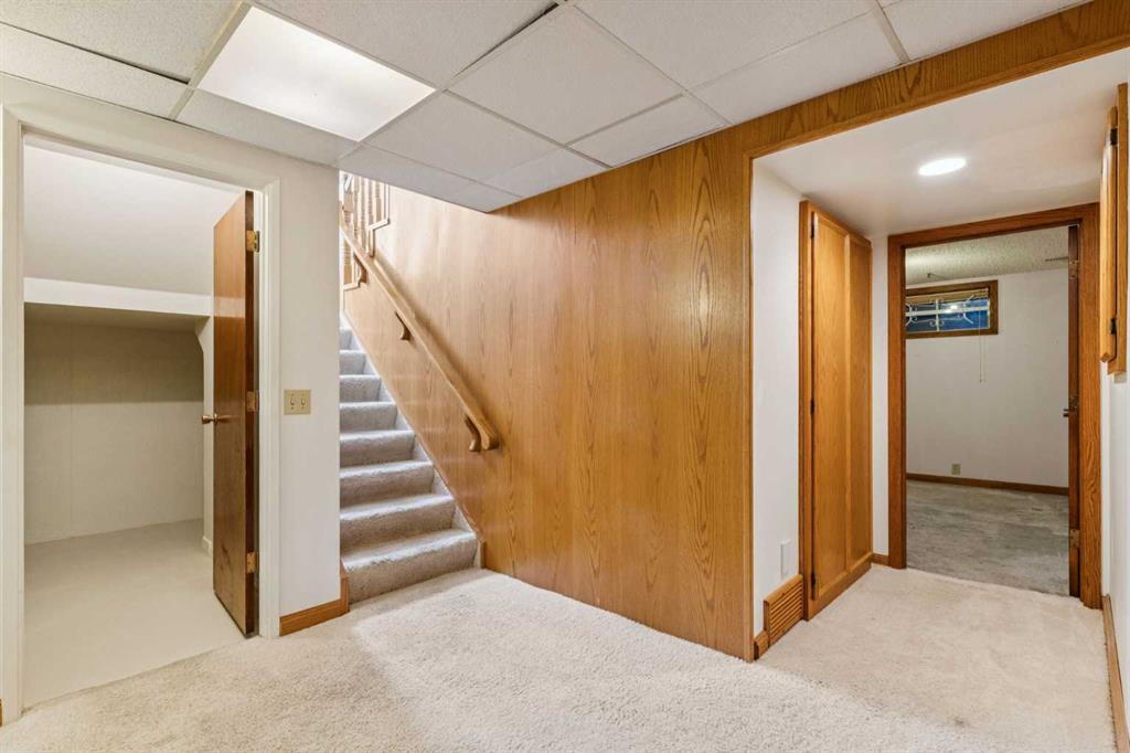 The main floor also offers a sizeable primary bedroom with its own 2-piece ensuite, two additional bedrooms, and a 4-piece bathroom. Downstairs, the fully developed lower level boasts another expansive family room with a second wood-burning fireplace, a 3-piece bath, a large laundry room with a sink, and extensive storage. Three additional rooms provide flexible options—ideal for home offices, hobby spaces, or potential bedrooms with updated egress windows. Outside, you’ll appreciate the oversized double garage featuring an 8’ door, heated workshop area, and full insulation and drywall. The location is exceptional—just a short walk to trails leading to the Dalhousie LRT, and minutes from schools, playgrounds, Market Mall, Shaganappi Village, Northland Village Mall, the University of Calgary, Foothills Medical Centre, and downtown.