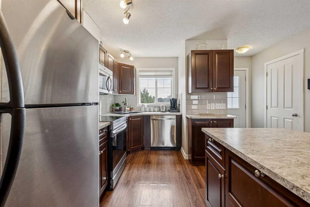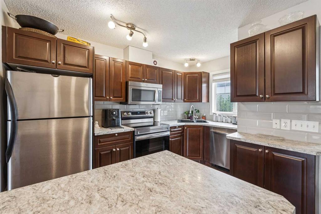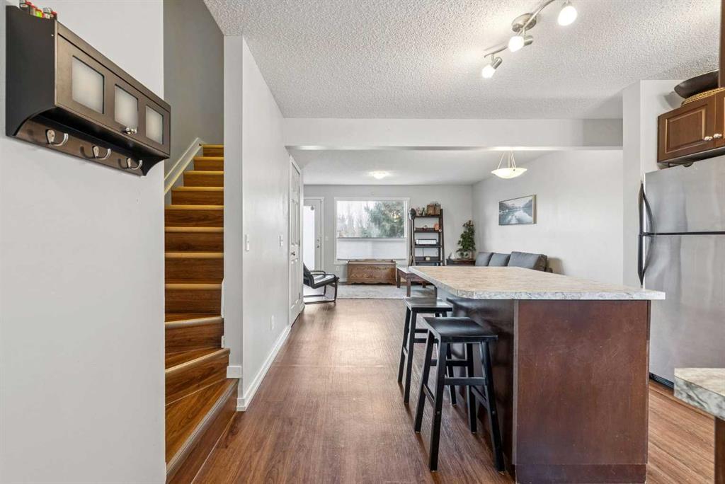 Discover Townhouse 504; A modern, move in ready home in one of Southwest Airdrie’s favourite neighbourhoods. Here are 5 things we LOVE about this home (and we’re sure you will too): 1. A FLOOR PLAN MADE FOR REAL LIFE: As homes across the province trend smaller and smaller Townhouse 504 is a breath of fresh air! Offering nearly 1100 SqFt of above grade, refined living space, 3 bedrooms, 1.5 bathrooms this is a full-sized home! The inviting main floor is ideally set up for entertaining with a large, open kitchen and nicely proportioned great room. Upstairs find three good sized bedrooms with a shared 4-piece bathroom. The basement has been nicely developed with a wide open rec-room/flex space currently used as a bedroom but would make an awesome media room, gym or home office with a massive adjacent storage/laundry/utility room. 2. A CONVENIENT SOUTHWEST COMMUNITY: Located in prime Southwest Airdrie, you are within walking distance to three schools: Ralph McCall School (K-4), C.W. Perry School (5-9) and Our Lady Queen of Peace (Catholic 1-9) with easy access to numerous shops, restaurants and professional services along 8th Street SW. 3. THAT MAIN FLOOR: This is the definition of open concept living anchored by a large, functional kitchen featuring a large island with breakfast bar, tons of work/storage space and a large window over the sink. The dining/living area is spacious and offers options for furniture placement depending on your needs and lifestyle while leading outside to your private patio. 4. LOCATION IN THE COMPLEX: Tucked away in the back row with no direct neighbours behind and visitor parking directly across from your home. You also have direct access to Monklands Soccer Park just a few steps from your door (a bonus for dog owners) 5. A WELL MAINTAINED AND MANAGED COMPLEX: Sage is a well-run townhouse/condo complex completed 2004/2005. Residents enjoy very reasonable condo fees ($347/month), beautifully maintained grounds and ample visitor parking throughout the complex in a prime Sagewood location.
