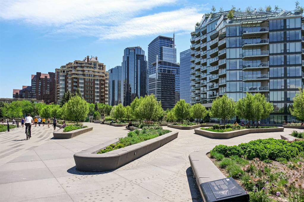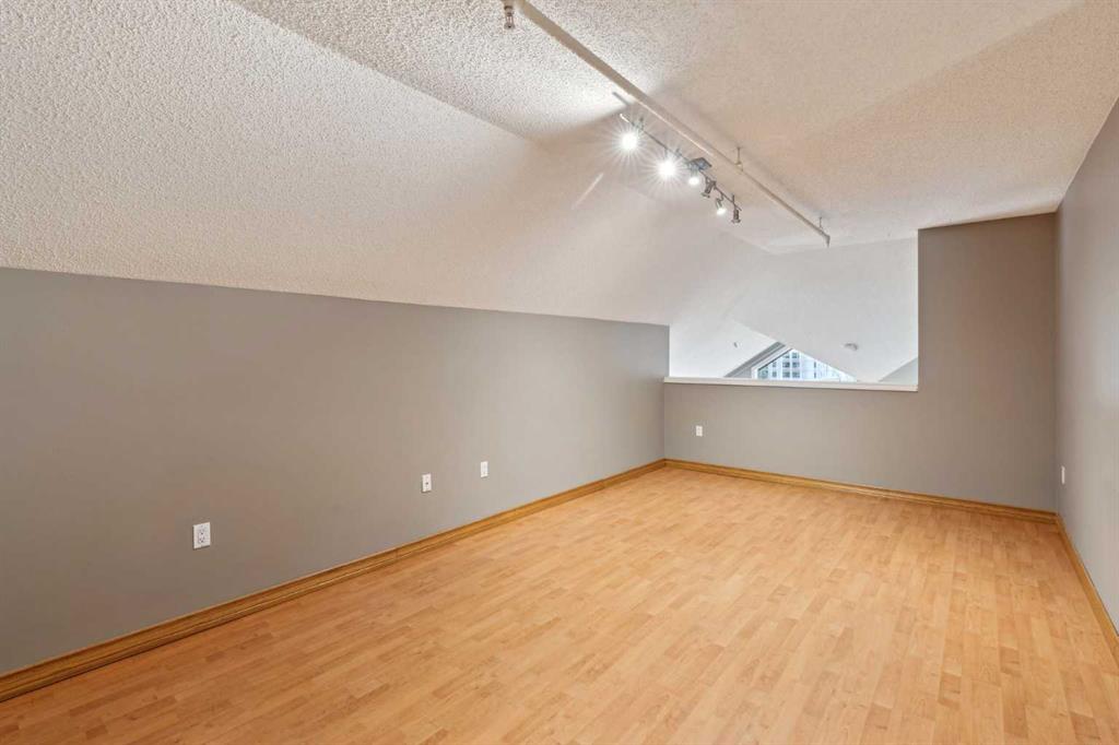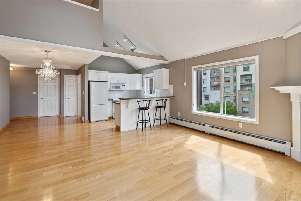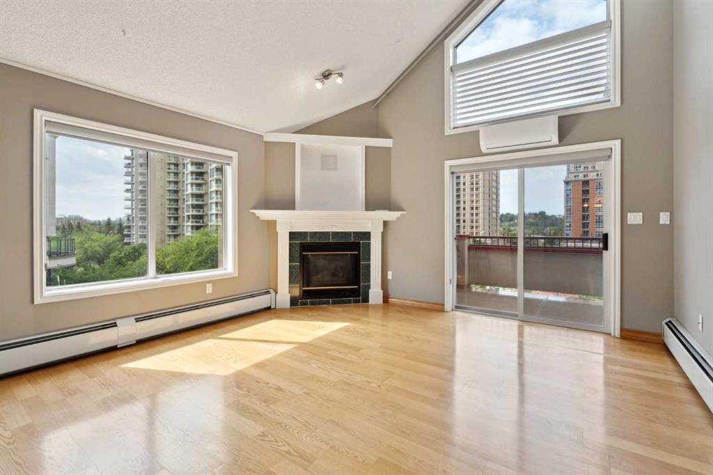 Exceptional value for this spectacular Top-Floor Penthouse in the Pavilions of Eau Claire with unparalleled prime northwest corner location! Outstanding condominium home with 2 UNDERGROUND TITLED PARKING STALLS, air conditioning, loft, soaring-high cathedral ceilings, many large bright corner windows, plenty of natural light and thoughtfully designed open-concept layout that seamlessly connects the kitchen, dining and living areas making it perfect for entertaining or home relaxation! Beautifully appointed and upgraded condo with hardwood & tile floors, granite counter-tops throughout, custom privatized Hunter-Douglas blinds with black-out features and both bathrooms have been completely renovated. Large northwest corner balcony with BBQ gas-line, brand new air conditioning unit, partial views of Peace Bridge and handy secure storage room. Spacious primary bedroom has large bay window, 3 pce ensuite bathroom with rain shower, walk-in closet and guest bedroom is conveniently located next to 4 pce main bathroom. Enjoy the corner gas fireplace and large versatile loft overlooking the living area that can be used as a family or recreation room! Comes with large separate laundry room with storage, European washer/dryer combo, under-stairs storage and choice parking stalls #80, #134(with storage cage) both conveniently located next to the elevator! This special home boasts the largest floor plan, finest location and best parking stalls in the building!! The ever popular Pavilions of Eau Claire offers a secure entrance lobby with seating area, main floor party/billiard room, secure underground titled parking & bike storage and visitor parking on the south side of the building. Exceptional heart of Eau Claire location nestled along the south bank of the Bow River, close to the world-class pathway system, beautiful Prince’s Island Park and walking paths, close to great restaurants and fine dining, Buchanan’s chop house & whisky bar is across the street, half-block to the outstanding Alforno bakery & cafe and just a short walk to Light Rail Transit and transportation, Peace Bridge, Kensington shops, Safeway and Calgary’s vibrant city center. Enjoy downtown urban living at it’s finest!