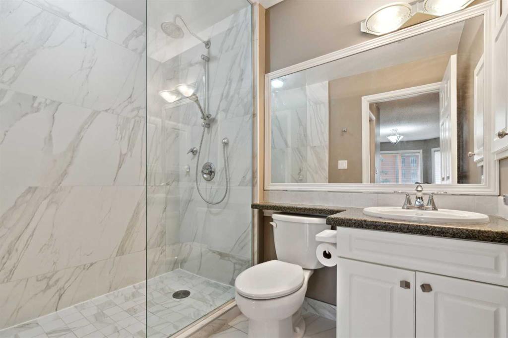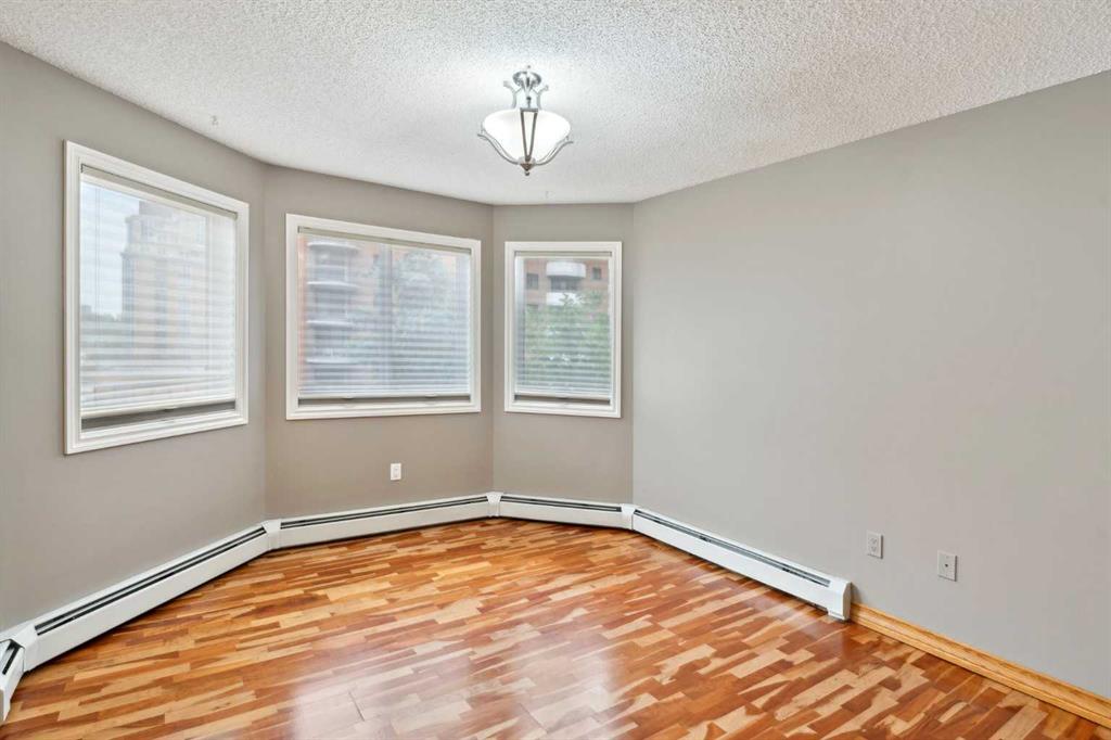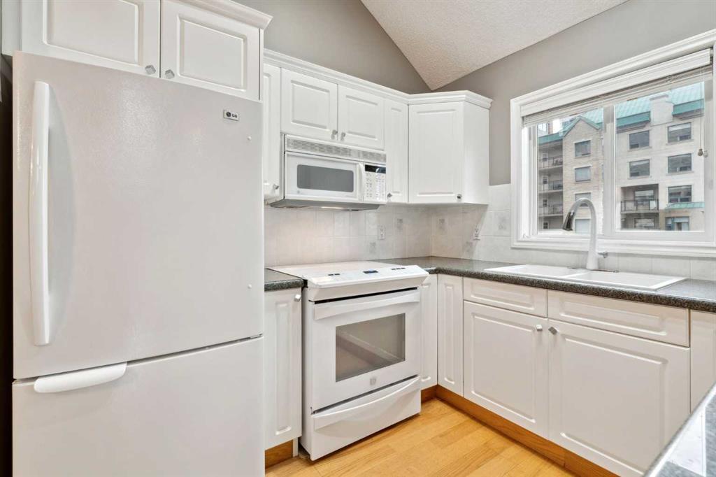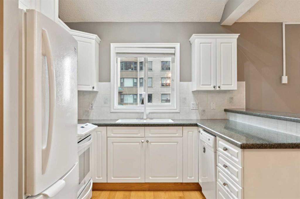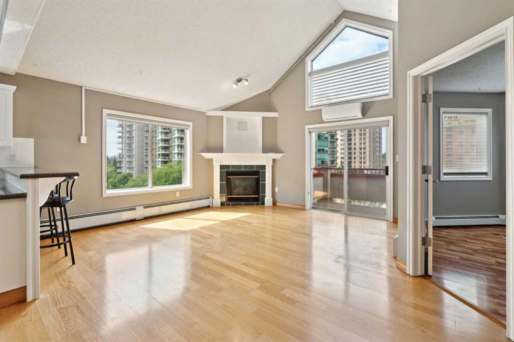Exceptional value for this spectacular Top-Floor Penthouse in the Pavilions of Eau Claire with unparalleled prime northwest corner location! Outstanding condominium home with 2 UNDERGROUND TITLED PARKING STALLS, air conditioning, loft, soaring-high cathedral ceilings, many large bright corner windows, plenty of natural light and thoughtfully designed open-concept layout that seamlessly connects the kitchen, dining and living areas making it perfect for entertaining or home relaxation! Beautifully appointed and upgraded condo with hardwood & tile floors, granite counter-tops throughout, custom privatized Hunter-Douglas blinds with black-out features and both bathrooms have been completely renovated. Large northwest corner balcony with BBQ gas-line, brand new air conditioning unit, partial views of Peace Bridge and handy secure storage room. Spacious primary bedroom has large bay window, 3 pce ensuite bathroom with rain shower, walk-in closet and guest bedroom is conveniently located next to 4 pce main bathroom. Enjoy the corner gas fireplace and large versatile loft overlooking the living area that can be used as a family or recreation room! Comes with large separate laundry room with storage, European washer/dryer combo, under-stairs storage and choice parking stalls #80, #134(with storage cage) both conveniently located next to the elevator! This special home boasts the largest floor plan, finest location and best parking stalls in the building!! The ever popular Pavilions of Eau Claire offers a secure entrance lobby with seating area, main floor party/billiard room, secure underground titled parking & bike storage and visitor parking on the south side of the building. Exceptional heart of Eau Claire location nestled along the south bank of the Bow River, close to the world-class pathway system, beautiful Prince’s Island Park and walking paths, close to great restaurants and fine dining, Buchanan’s chop house & whisky bar is across the street, half-block to the outstanding Alforno bakery & cafe and just a short walk to Light Rail Transit and transportation, Peace Bridge, Kensington shops, Safeway and Calgary’s vibrant city center. Enjoy downtown urban living at it’s finest!