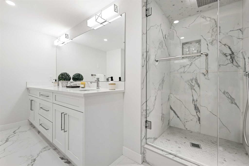 The spacious, highly functional kitchen impresses with generous storage, quartz counters, a sligranit double-bowl sink, an island, and updated appliances including an induction stove. The king-sized primary suite is filled with natural light and features a generous closet and a beautiful 4-piece ensuite with double vanity, walk-in shower, and standalone tub. Primary suite is prepped for a TV with a cable & power outlet on the wall. The second bedroom easily fits a queen and has a large closet, with a 3-piece bath conveniently located across the hall.