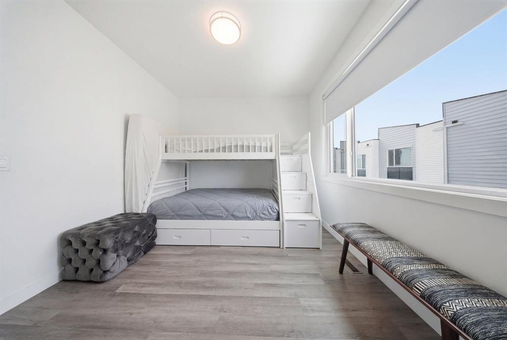 Upstairs, you’ll find a bright and open-concept living space filled with natural light from large windows. The inviting living room is perfect for entertaining, while the modern kitchen showcases sleek stainless steel appliances and ample counter space. This level also includes a powder room, in-suite laundry, and access to a private balcony—ideal for summer BBQs or enjoying your morning coffee.
