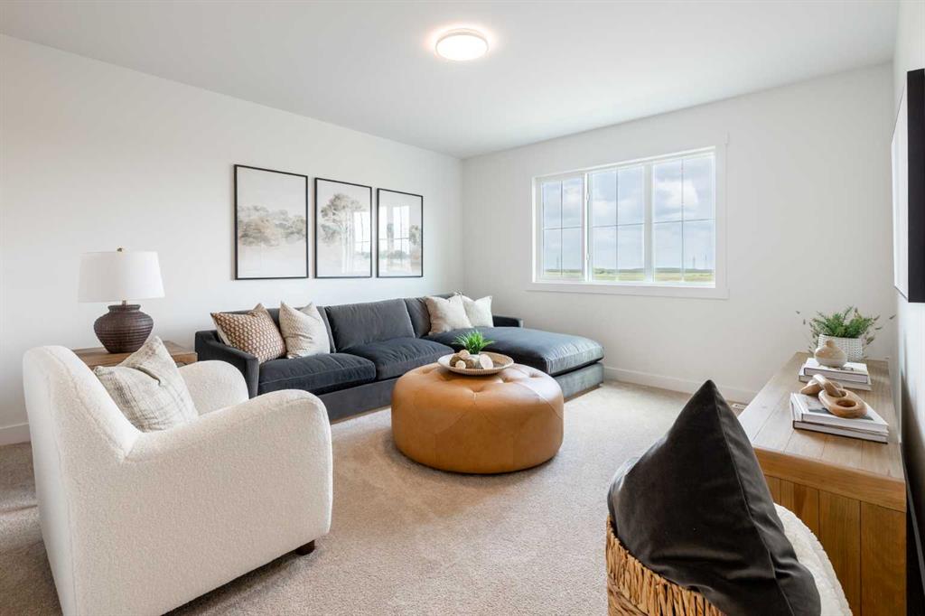 Located in The Ranch, one of Strathmore’s most sought-after new communities, residents will love the small-town charm, scenic surroundings, and quick access to schools, shopping, and parks. Experience the perfect blend of style, space, and serenity with the Jayne by Akash Homes. This thoughtfully designed 1,939 sq ft home offers 3 bedrooms, 2.5 bathrooms, and an open-concept layout that’s perfect for growing families. The main floor features 9’ ceilings, a spacious kitchen with quartz countertops, a walk-through pantry, and a central island ideal for entertaining. Upstairs, enjoy the convenience of second-floor laundry, a generous bonus room, and a luxurious primary suite with a walk-in closet and ensuite. **PLEASE NOTE** PICTURES ARE OF SHOW HOME; ACTUAL HOME, PLANS, FIXTURES, AND FINISHES MAY VARY AND ARE SUBJECT TO AVAILABILITY/CHANGES. HOME IS UNDER CONSTRUCTION.
