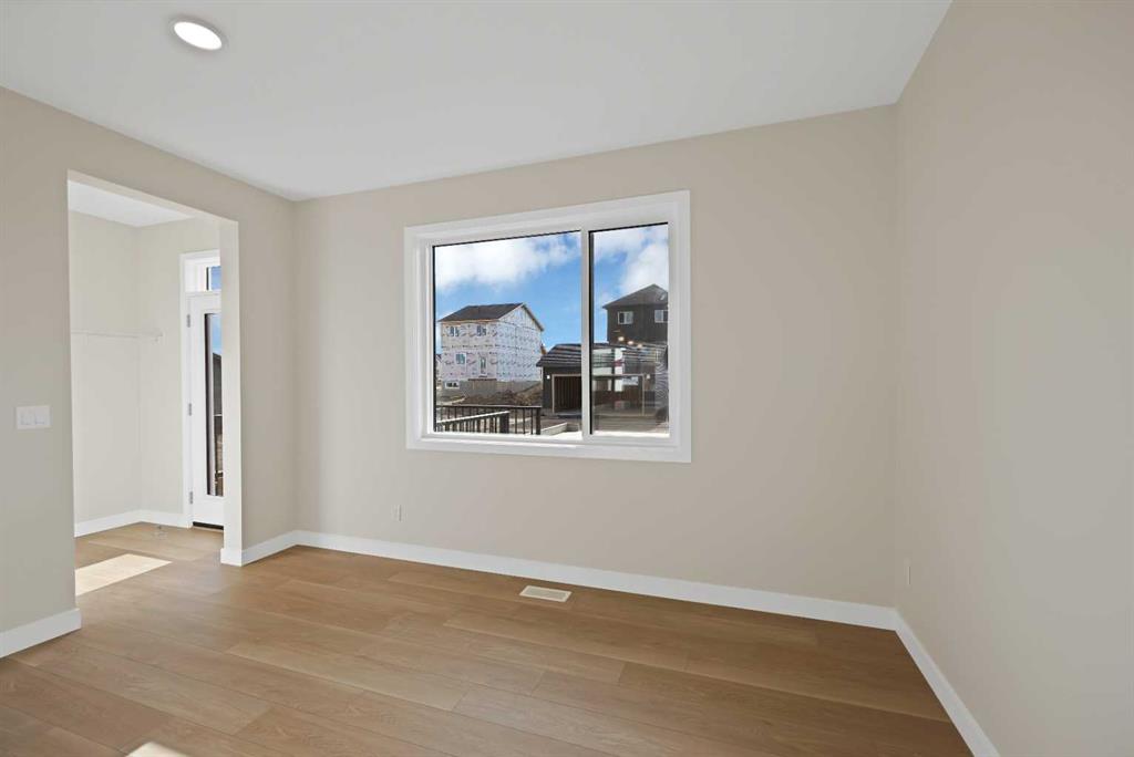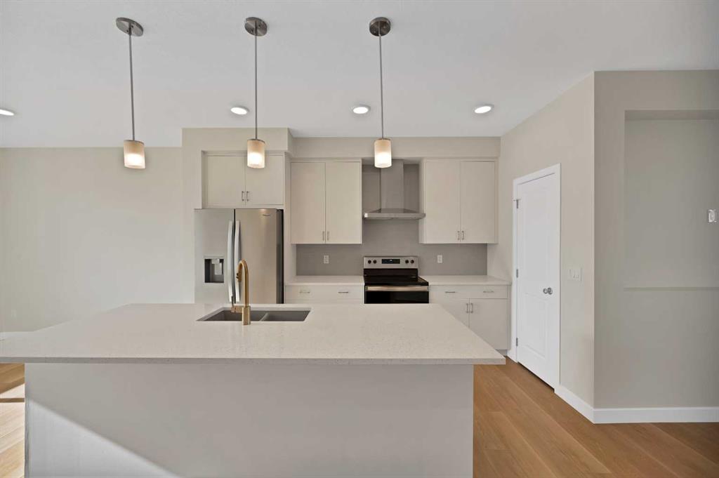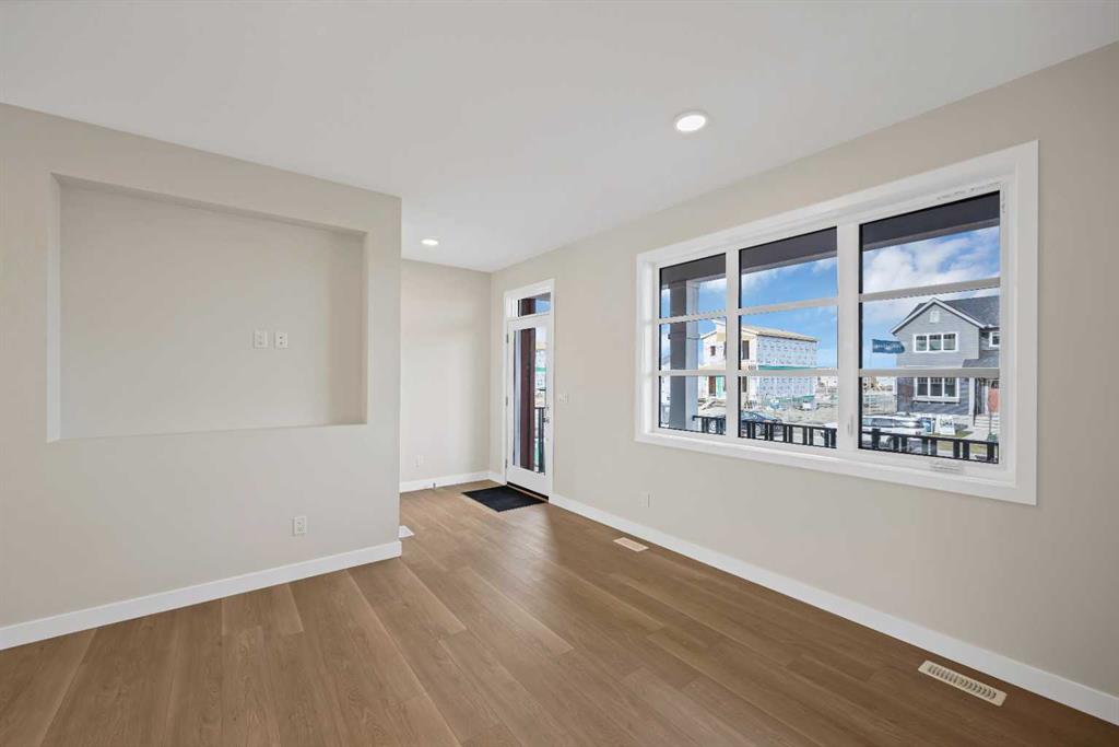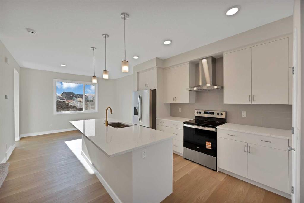 Introducing this beautiful QUICK POSSESSION semi-detached home in Harmony, expertly built by Homes by AVI, offering 1,524 sq. ft. of modern and functional living space. Thoughtfully designed, this home features 3 spacious bedrooms, 2.5 bathrooms, a large rear deck, a front porch, and a concrete parking pad. The main floor welcomes you with a bright, open-concept layout — a generous living room and a spacious kitchen ideal for entertaining, complete with high-end finishes throughout. Step outside to the rear deck, perfect for summer BBQs and outdoor gatherings. Upstairs, the primary suite includes a walk-in closet and a 3-piece ensuite, while the additional two bedrooms share a 4-piece bathroom and a convenient laundry area. The basement offers excellent potential for future development with a separate side entrance, 9-ft ceilings, 3-piece rough-in, and an extra window for added light. Nestled in the vibrant lake community of Harmony, surrounded by nature trails, parks, and upcoming amenities, this move-in-ready home perfectly blends style, comfort, and lasting quality.