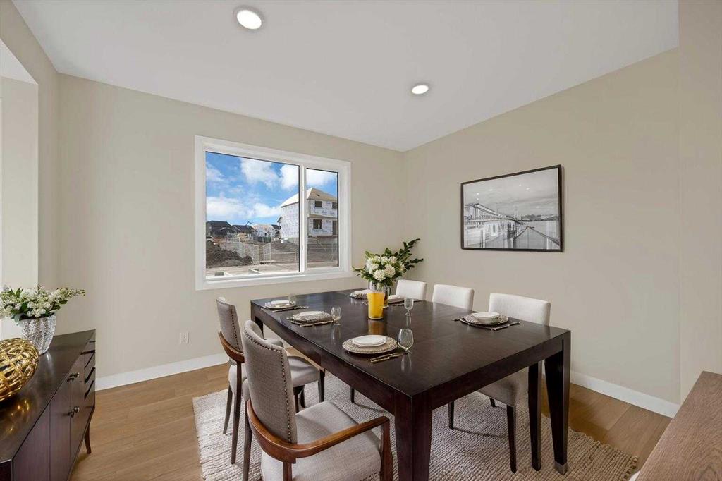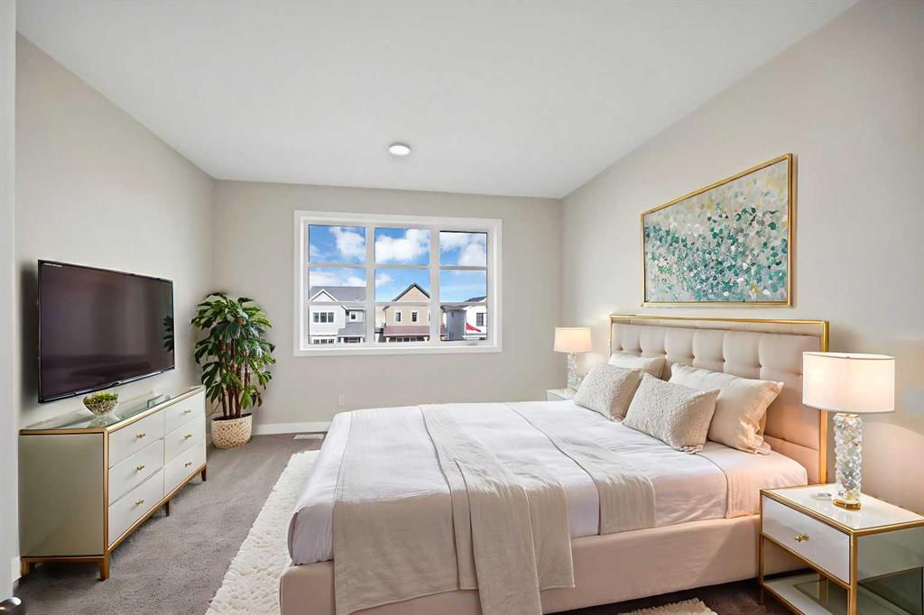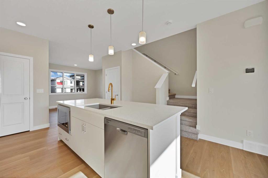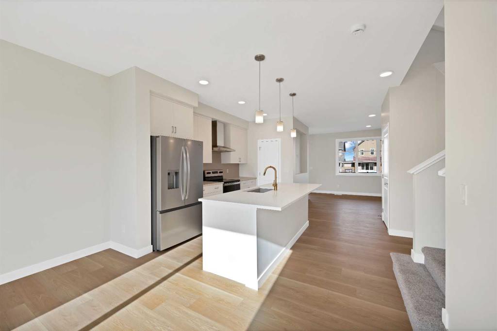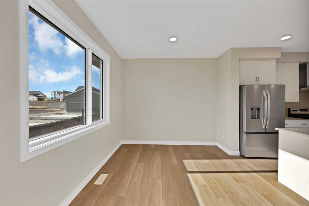 Introducing this beautiful QUICK POSSESSION semi-detached home in Harmony, expertly built by Homes by AVI, offering 1,524 sq. ft. of modern and functional living space. Thoughtfully designed, this home features 3 spacious bedrooms, 2.5 bathrooms, a large rear deck, a front porch, and a concrete parking pad. The main floor welcomes you with a bright, open-concept layout — a generous living room and a spacious kitchen ideal for entertaining, complete with high-end finishes throughout. Step outside to the rear deck, perfect for summer BBQs and outdoor gatherings. Upstairs, the primary suite includes a walk-in closet and a 3-piece ensuite, while the additional two bedrooms share a 4-piece bathroom and a convenient laundry area. The basement offers excellent potential for future development with a separate side entrance, 9-ft ceilings, 3-piece rough-in, and an extra window for added light. Nestled in the vibrant lake community of Harmony, surrounded by nature trails, parks, and upcoming amenities, this move-in-ready home perfectly blends style, comfort, and lasting quality.
