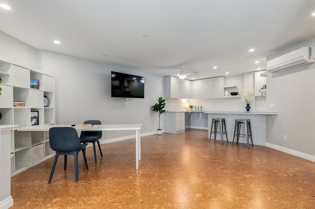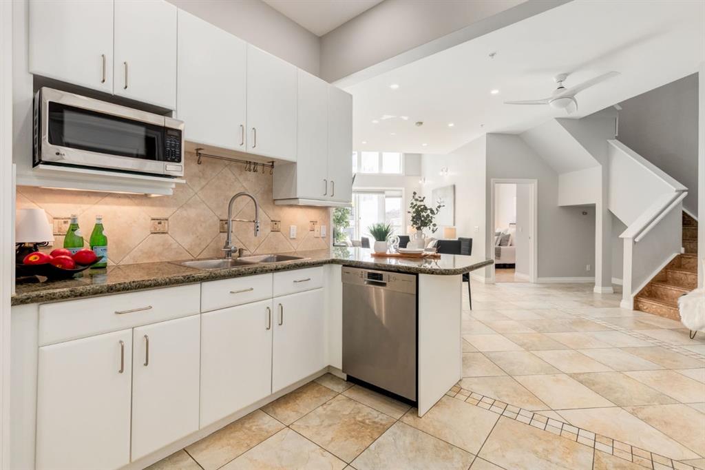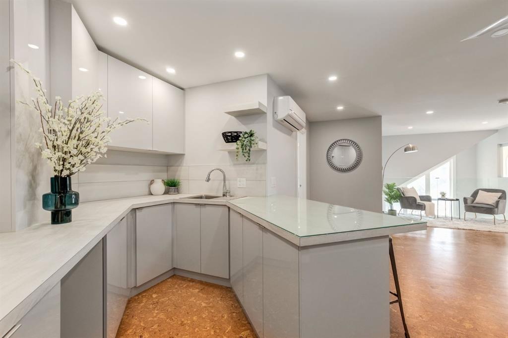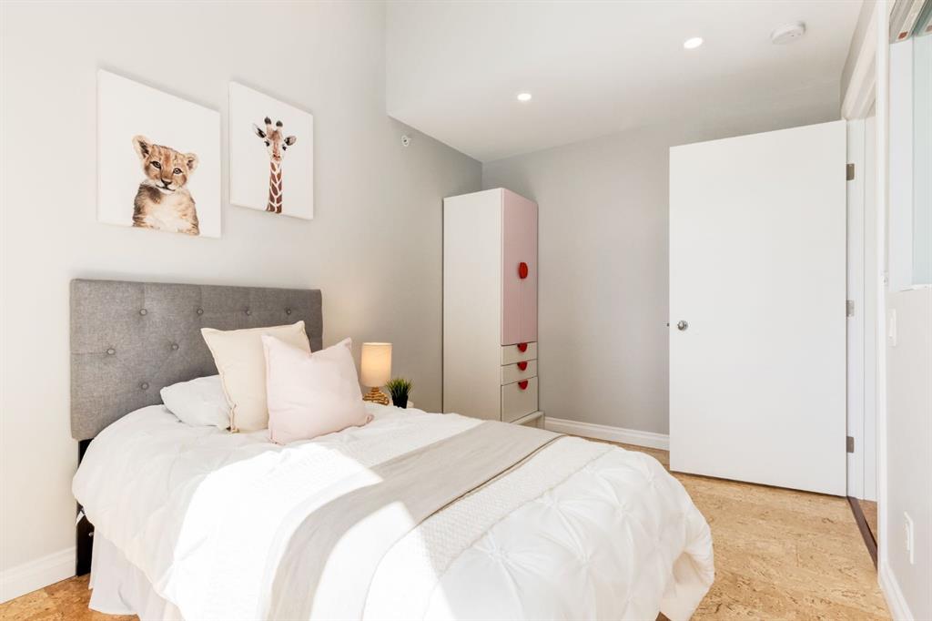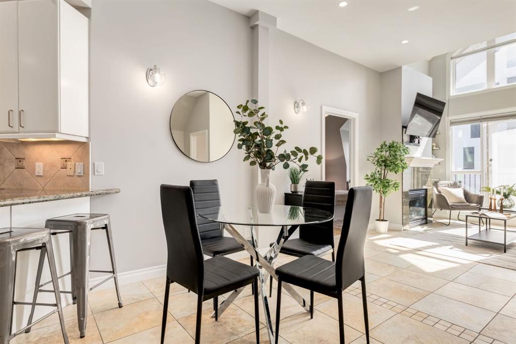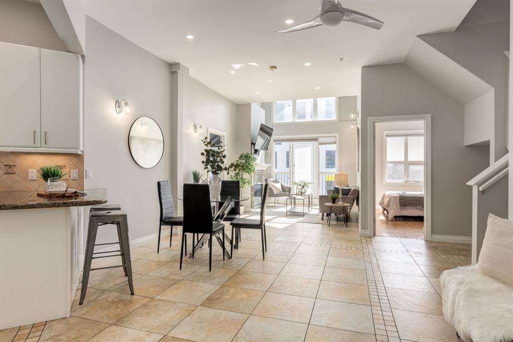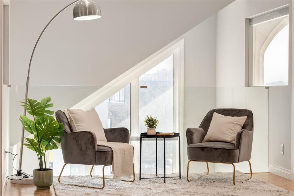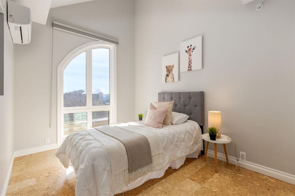 This spectacular, one of a kind four-bedroom penthouse loft offers unparalleled luxury lifestyle in trendy Mission, offers 4 bedrooms, 1,791sqft of space, the feel of a large two-storey home, and an unbelievably low condo fee. This crown jewel, top floor home showcases soaring 19ft vaulted ceilings, three full bathrooms, air conditioning, is flooded with natural light through enormous south facing windows and has the character and charm that is hard to find in today’s cookie-cutter world. Located just steps from the Elbow River, Stampede Park, MNP Center, transit, and all the amenities downtown and 17th Ave have to offer, this unique home is an unforgettable masterpiece. As you enter, you are greeted by a sprawling front entryway with a large coat closet, and room for bench seating. The entryway leads to your expansive, open-concept living space that showcases massive south facing windows, and boasts 10-foot ceilings with a 19ft vault over the living room. The stylish kitchen features granite countertops, bar seating, stainless steel appliances, and timeless white cabinetry. Just off the kitchen, your dining space flows perfectly with room to host family and friends. Your eye will be naturally drawn to your impressive living room with a striking gas fireplace with an elegant tile surround and classic, white mantle. The living room is drenched with natural light through vast windows that reach up to the vaulted ceiling. Step outside onto your south facing balcony that comes complete with natural gas and provides views of the river valley and Stampede Park. The main floor showcases your sprawling primary suite with vaulted ceilings, room for king-sized furniture and a designated seating nook. The primary bedroom has two large walk-in closets, and an enormous ensuite bathroom that features a large soaker tub and stand-up shower. The main floor also has a large second bedroom with warm cork flooring and is completed by a 4-piece bathroom with granite countertops, and laundry. Upstairs has been completely re-imagined and renovated in 2019, providing a one-of-a-kind layout, and extra square footage. The upper level is dripping with elegance and includes two additional large bedrooms, and a quaint sitting area overlooking the Elbow River. The upper-level features warm cork flooring, and a bonus space that is perfect for crafts, playing, work, or as a secondary media space. The upper level also boasts a sprawling kitchenette that provides can be used as a bar space, a secondary kitchen, or for your creative business endeavours. The upper level is finished by a beautiful 4-piece bathroom with dual vanities,and a sophisticated stand-up shower with elegant niche and stunning white tile. This masterfully designed home has the space and feel to provide an incredible home for your family while still enjoying the benefits of inner-city living. Featuring A/C throughout, a separate storage unit, and the feel of a detached home, this stunning penthouse is a one-of-a-kind opportunity.