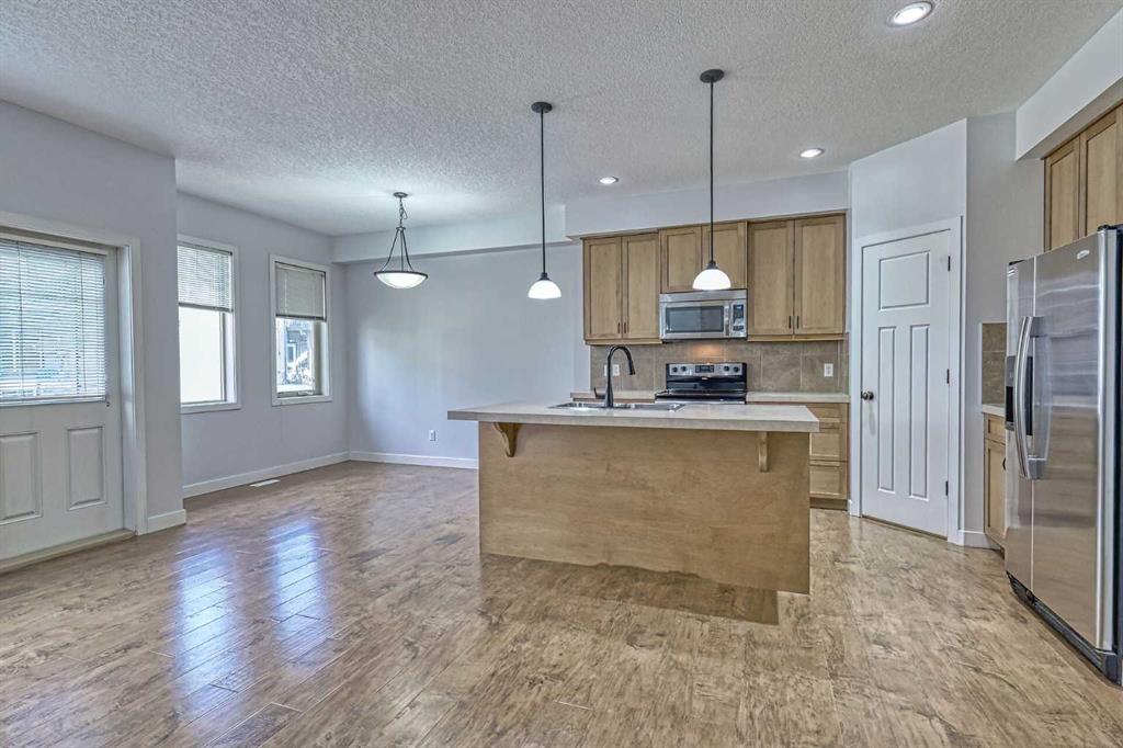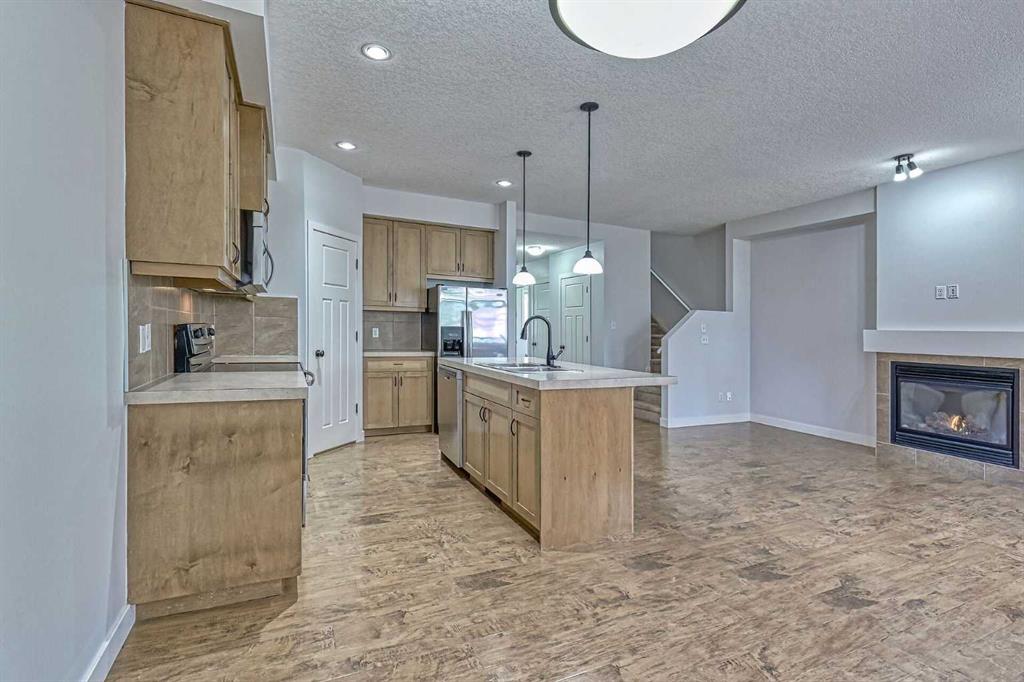 WOW—THIS LOCATION CAN’T BE BEAT! This beautifully maintained 3 bed, 3 bath townhouse is completely move-in ready (quick possession available) and offers the perfect blend of comfort, convenience, and style. Located next to the COCHRANE GOLF COURSE – with DIRECT walk access to the RESTAURANT and MAIN CLUB HOUSE. The main floor welcomes you with an open-concept layout ideal for entertaining. A bright foyer features a handy 2-piece powder room and its closet for coats and shoes. A spacious living room with a warm gas fireplace sets the tone for cozy evenings at home. The kitchen is designed for function and flow, offering abundant cabinetry, a walk-in pantry, breakfast bar seating for four, and all appliances included. The dining area opens to freshly stained back deck with natural gas hookup, perfect for summer BBQs. Upstairs, the layout shines with three generous bedrooms, a full 4-piece bathroom and laundry right where you need it. The primary suite is a true retreat with a luxurious ensuite—separate shower, deep soaker tub—and a walk-in closet with built-in organizer. The basement is a blank canvas with bathroom rough-in, egress window, and plenty of space to create a bedroom, family room, or both. Extras include a built-in vacuum, window coverings, and garage door opener. Fresh paint throughout makes this home feel brand new. Condo fees are $335.96/month and the well-run complex boasts a strong reserve fund. Steps from river pathways, close to Cochrane’s historic downtown, Spray Lake Rec Centre, and so much more. Claim the active, low-maintenance lifestyle built for your on-the-go life.