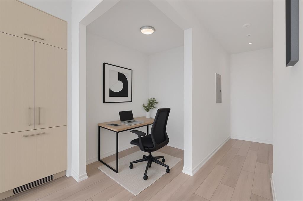 As a resident of Verve, you’ll enjoy access to an impressive selection of amenities, including a state-of-the-art fitness center, bookable guest suites, a rooftop boardroom with panoramic views, and generous indoor and outdoor entertainment spaces complete with kitchens and BBQs. The building also offers concierge and security services, visitor parking, bike storage, and is pet friendly.