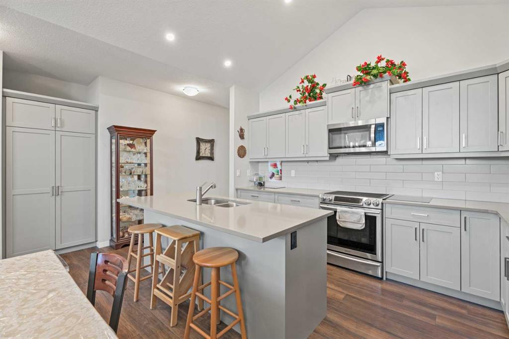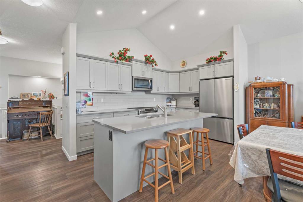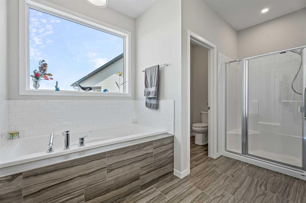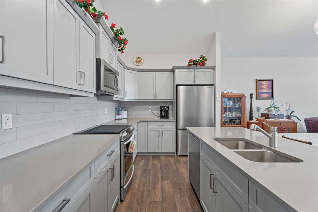 Welcome to Montrose, where these semi-detached bungalows are highly sought after and rarely come on the market. Presenting 508 Montana Bay, this beautifully designed home features an open floor plan with two bedrooms and two full bathrooms on the main level, along with laundry. The kitchen has been recently updated with stylish cabinets, completed in 2024, offering finishes that weren’t available when the home was built in 2021. The main floor was also painted in 2024, enhancing its fresh and inviting ambiance. This home is equipped with solar panels installed in 2024, providing energy efficiency and lower utility bills. Vaulted ceilings create a sense of spaciousness, while the dining room seamlessly connects to the cozy living room, complete with a fireplace and access to an upper west-facing balcony—ideal for enjoying beautiful sunset views. The primary bedroom features a walk-in closet and a luxurious 5-piece ensuite that feels like a personal spa retreat. The fully finished basement is an impressive space, featuring a large recreation room, two additional bedrooms, a hidden hobby or storage area, a full bathroom, and a kitchen or coffee station with plumbing. Enjoy direct access to a concrete patio, turf area, wood deck, and a surprisingly spacious yard, perfect for outdoor entertaining. Don’t miss your chance to own this exceptional home! Call your favorite agent today to schedule a showing.