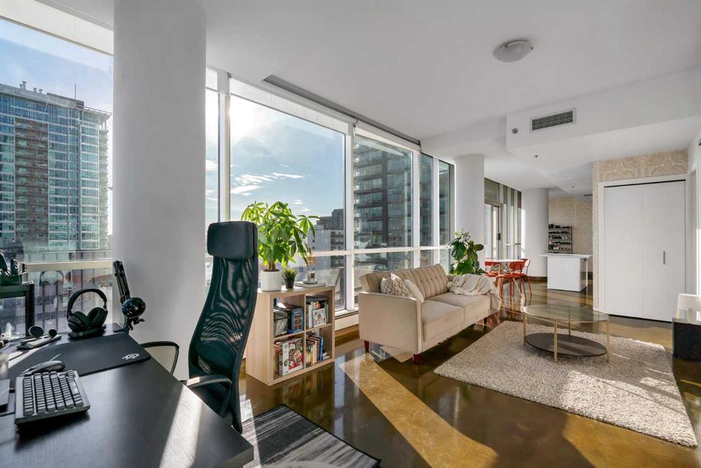 Set in the heart of the Beltline, this impressive corner unit in Colours offers incredible southwest views, modern design, and an unbeatable inner-city location. With floor-to-ceiling windows wrapping around the space and covering more than half of the unit’s walls, this home is filled with natural light while showcasing sweeping city and mountain views. Corner units with this exposure and window coverage rarely come available, making this a standout opportunity. The spacious one-bedroom layout features an open, functional design that makes everyday living easy. The seamless flow between the living, dining, and kitchen areas creates a comfortable space for relaxing, entertaining, or working from home. Whether you’re a first-time buyer, investor, or someone looking for a low-maintenance urban lifestyle, this unit offers flexibility and great use of space. The kitchen is finished with rich espresso cabinetry, granite countertops, and stainless steel appliances, combining clean, modern style with practical function. The open design keeps the space feeling bright and connected, while the expansive windows create an inviting atmosphere throughout the home. The bedroom offers a comfortable retreat with plenty of natural light, and the bathroom continues the home’s modern finishes. Additional features include in-suite laundry, heated underground parking, and the peace of mind of a secure, well-managed building. Living in Colours means you’re steps away from everything the Beltline has to offer. Enjoy walking access to restaurants, cafés, shopping, nightlife, and everyday amenities, with quick access to downtown offices, transit, and green spaces. It’s a location that truly supports a convenient, walkable lifestyle. If you’re looking for a bright, modern condo with incredible views and a central location, this corner unit delivers outstanding value and style in one of Calgary’s most vibrant communities.