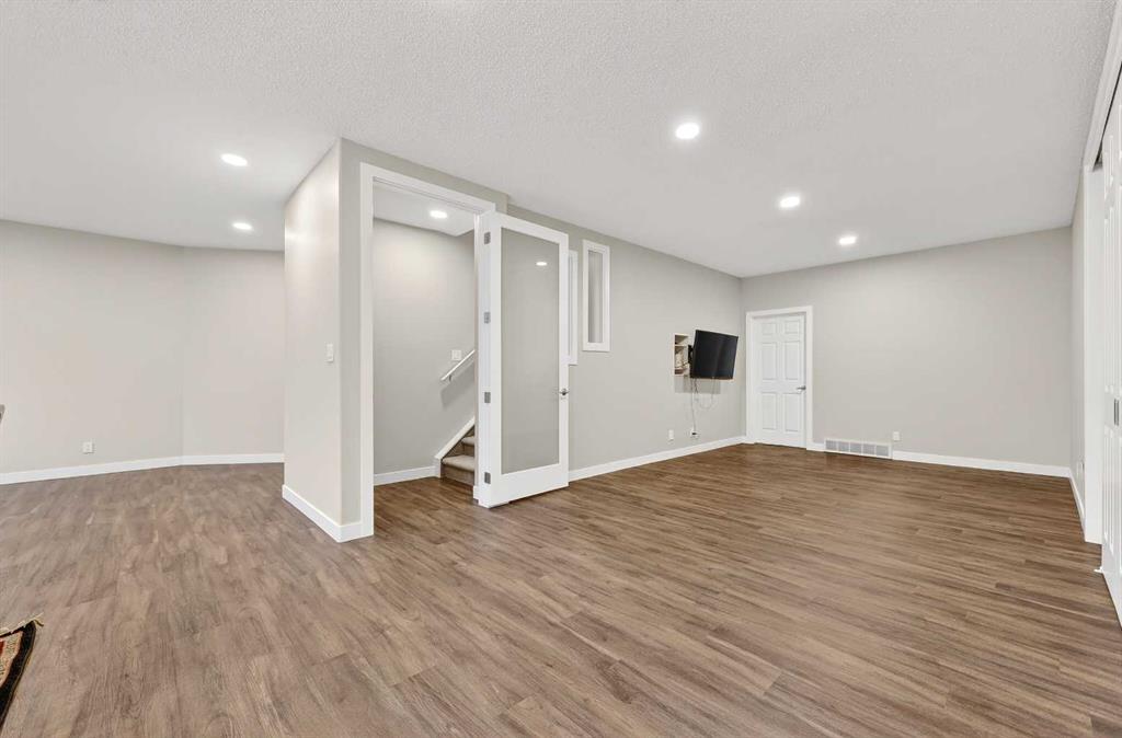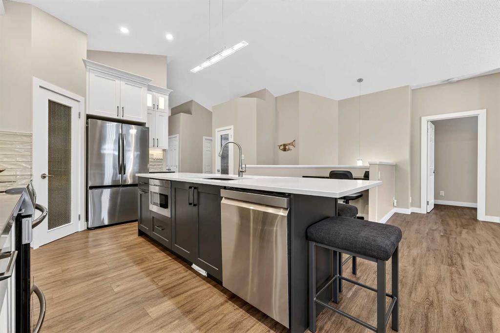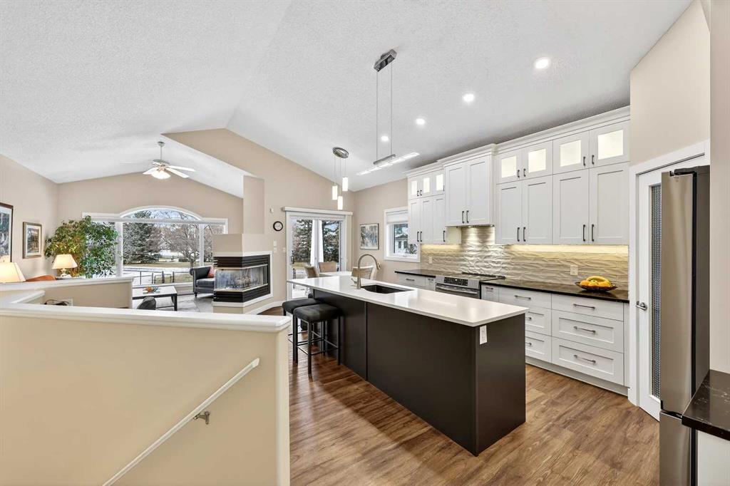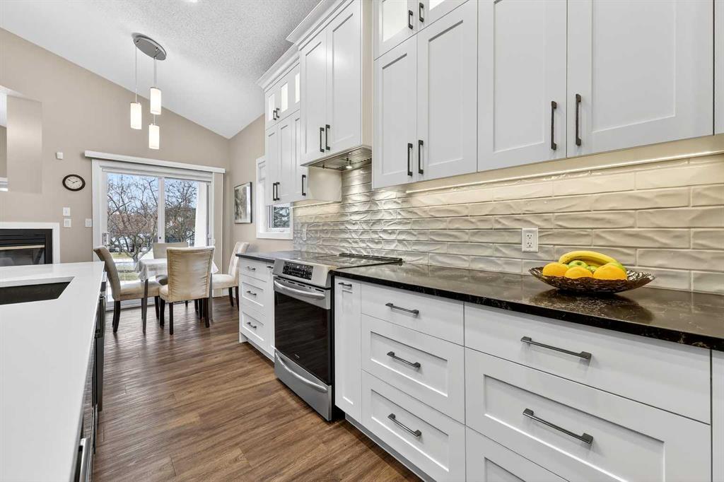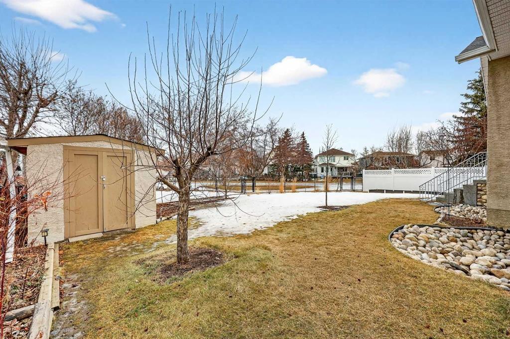 A RARE find that checks all the boxes! This SPACIOUS BUNGALOW offers WEST pie backyard, backing to GREEN+PATH, RENOVATED, on exclusive CUL-DE-SAC, w/enclosed PORCH, and ALL POLYB has been removed. But there’s so much MORE: Main floor features vinyl flooring, VAULTED ceiling, rounded corners, FRESHLY painted, FLEX space (great for home office, or formal dining room), RENOVATED Kitchen (2020) with cabinets to ceilings, quartz counters, functional island, and both PANTRY & APPLIANCE closets! OPEN CONCEPT to breakfast nook, living room, 3-sided GAS FIREPLACE with view to tranquil backyard makes this the ideal home for entertaining, family or ageing in place. DECK (12’5×9’2) has GAS LINE for BBQ. PRIMARY fits KING bed with view of the yard; PRIMARY 4-PIECE ensuite RENOVATED (2021) w/quartz counter, soaker tub, large shower, private water closet, and has washer/dryer hookups for true single-level living. A superior floorplan gives you TWO MORE BEDROOMS on the main that share a 4-piece bath (w/LAUNDRY CHUTE), all privately tucked away. RENOVATED Lower level (2023) doubles your space with 9-foot ceilings, LARGE windows bringing in so much natural light, TWO more bedrooms (total of FIVE bedrooms!), another 4-piece bath, LAUNDRY room, LOADS of REC space, UTILITY/CRAFT space (could be summer kitchen), HEAPS of STORAGE, and CENTRAL VAC. ATTACHED DOUBLE garage with duo overhead doors & great SHED in mature backyard. Roof (2020), HWT (2018), Furnace (2021), AC (2024), PEX plumbing (2025). Fabulous location, close to transit, shopping, schools, and just a few minutes walk to the river. This one-of-a-kind home won’t last – book your private viewing today.